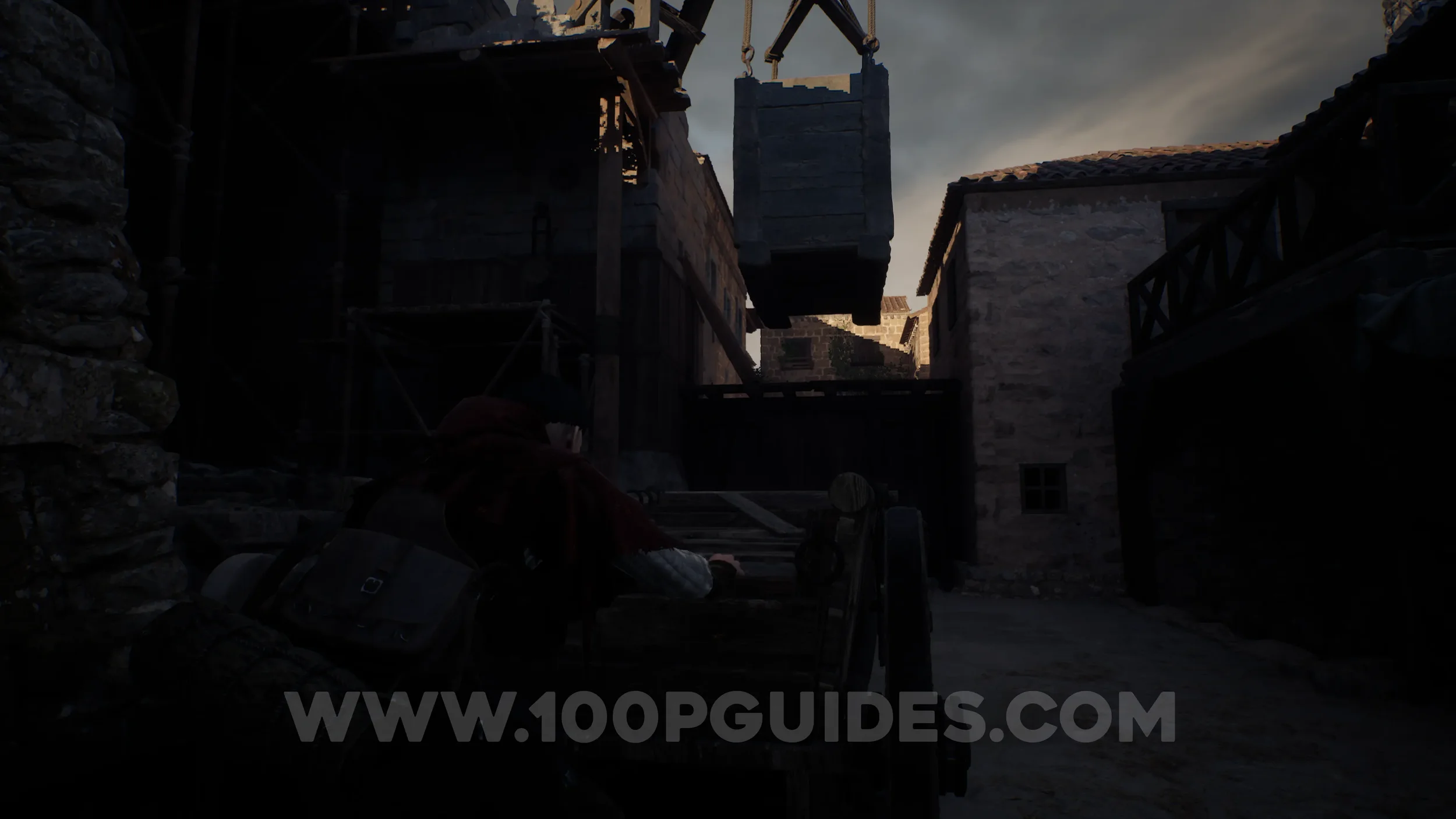 Sword Part #15 - Ultima Guard. Once you enter the large area inside the castle walls at the start of the chapter, look for a large cart you can pull in the corner on the left. Pull it all the way back, then go back up the stairs you used to reach this area and jump across the rooftops and the cart. Follow the rooftops to the right, where you can cut down a box (this simply allows you to climb back up quickly if you fall). Continue along this path and use the switch to raise another platform, allowing you to proceed. At the end, you will find the sword part on a table inside a building.