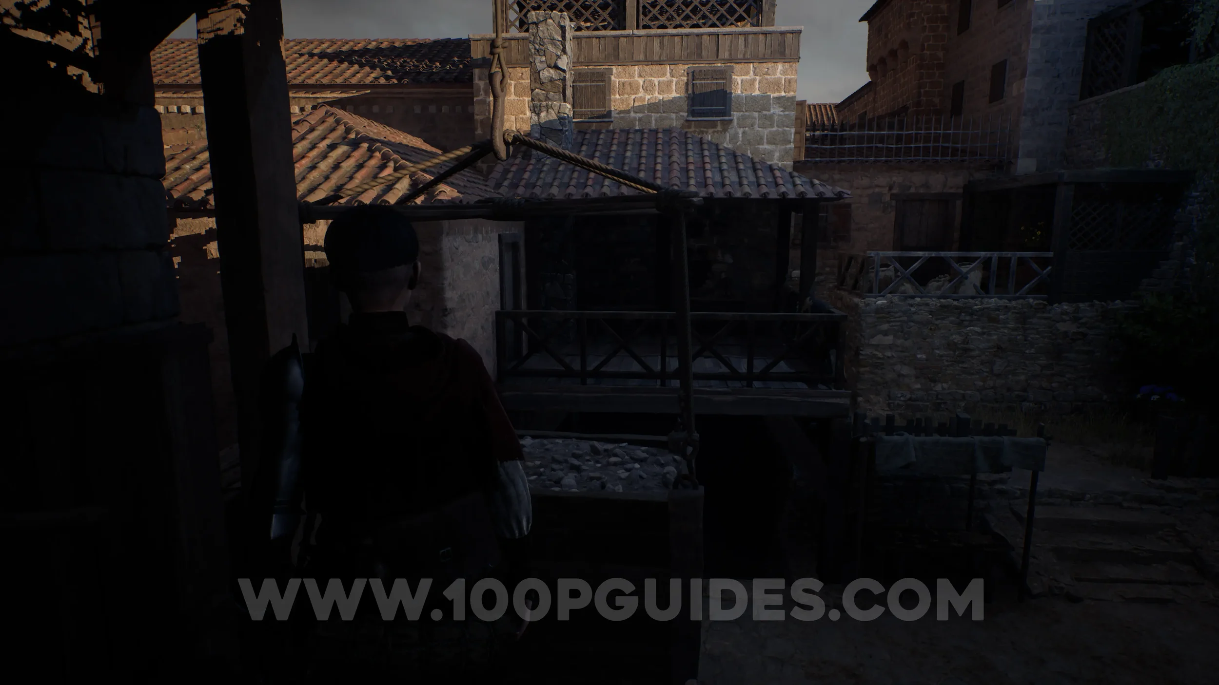 Paper #3-4. Continue through the village until you see a tavern sign on a building to your right. Just past it, you’ll see a door marked with a white cross. Take the path on the left and drop down into the building below. The papers can be found inside a box.