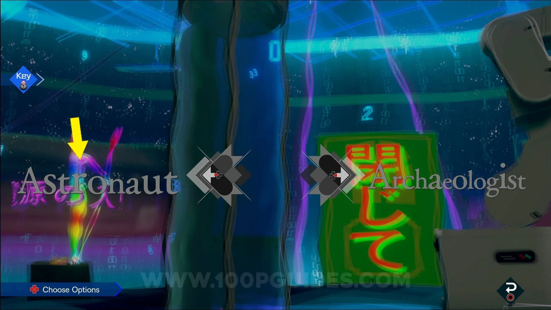 Head back to the main room and interact with the PC. Now choose the options "MAASAI WARRIOR" & "ASTRONAUT". Then go back to the room where you activated the first statue. Here you will now be able to exit through the empty gap in the wall.