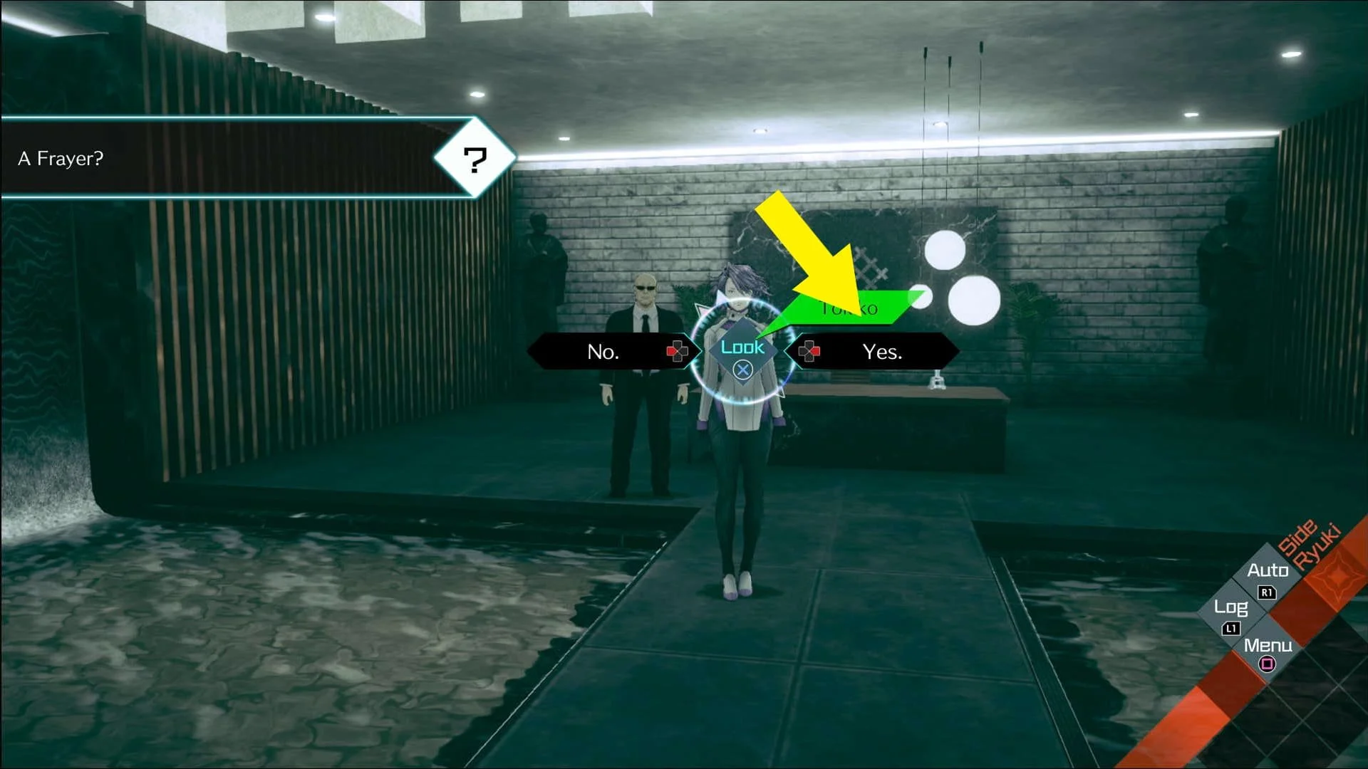 In the next part you will have to walk through the wall where the big symbol is on the wall and talk to Tokiko. Then select the "SHARE" option.