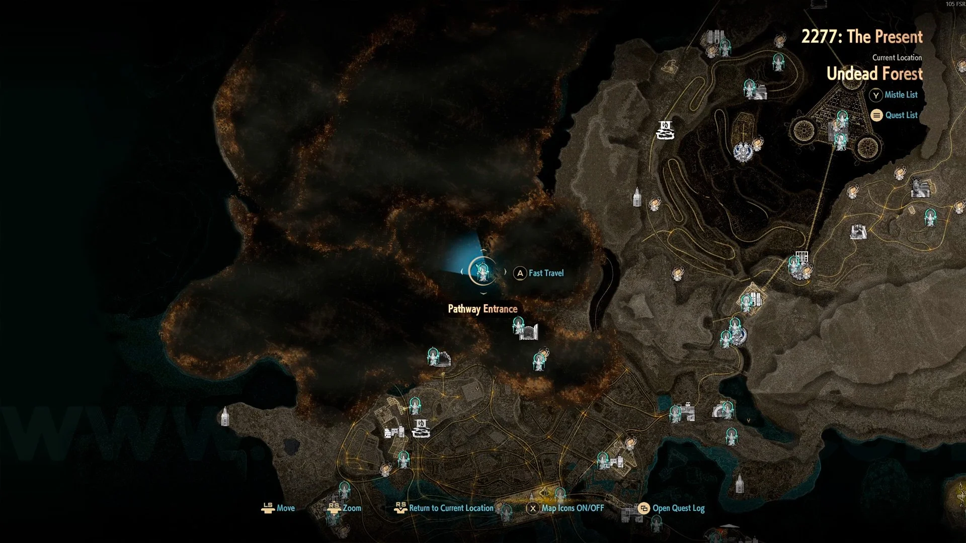 Map Jammers are purple trees you can find throughout the game. Destroying them will reveal the map in that area. For ‘‘Touring the Frontier’’ you only need to destroy the 17 Map Jammers in the Overworld that unlock the Overall Map.