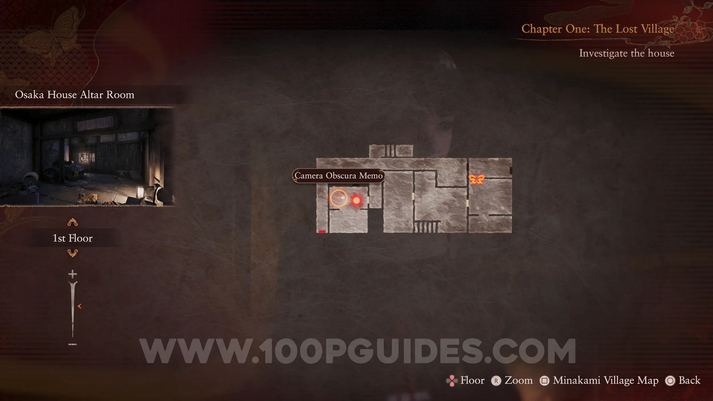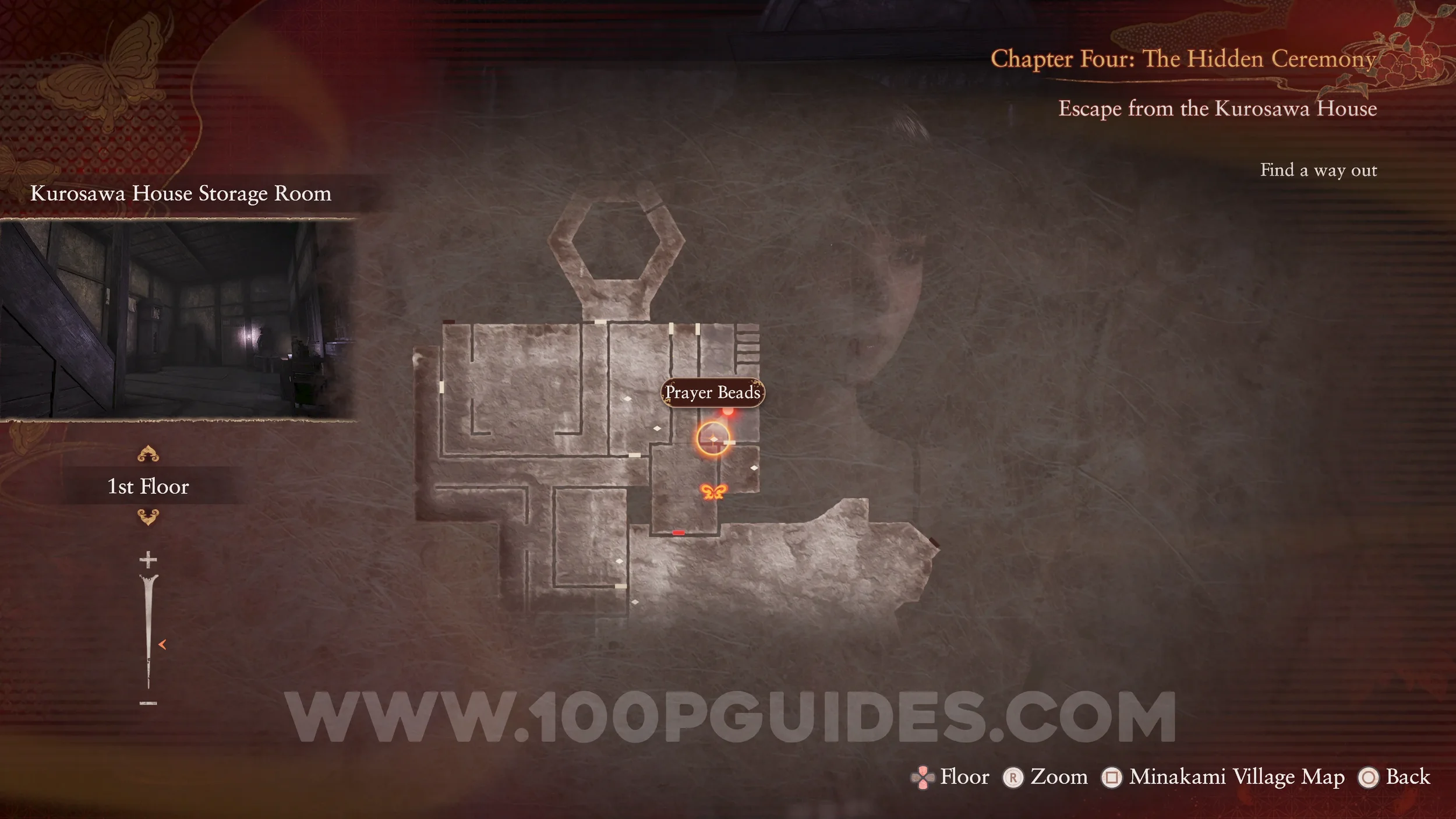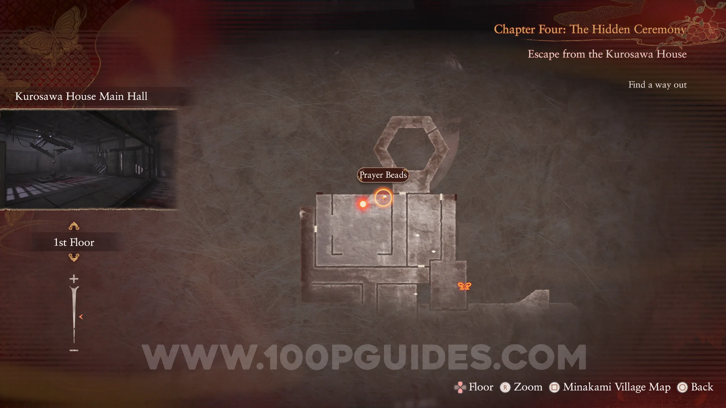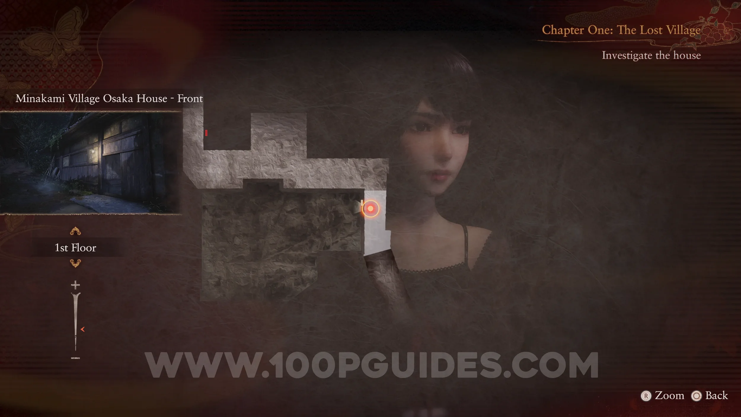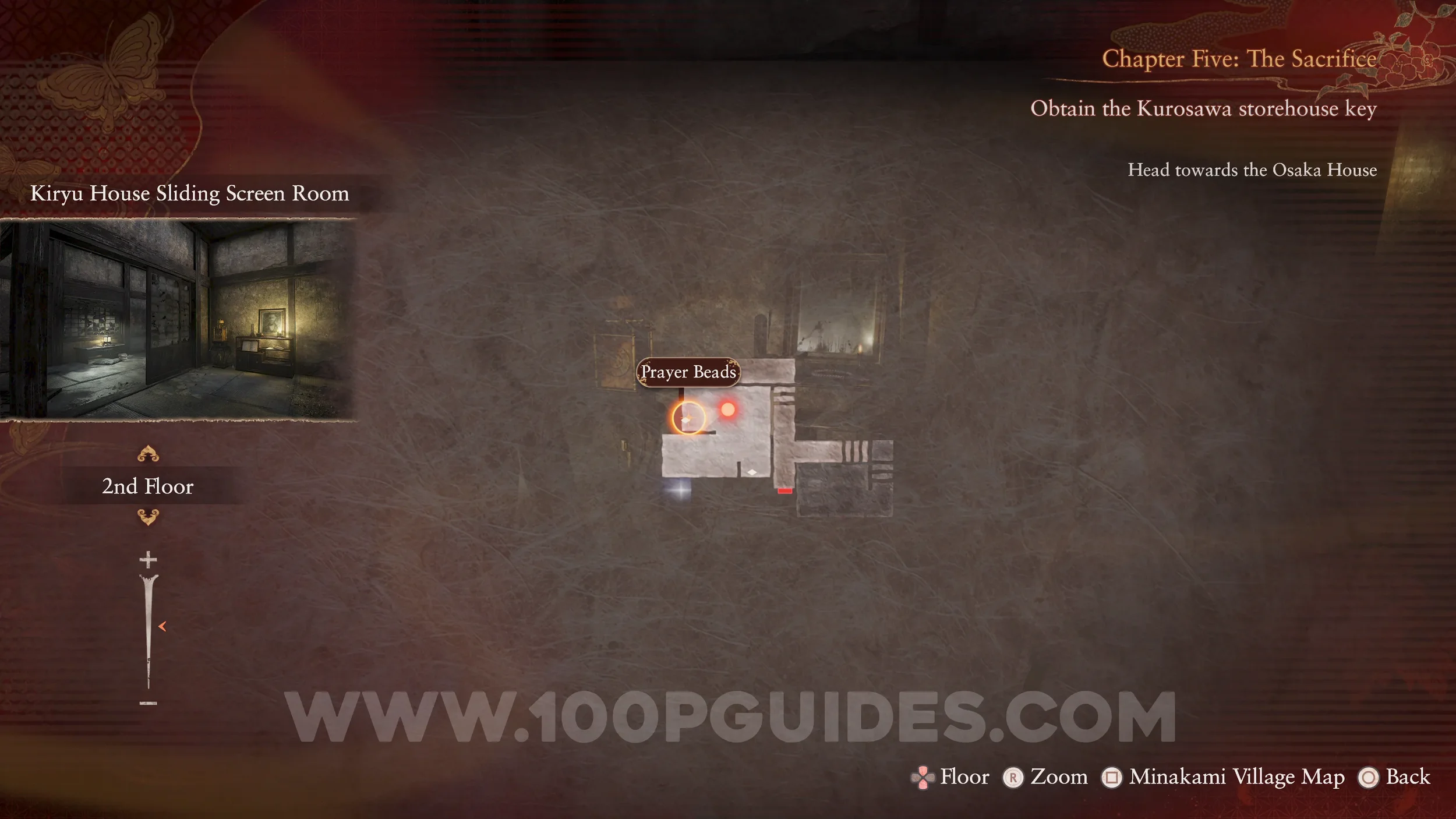 Prayer Beads #1. After leaving the Osaka House, go around the left corner and follow the path west. Continue up the hill to reach a temple. The bead can be found behind the temple. I recommend using it to unlock the Zoom feature for the Camera Obscura, as some of the upcoming Twin Dolls will require it. If you do not have it yet, you can return later.