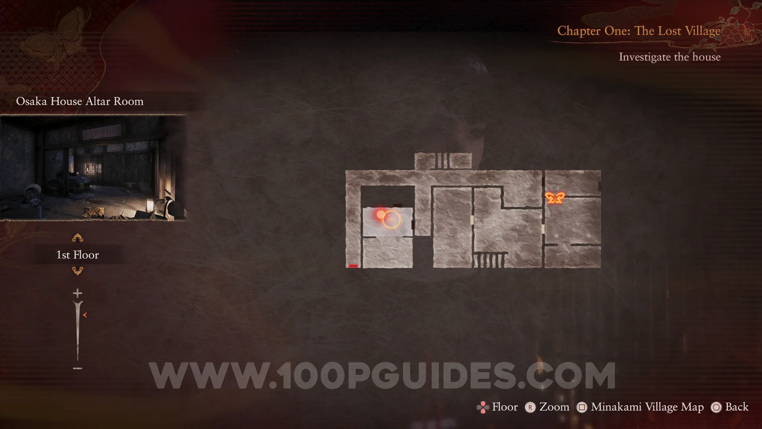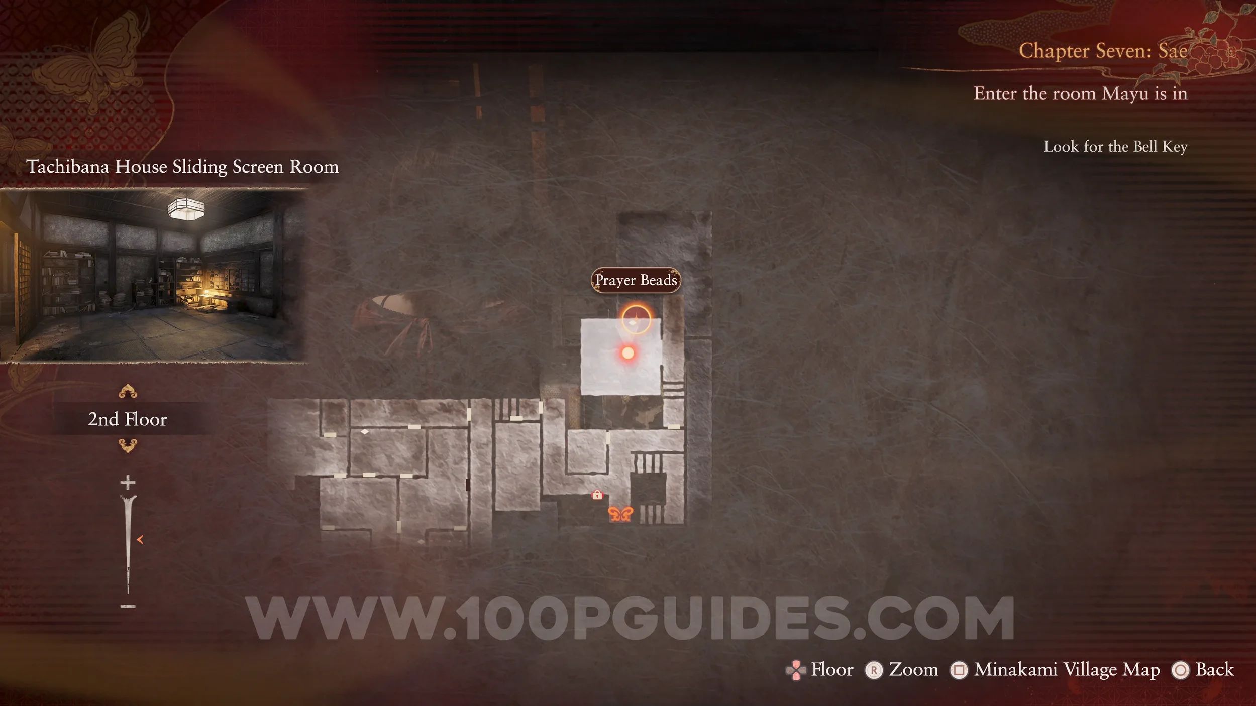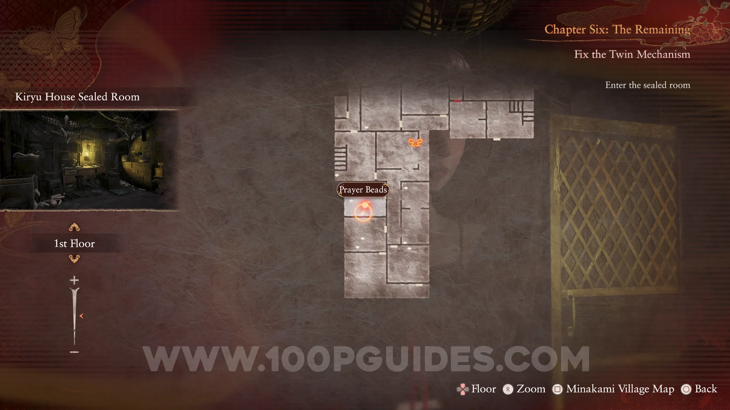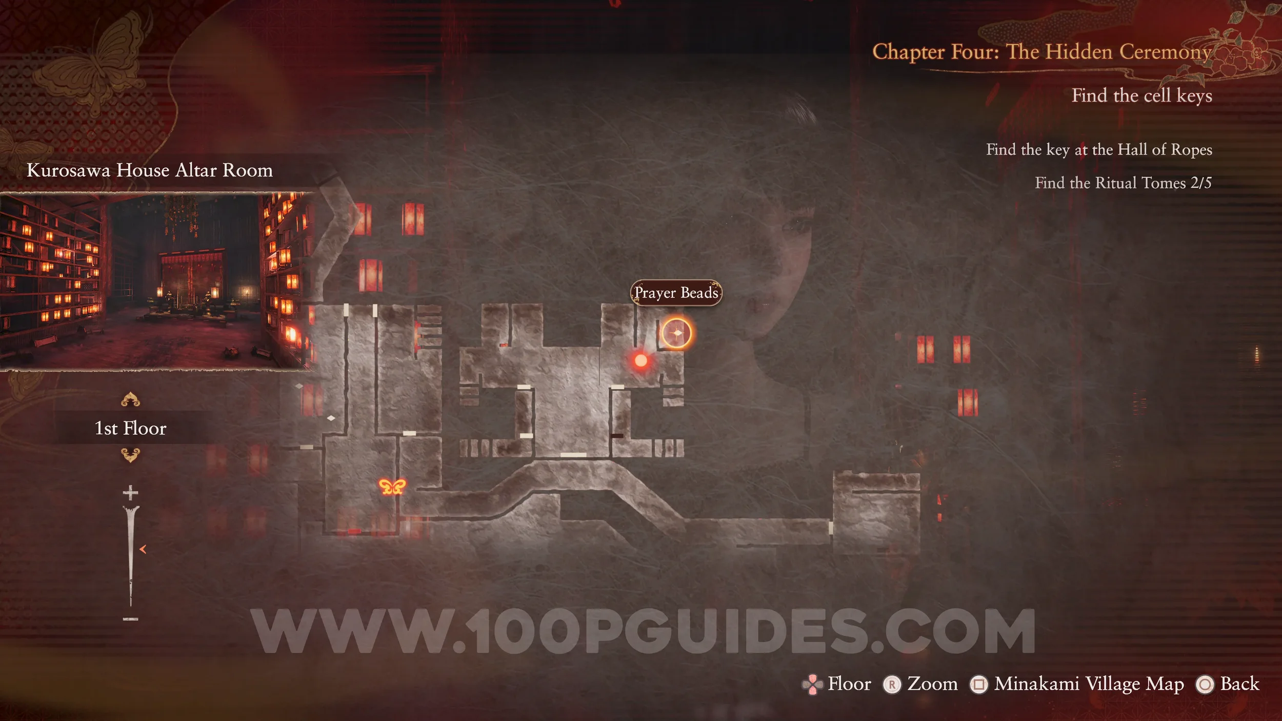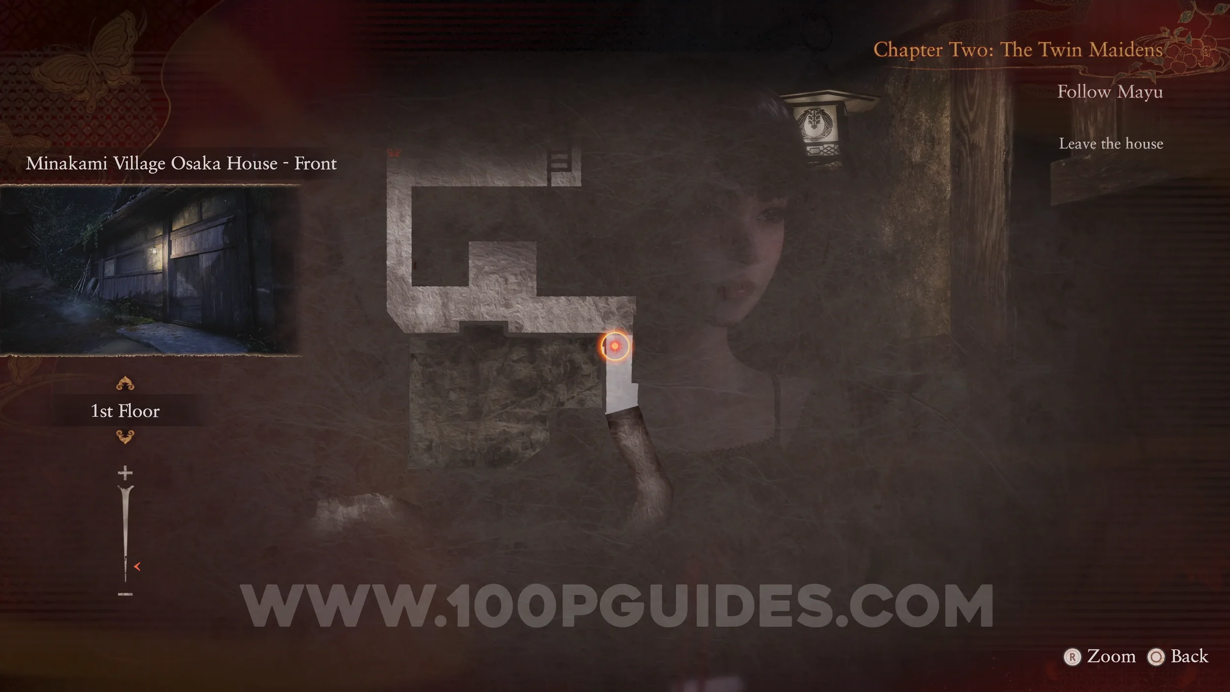 Prayer Beads #1. After leaving the Osaka House, go around the left corner and follow the path west. Continue up the hill to reach a temple. The bead can be found behind the temple. I recommend using it to unlock the Zoom feature for the Camera Obscura, as some of the upcoming Twin Dolls will require it. If you do not have it yet, you can return later.