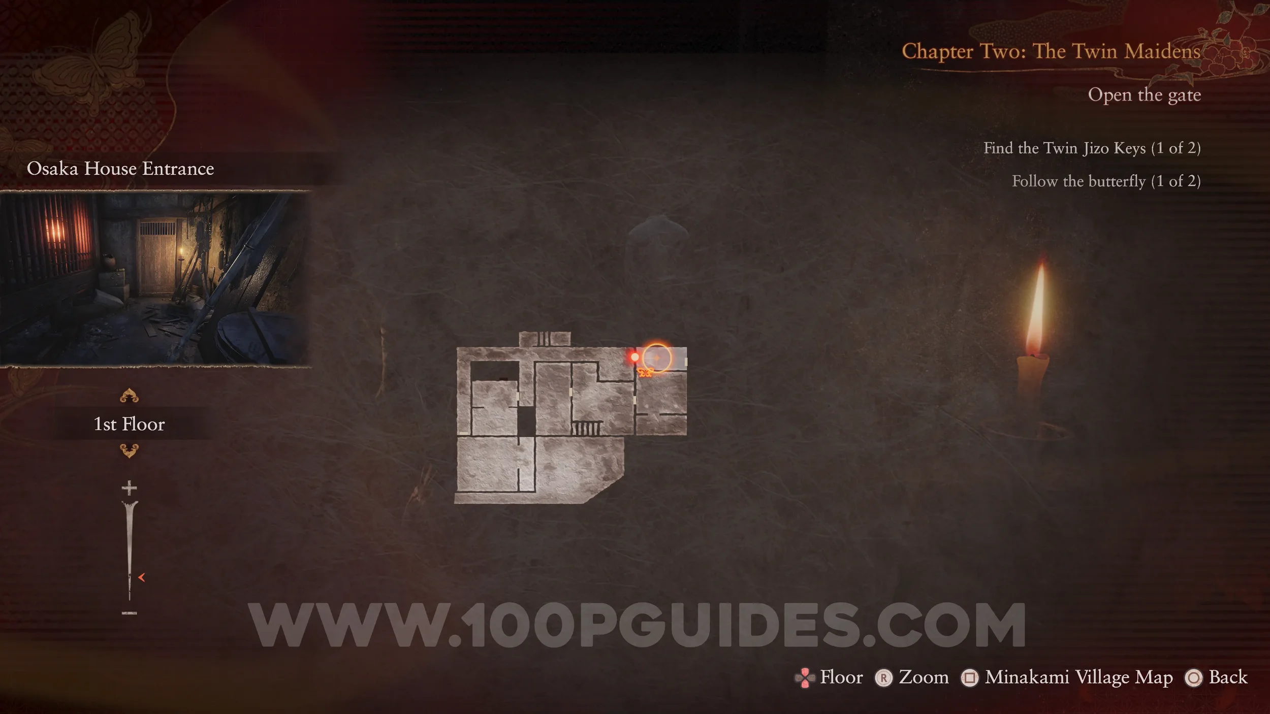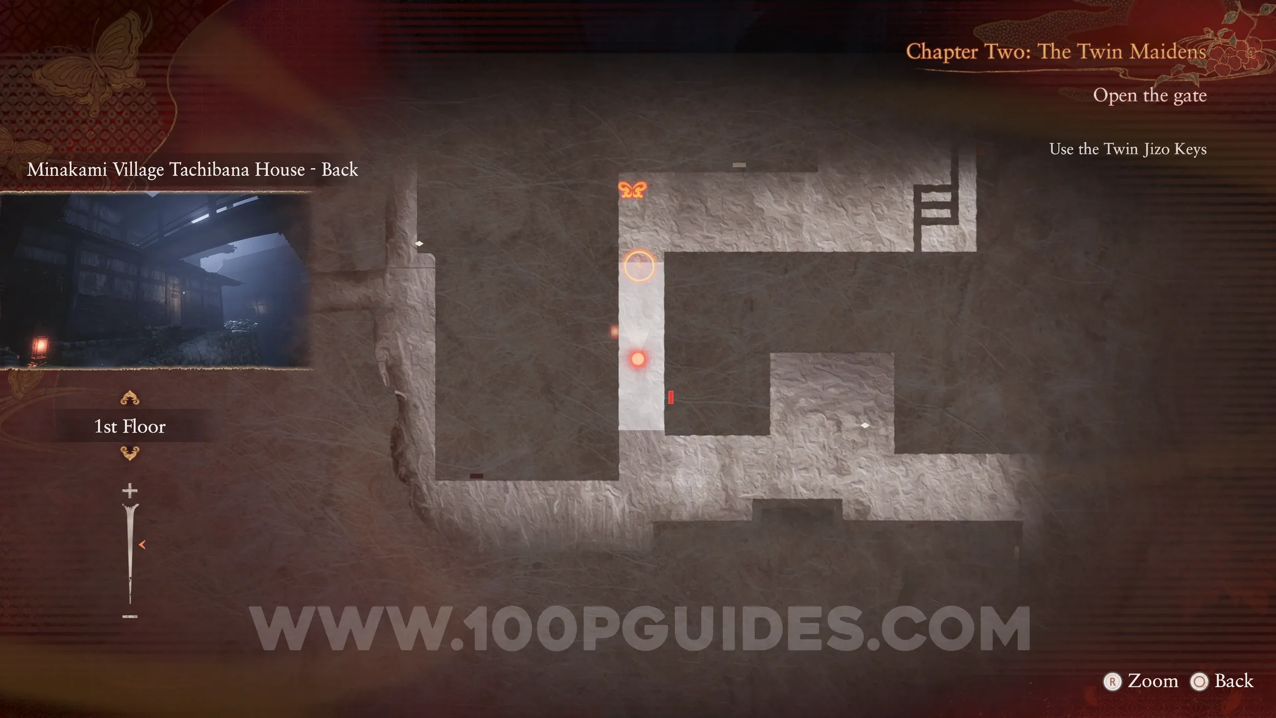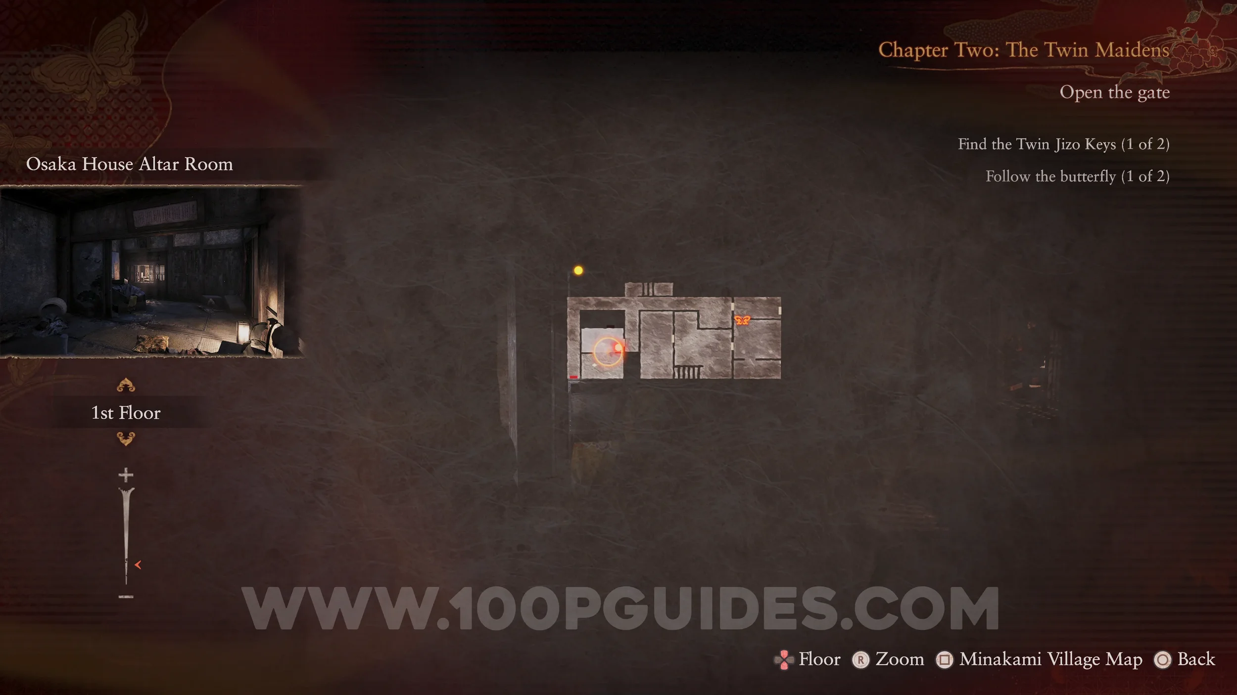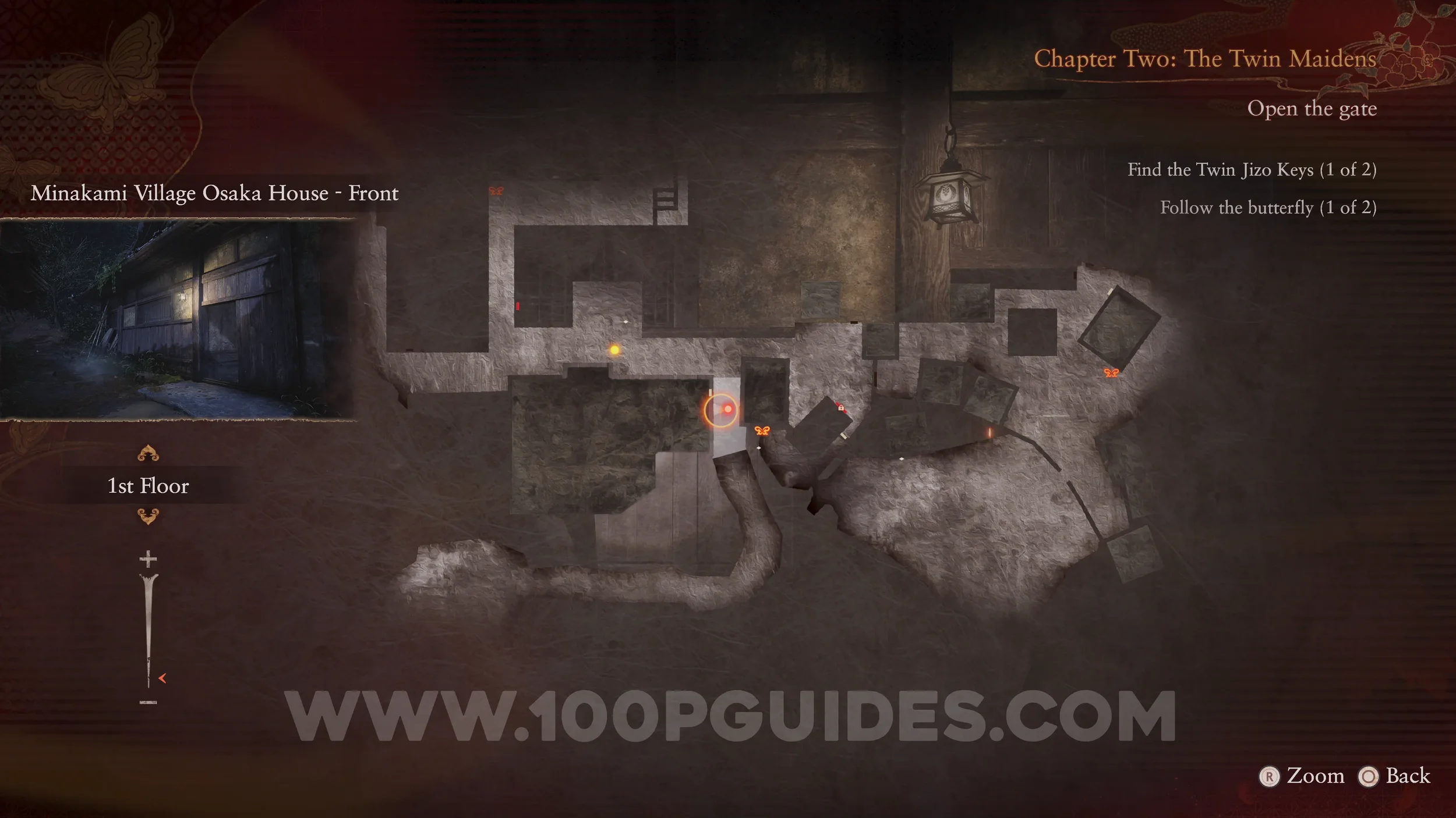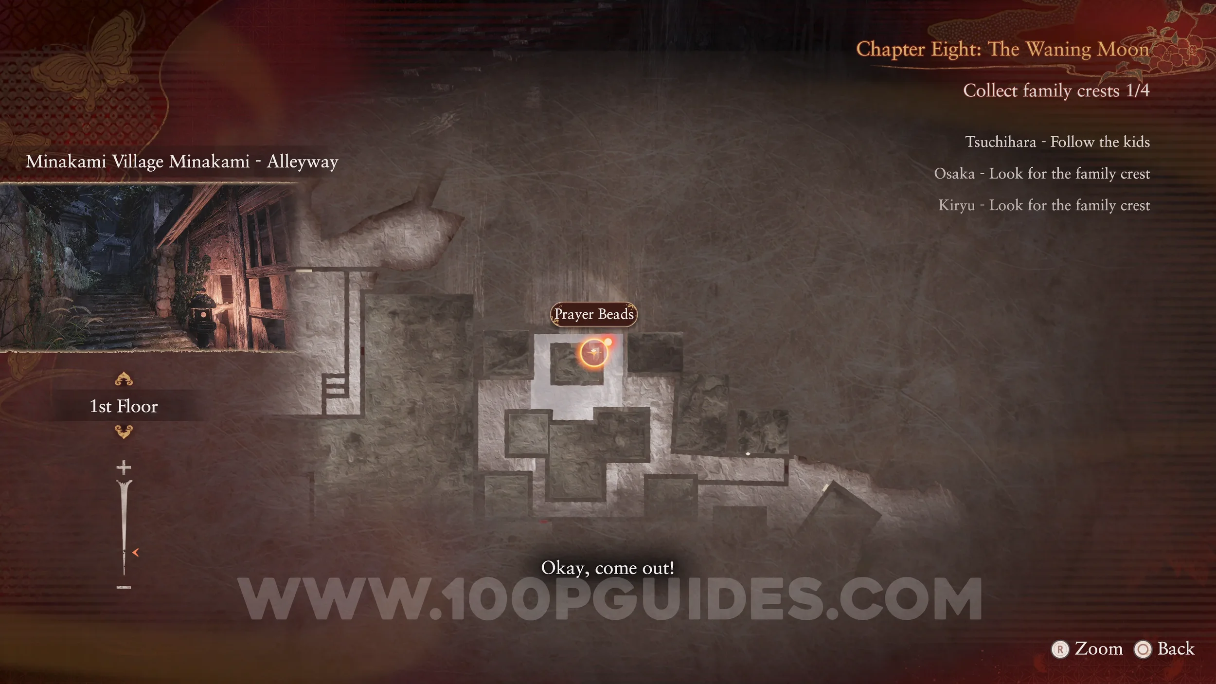 Prayer Beads #1. After leaving the Osaka House, go around the left corner and follow the path west. Continue up the hill to reach a temple. The bead can be found behind the temple. I recommend using it to unlock the Zoom feature for the Camera Obscura, as some of the upcoming Twin Dolls will require it. If you do not have it yet, you can return later.