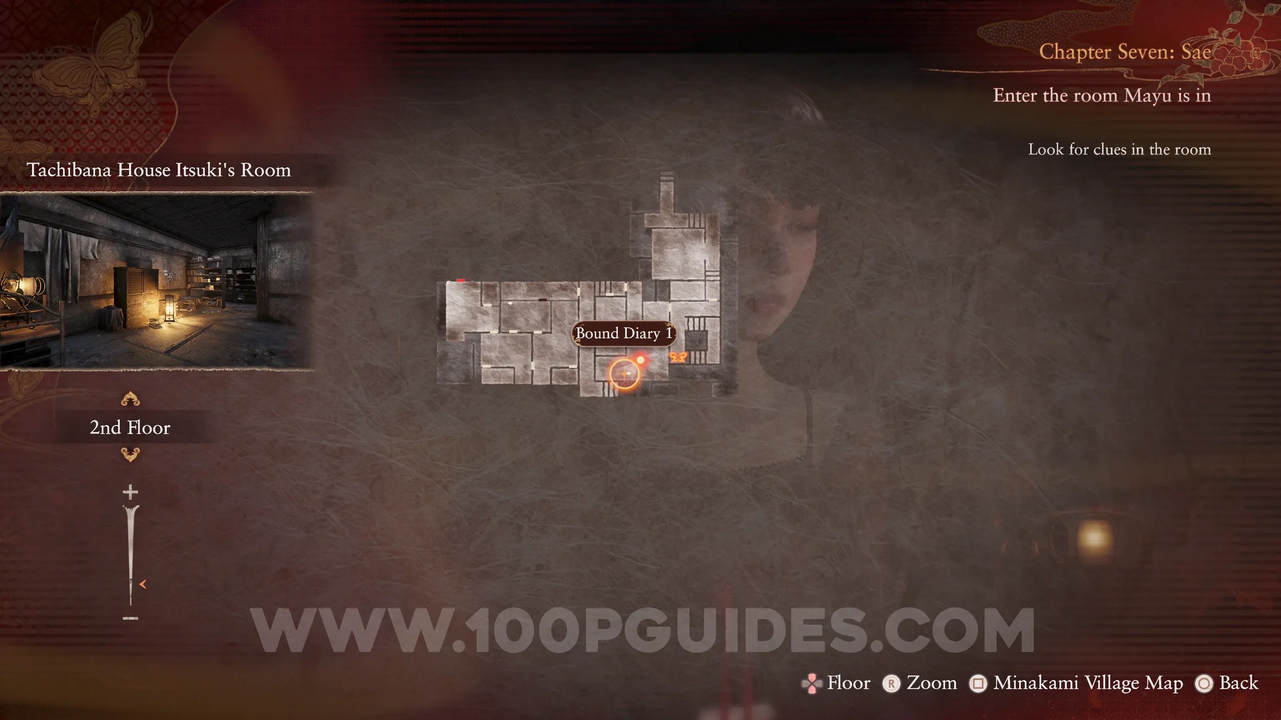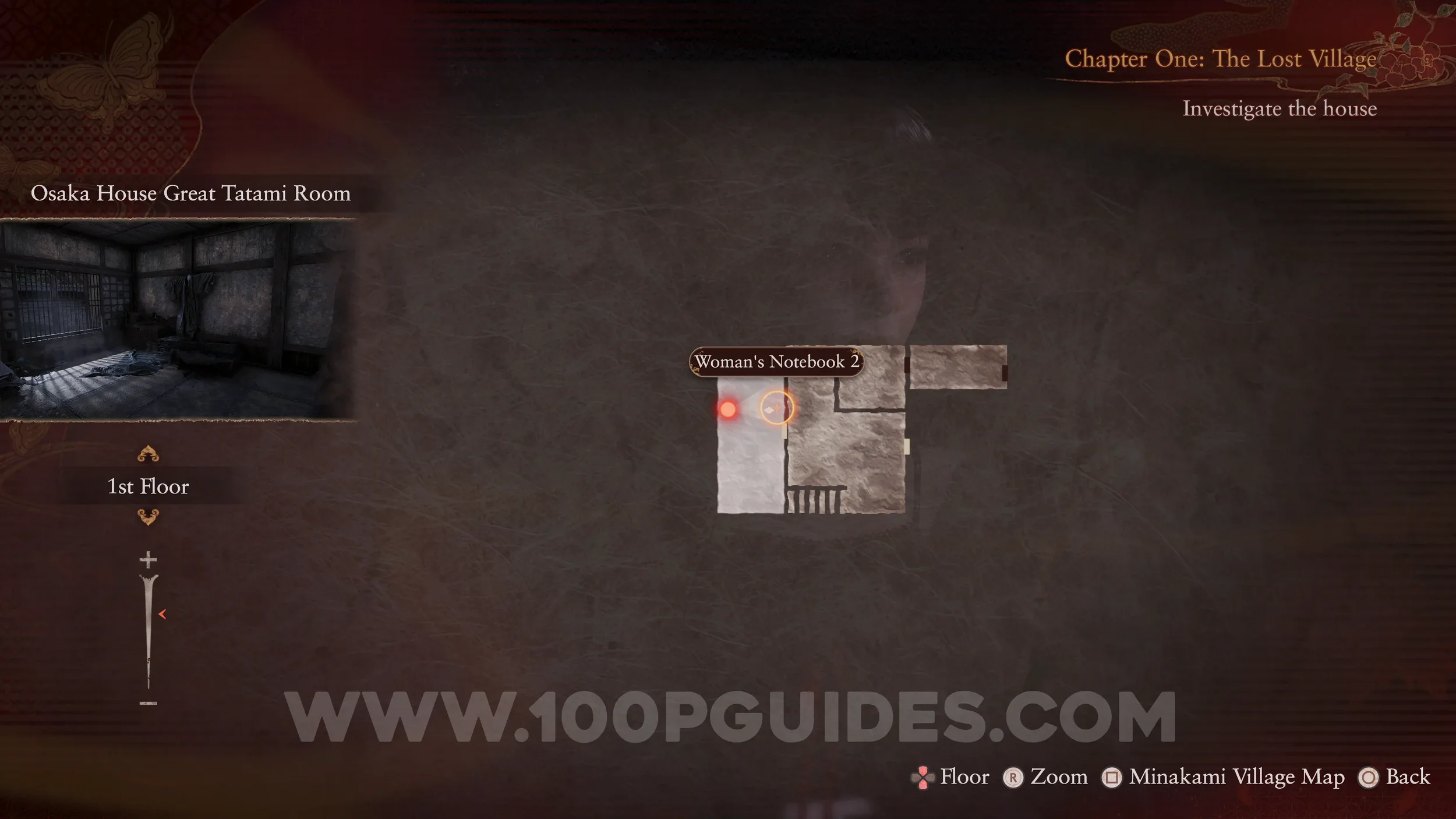 Document #8 - Woman’s Notebook 9. Enter the door on the left of the upper hall in the Osaka House. Then go through to the third room to find it on the floor.