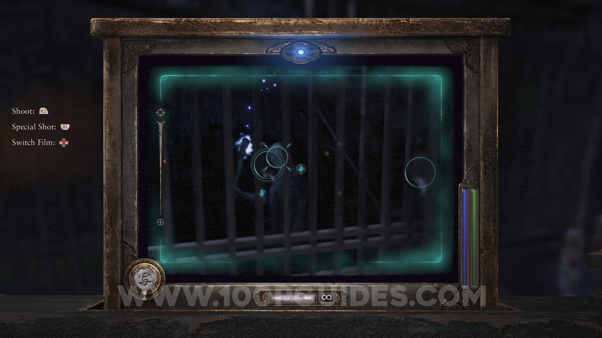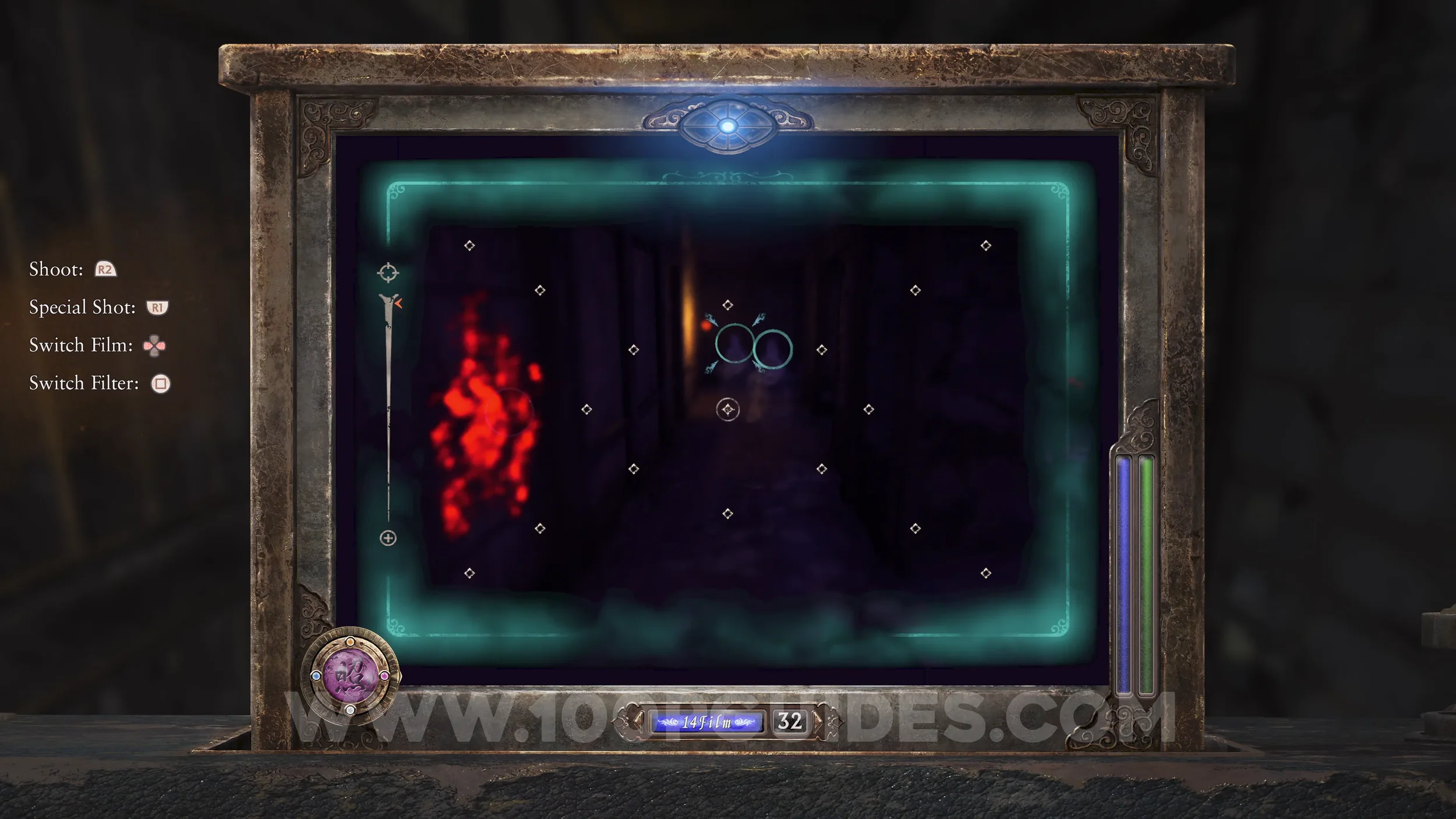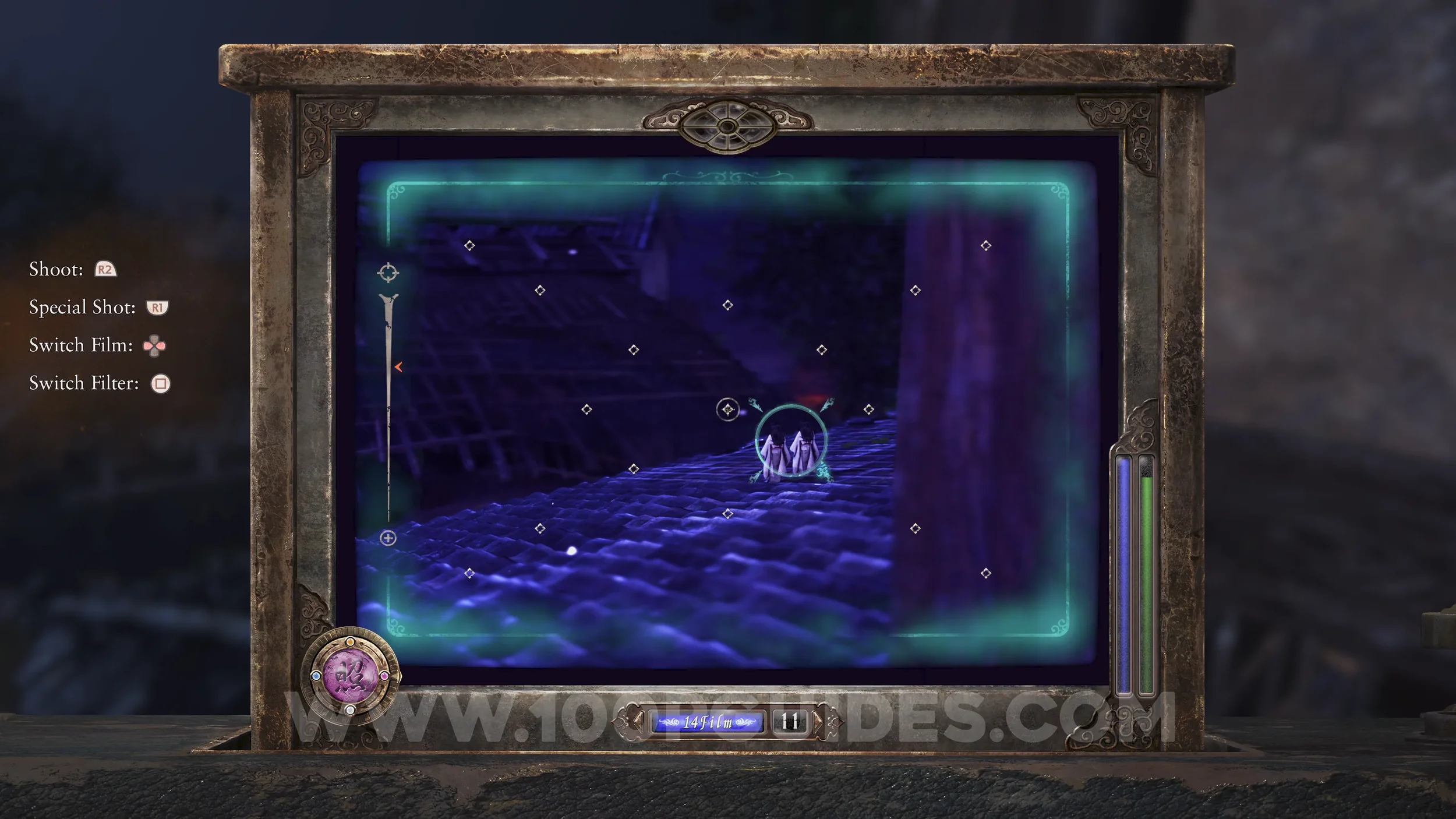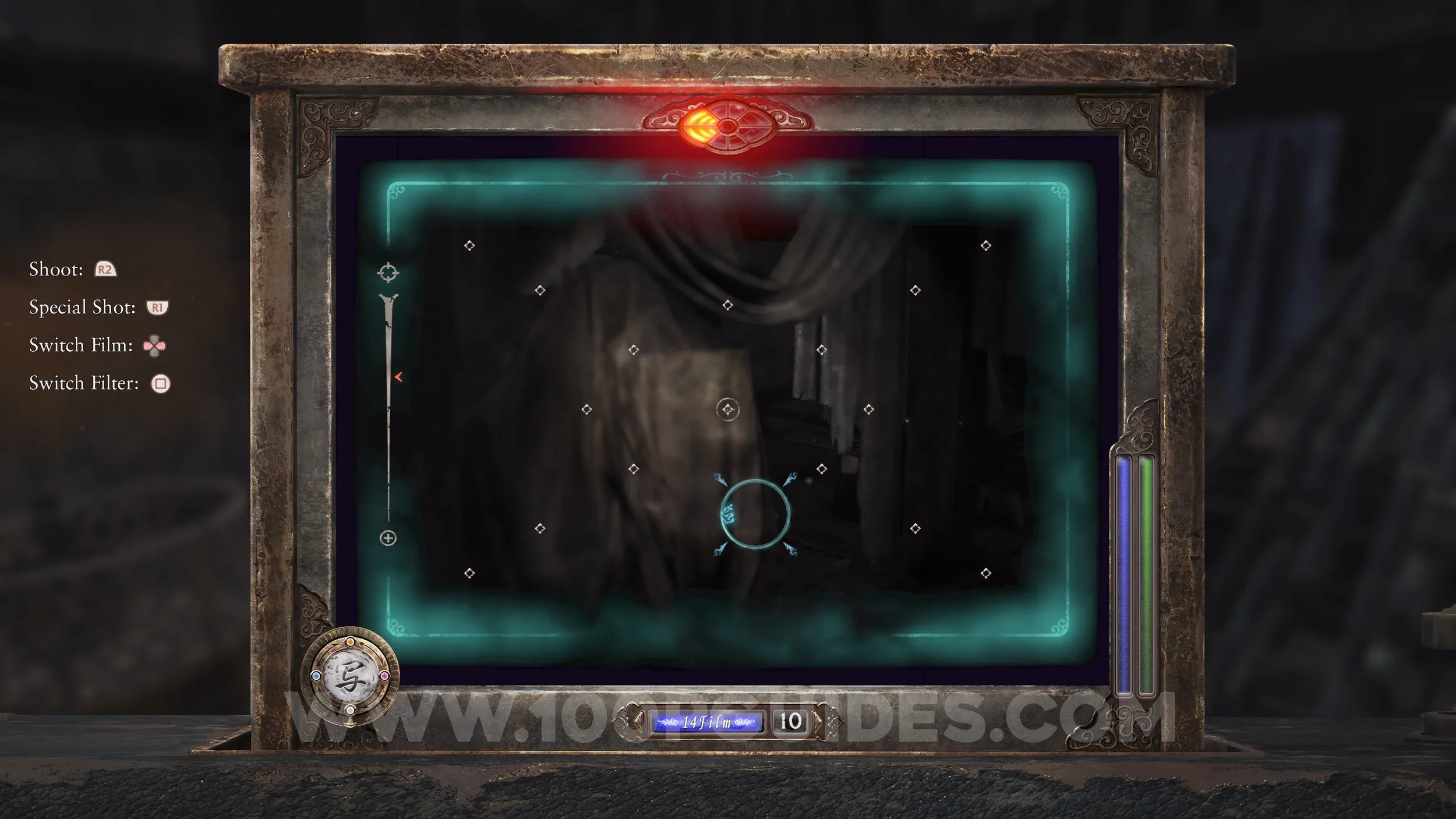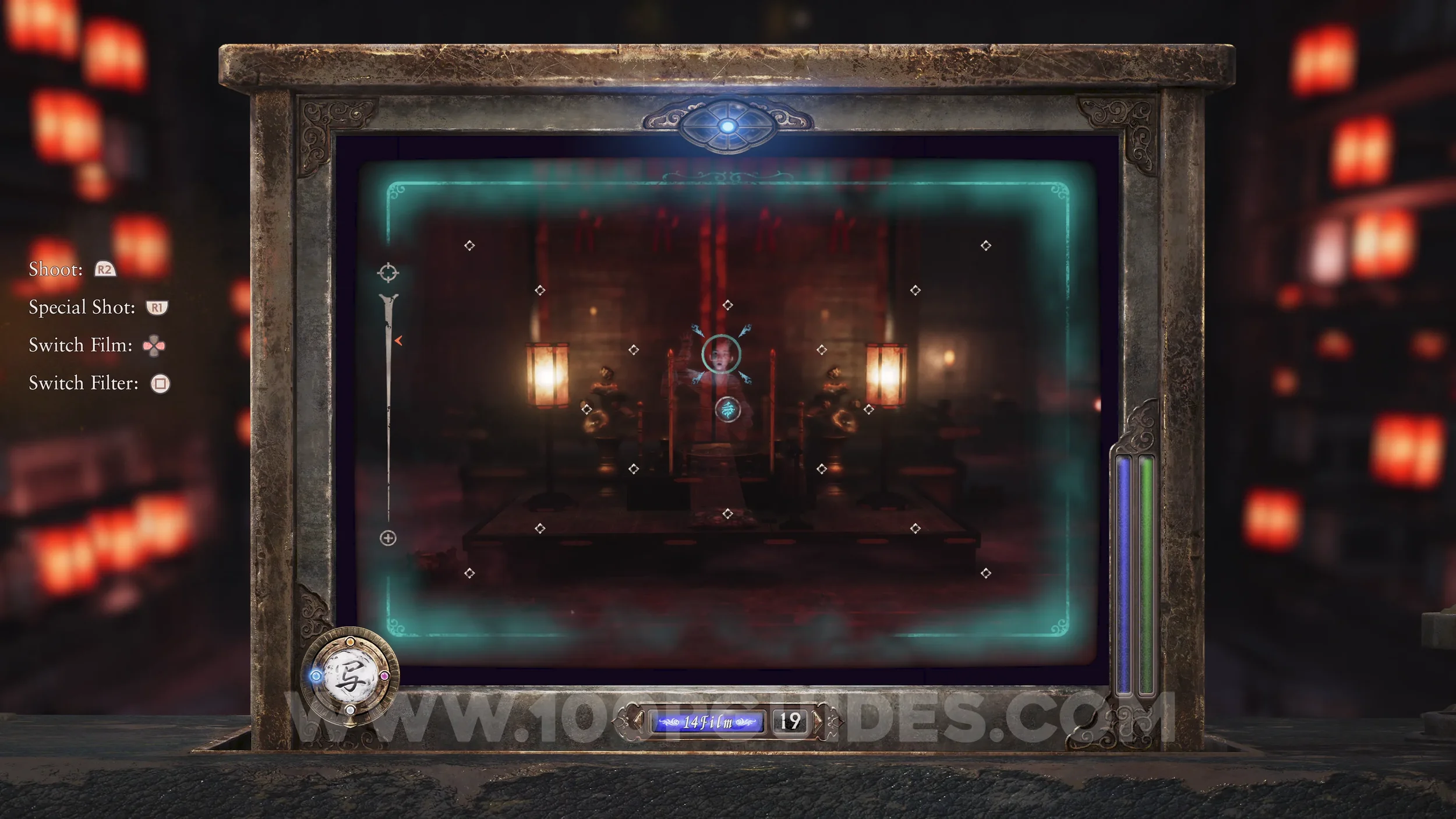Specter #13 - 016 Beckoning Crimson Butterfly. After examining the gate just past the save point, turn around and look through the camera to see the Specter Butterfly.