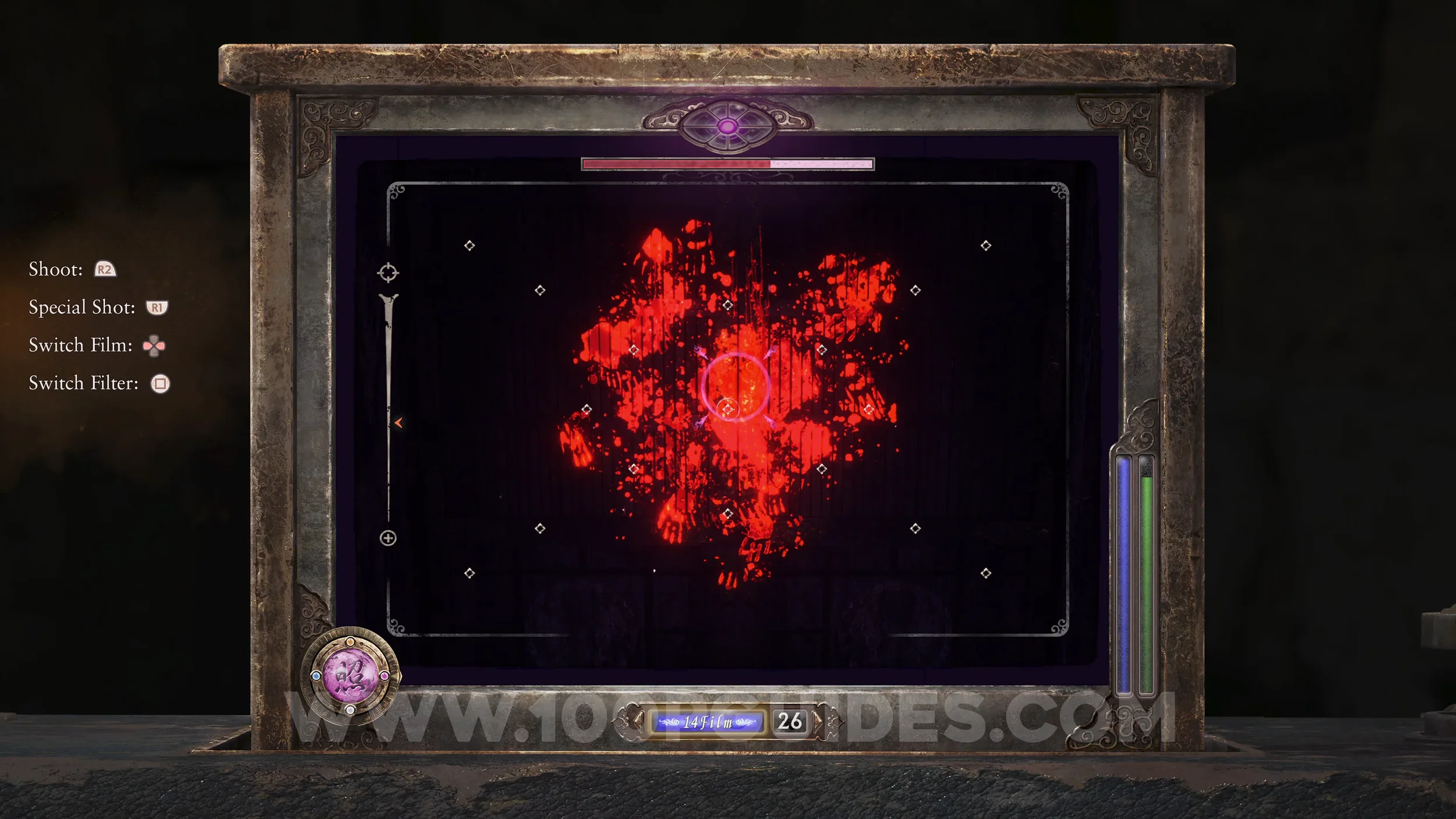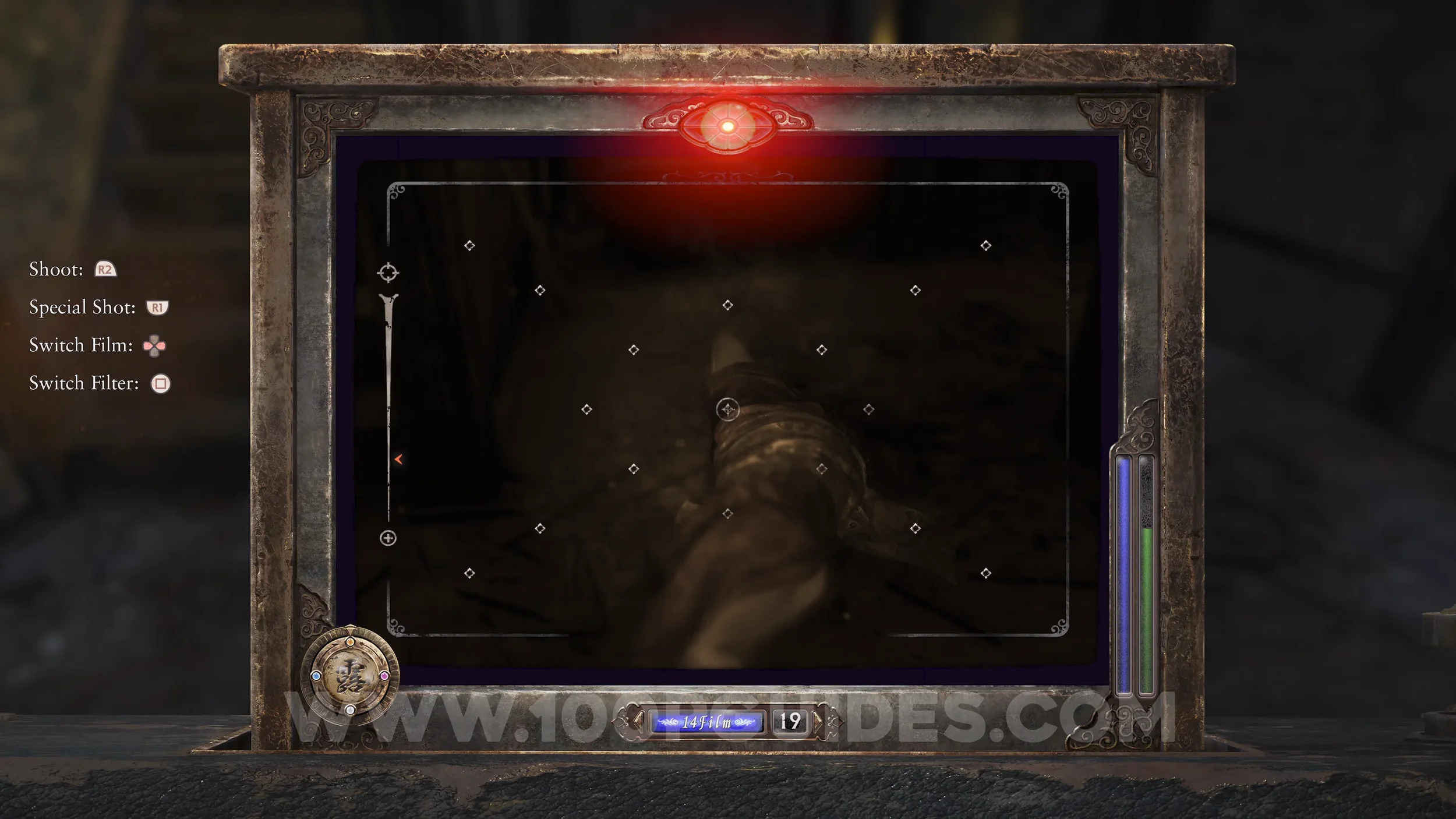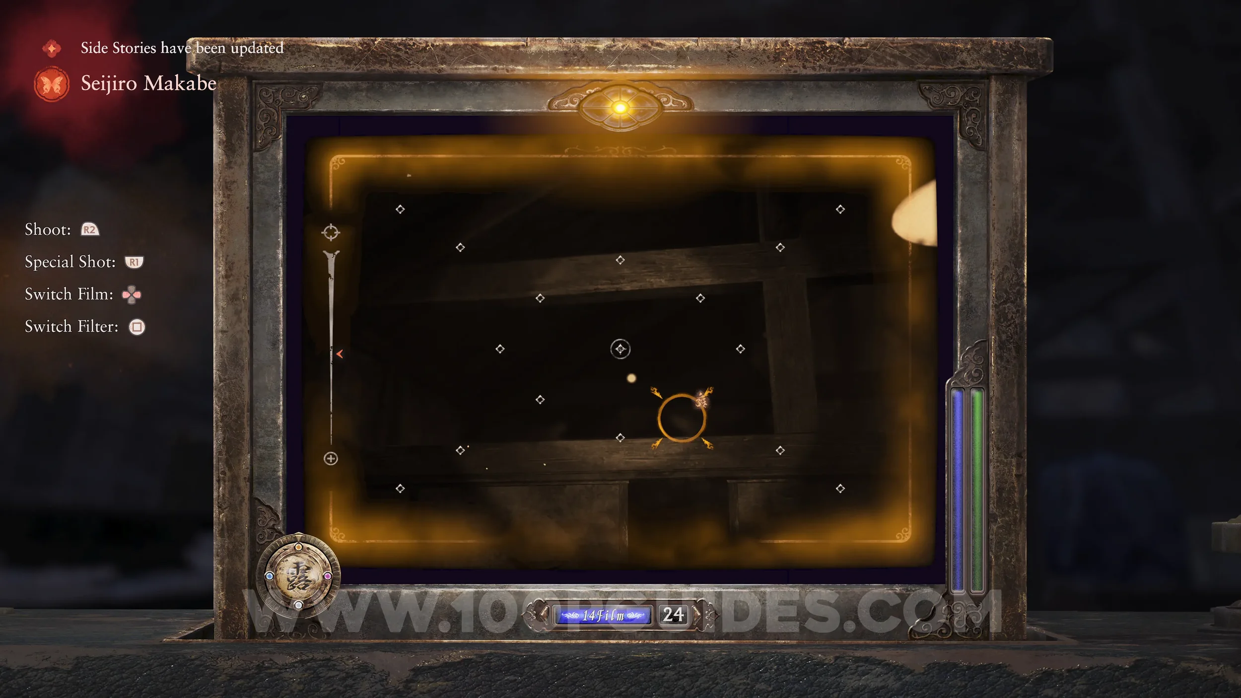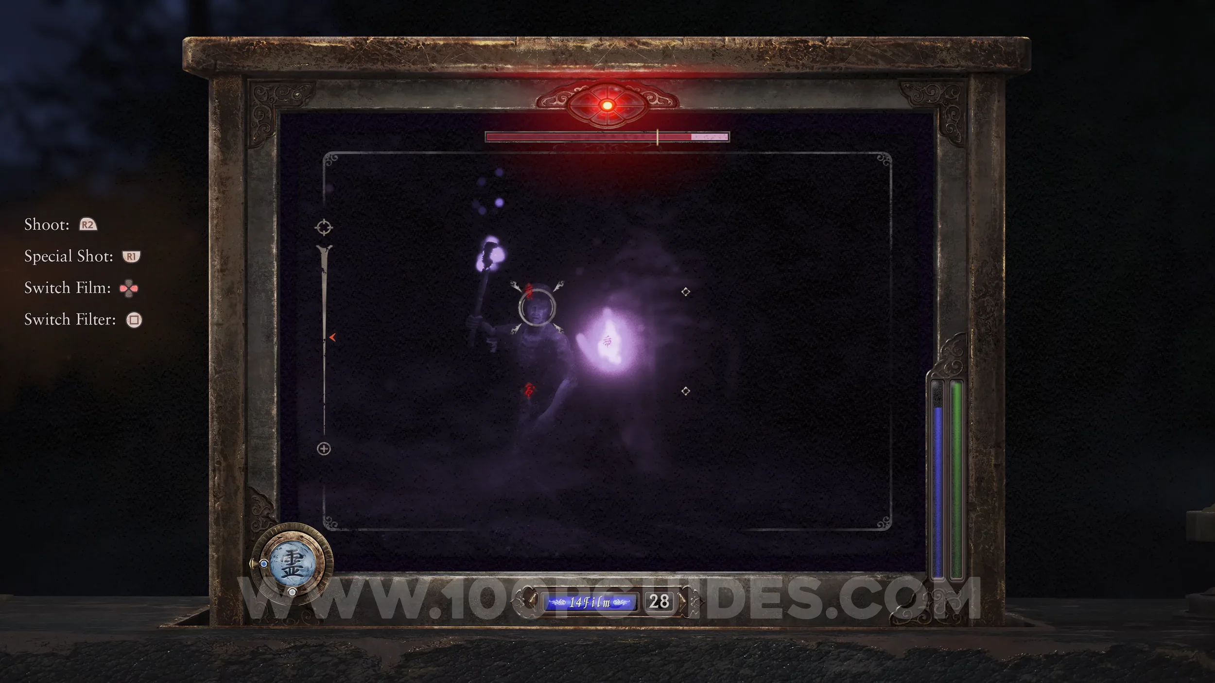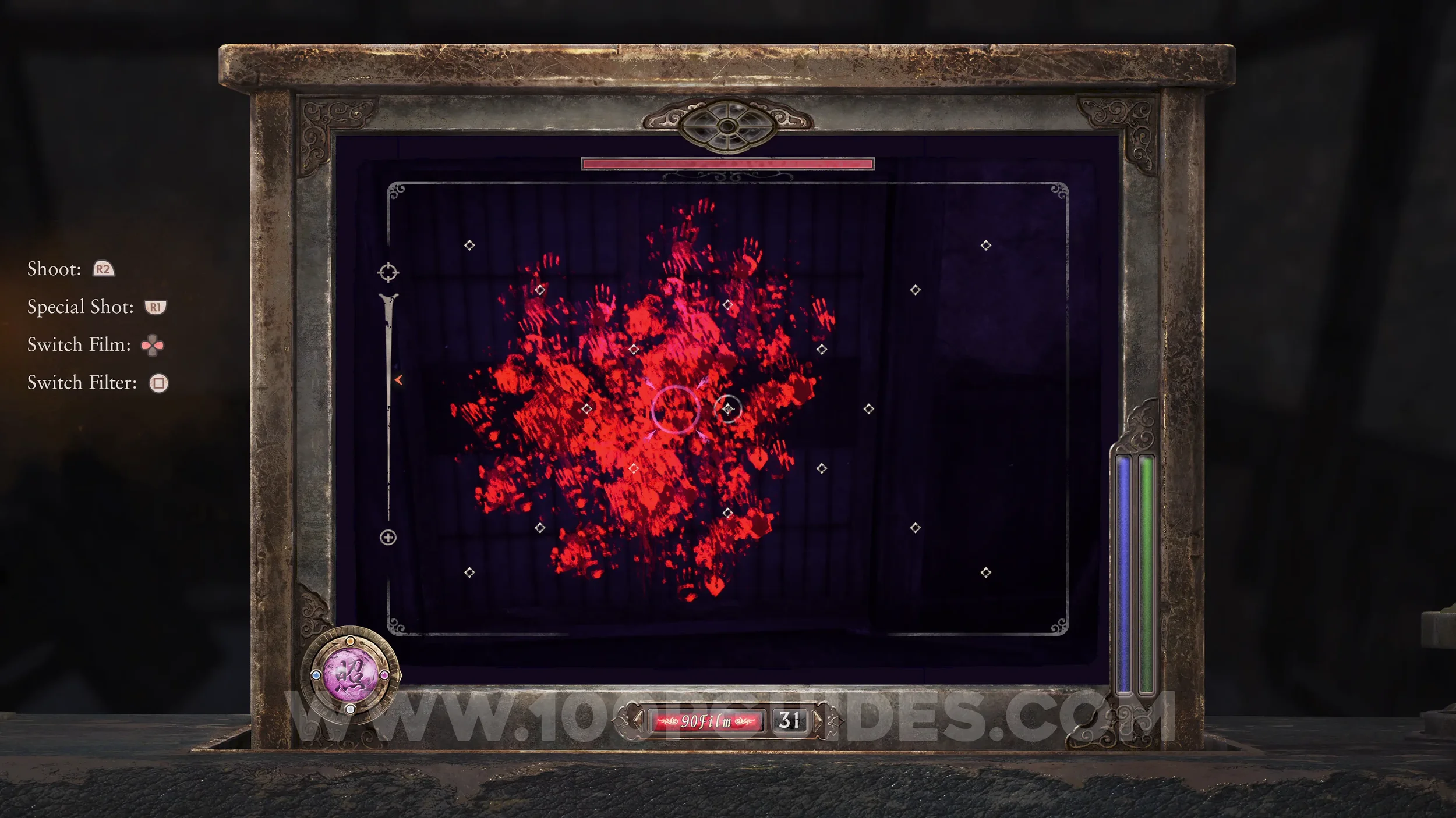 Specter #13 - 016 Beckoning Crimson Butterfly. After examining the gate just past the save point, turn around and look through the camera to see the Specter Butterfly.
