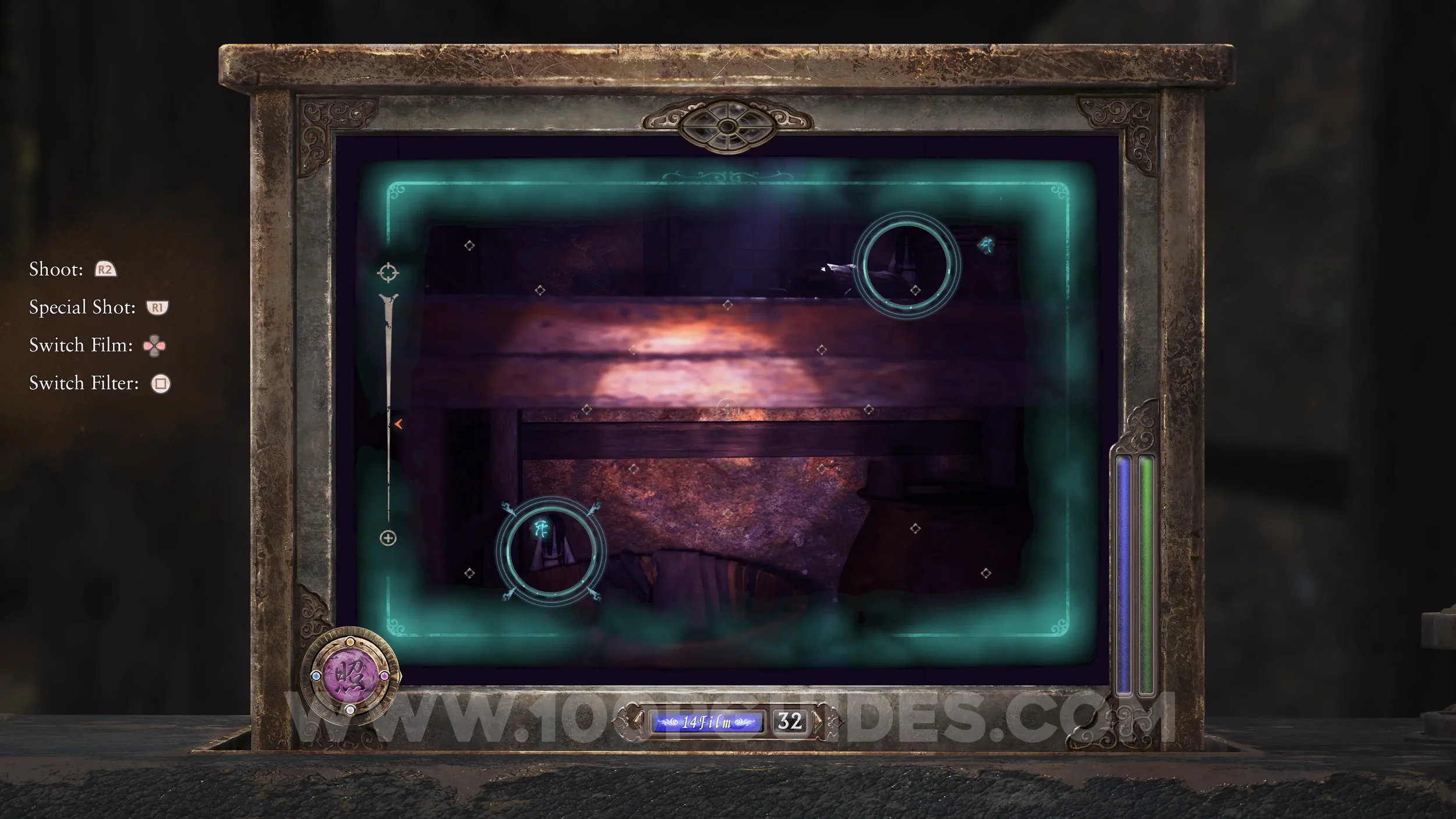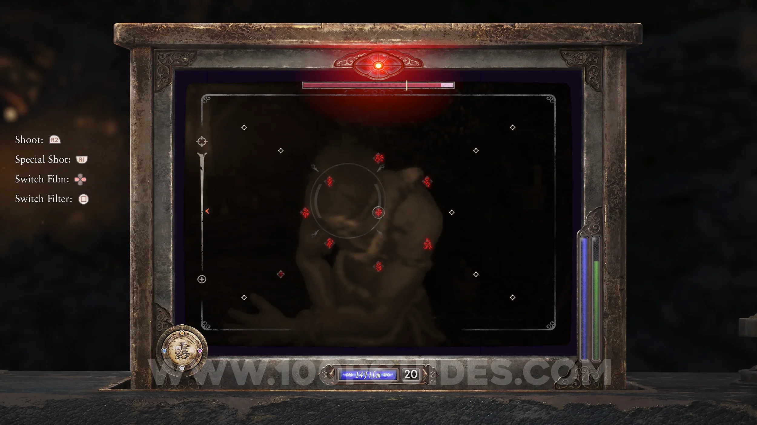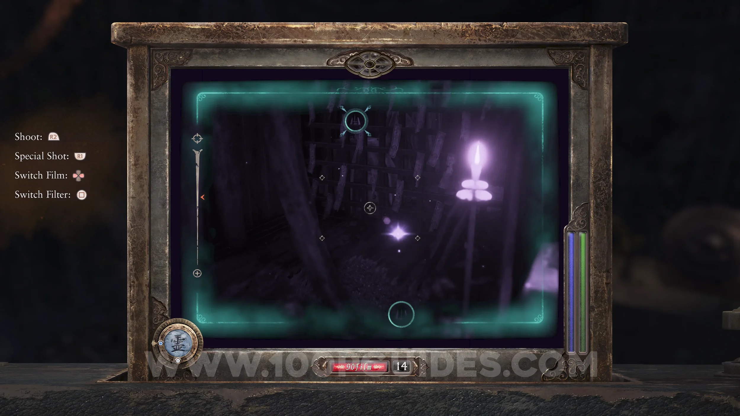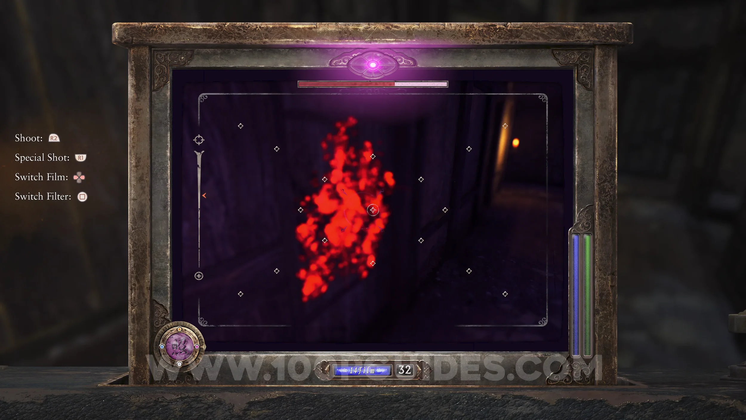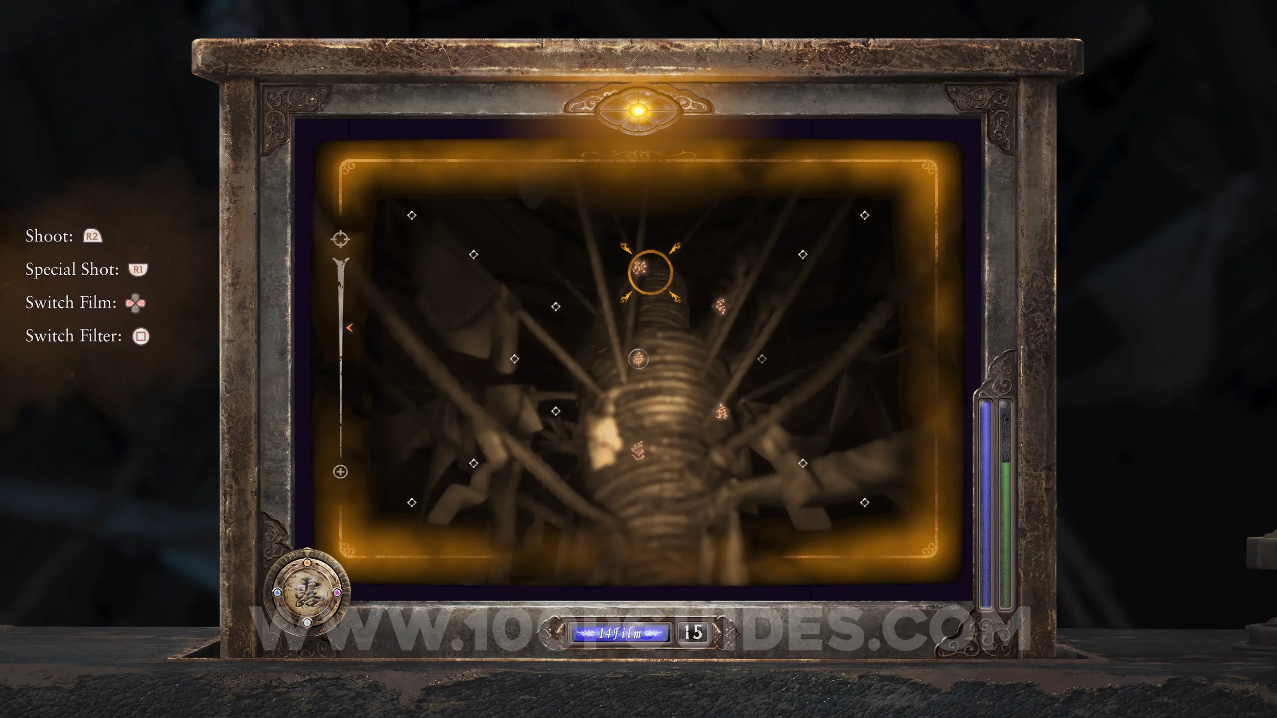 Specter #13 - 016 Beckoning Crimson Butterfly. After examining the gate just past the save point, turn around and look through the camera to see the Specter Butterfly.
