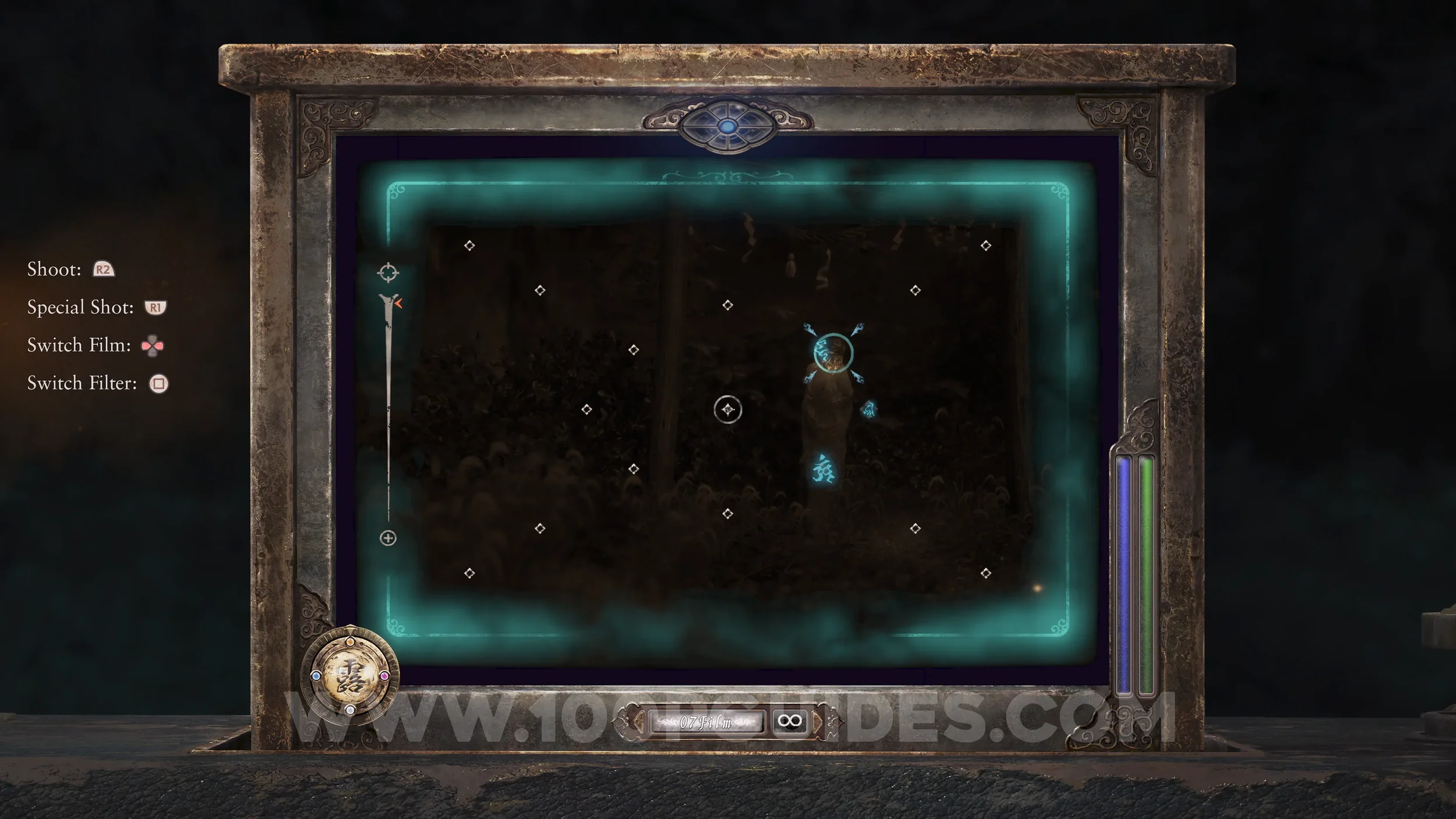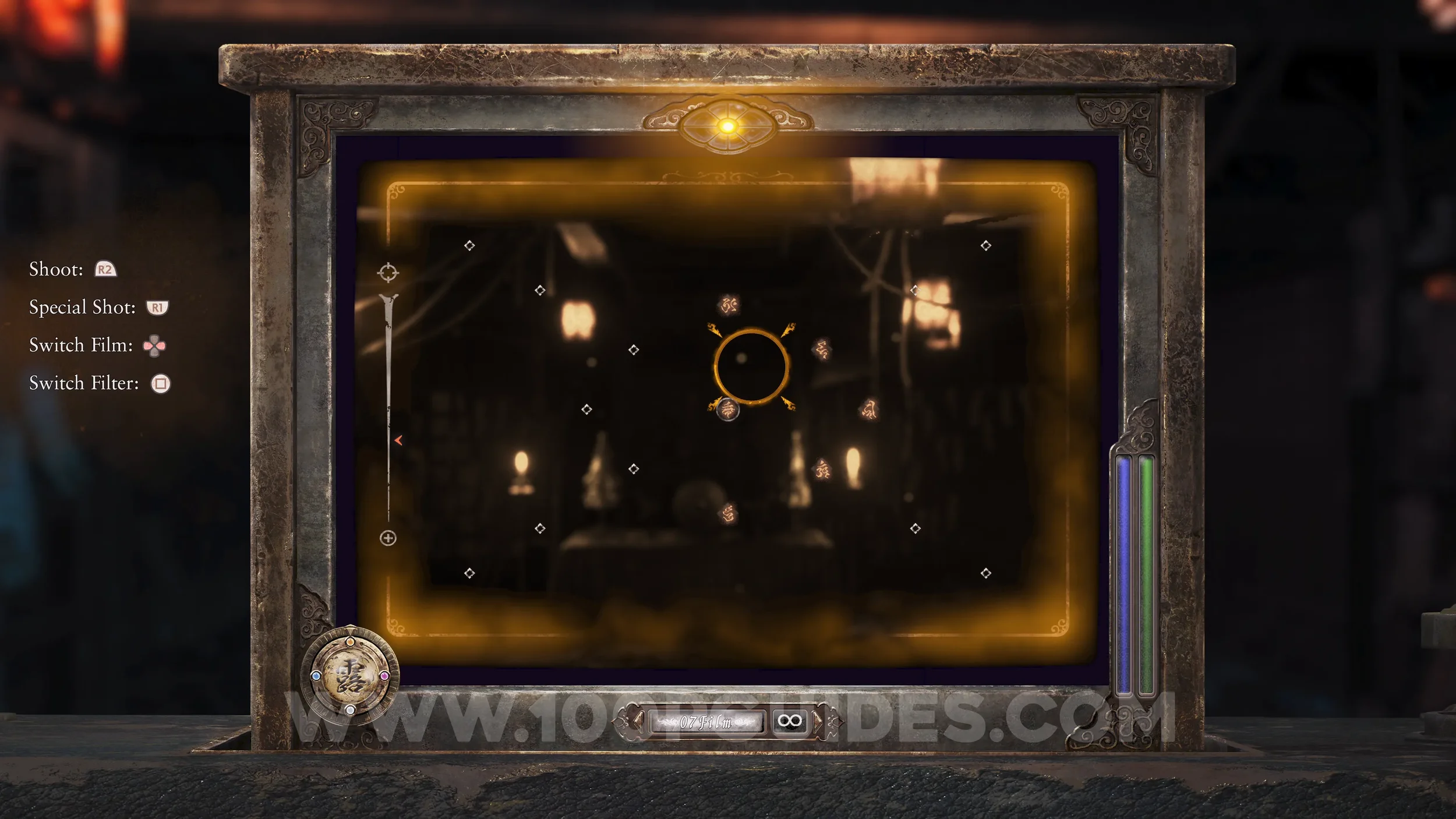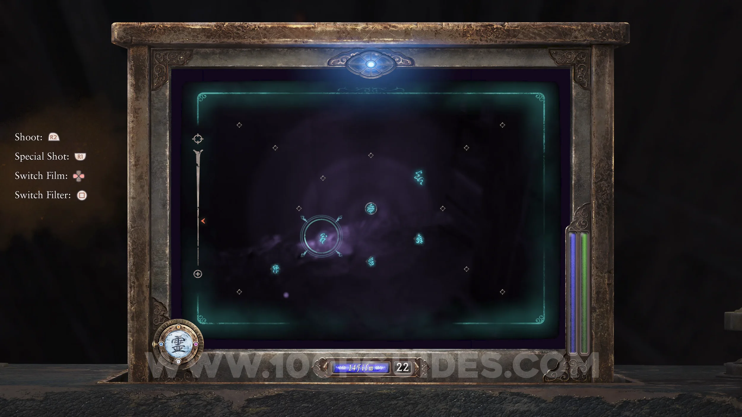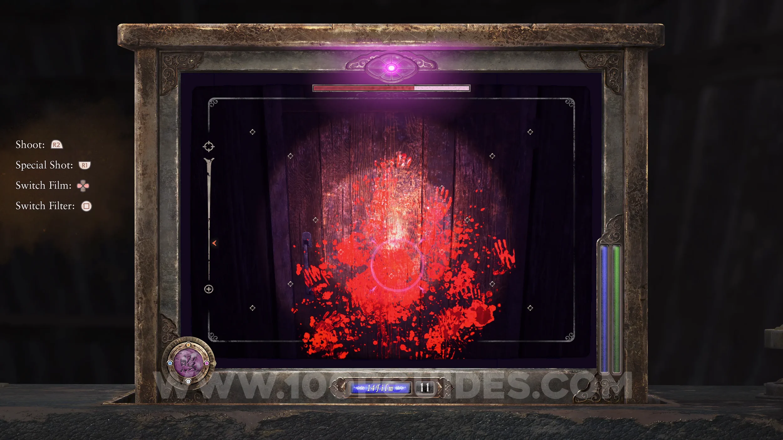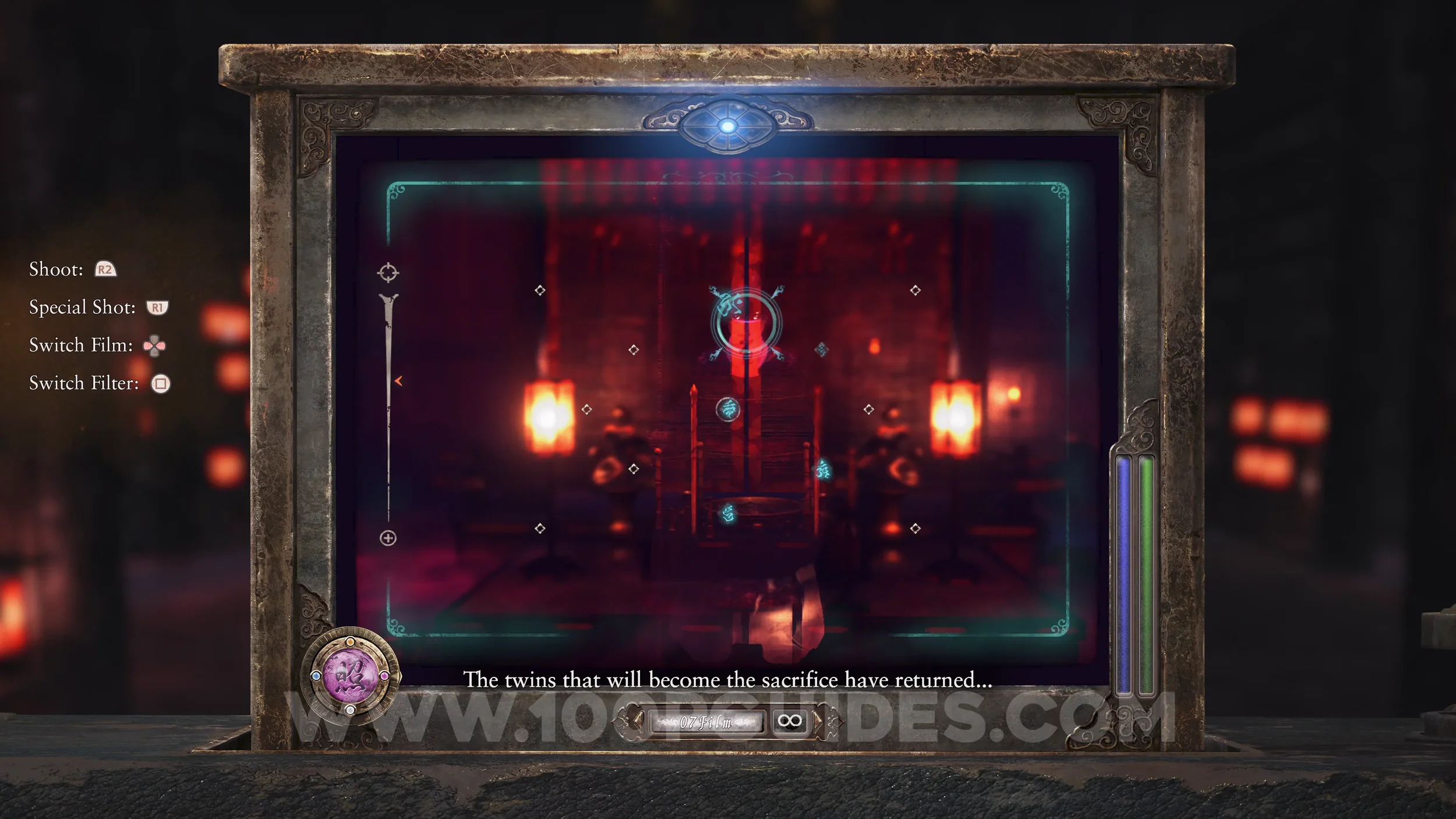 Specter #13 - 016 Beckoning Crimson Butterfly. After examining the gate just past the save point, turn around and look through the camera to see the Specter Butterfly.