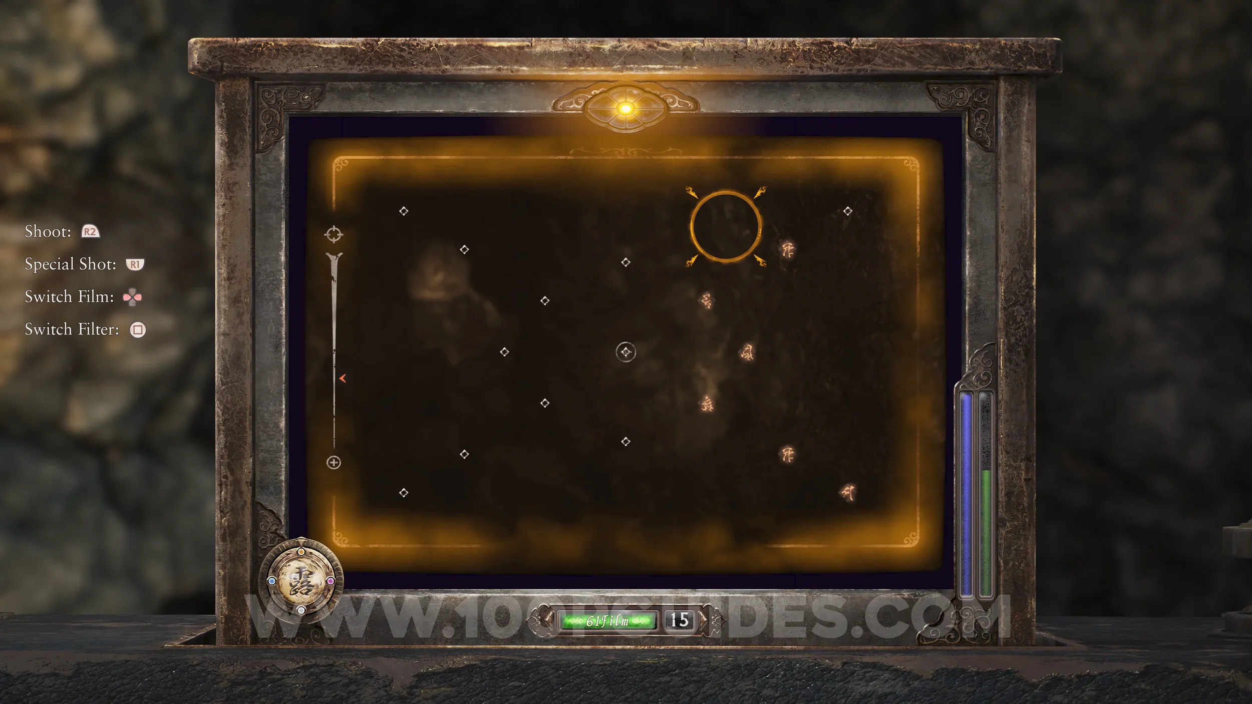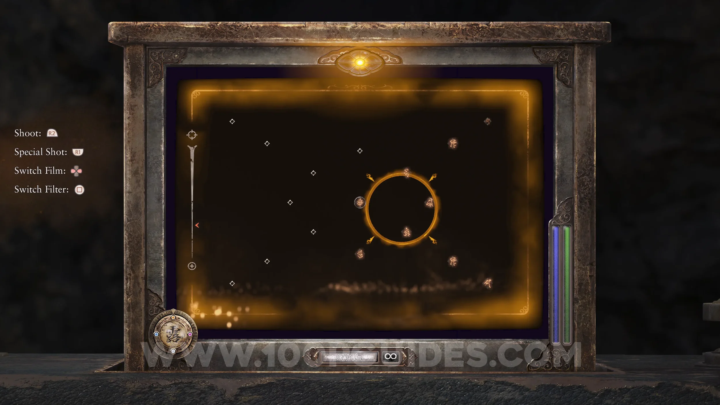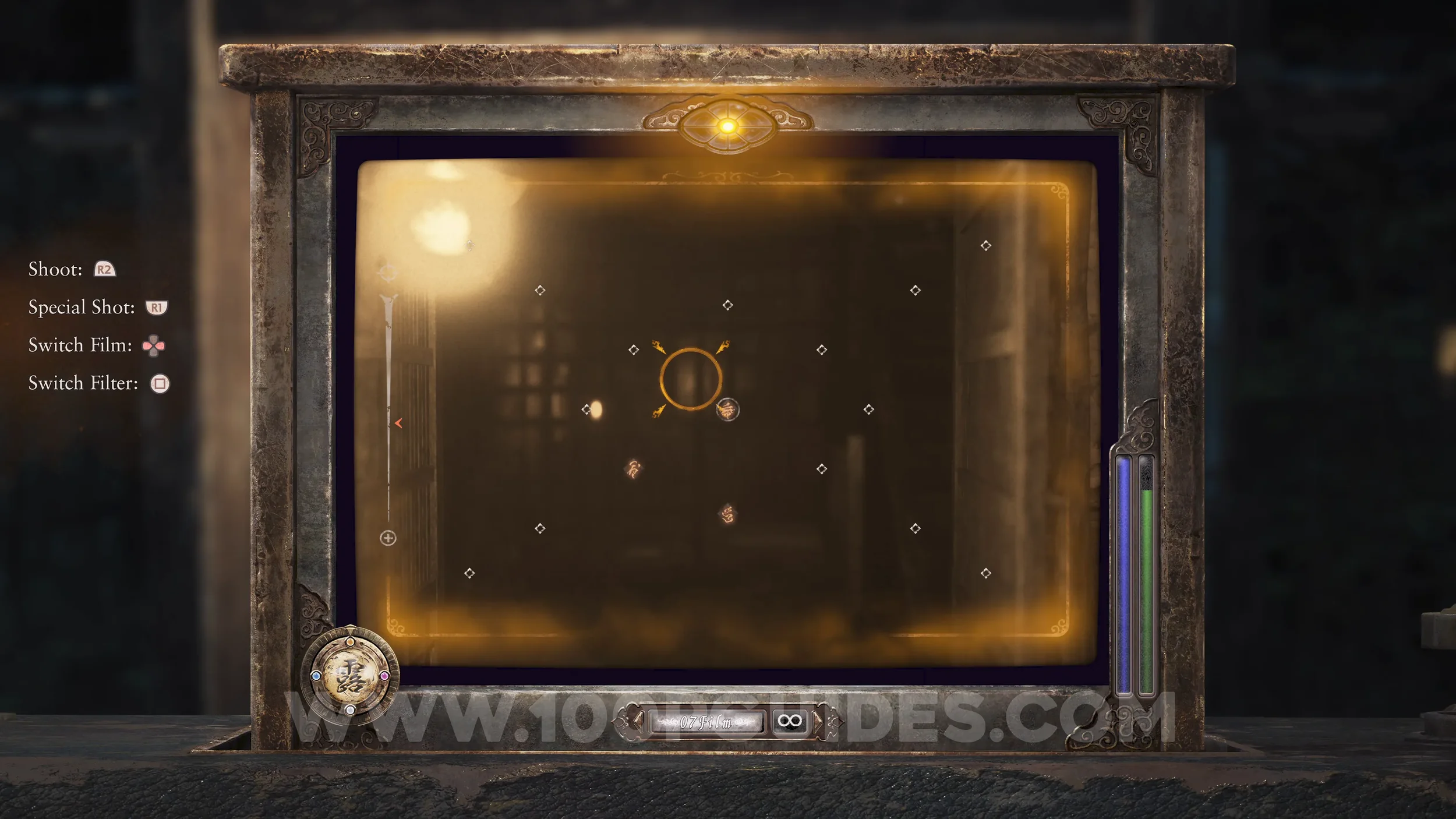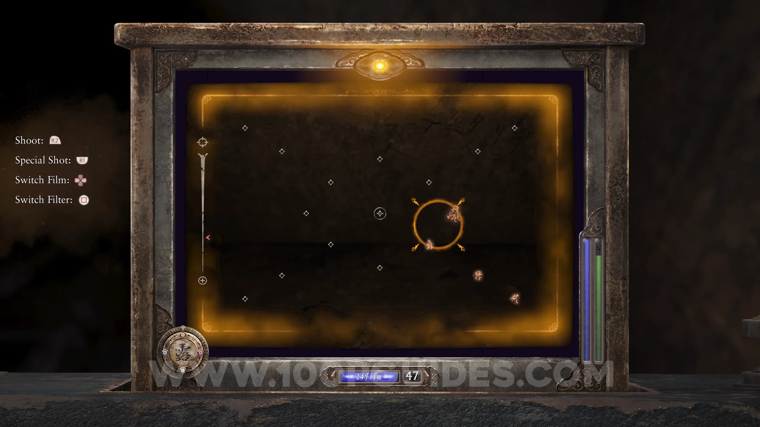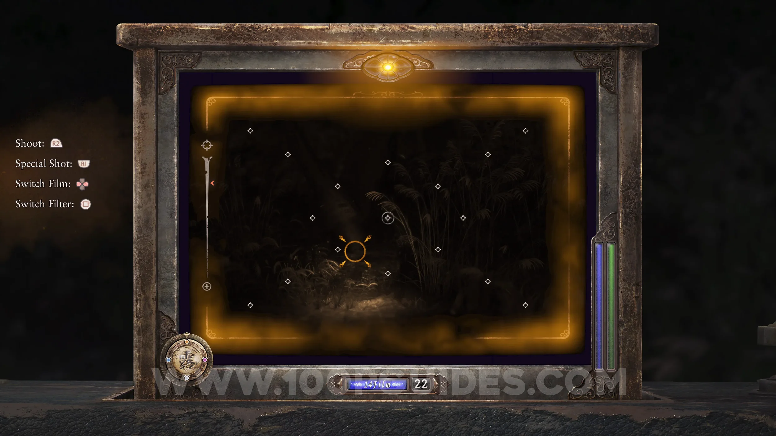 Specter #13 - 016 Beckoning Crimson Butterfly. After examining the gate just past the save point, turn around and look through the camera to see the Specter Butterfly.