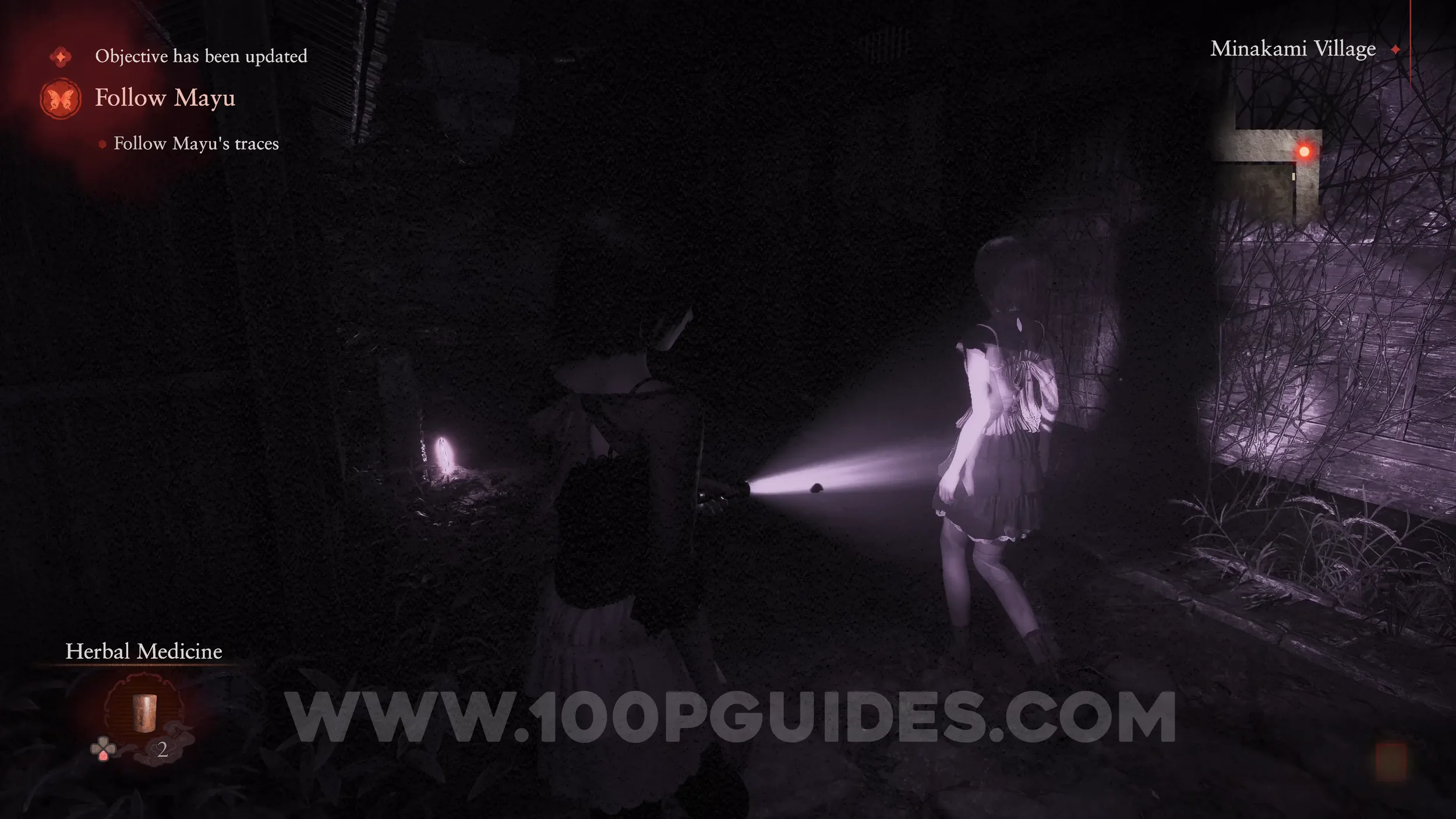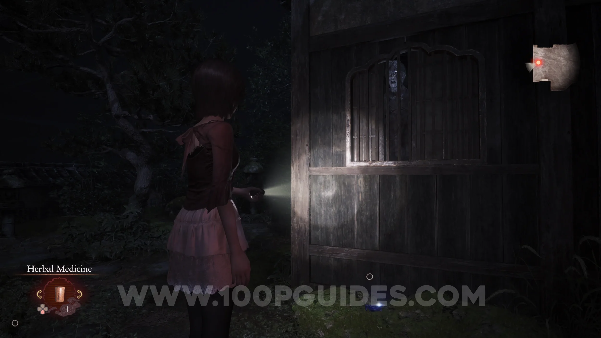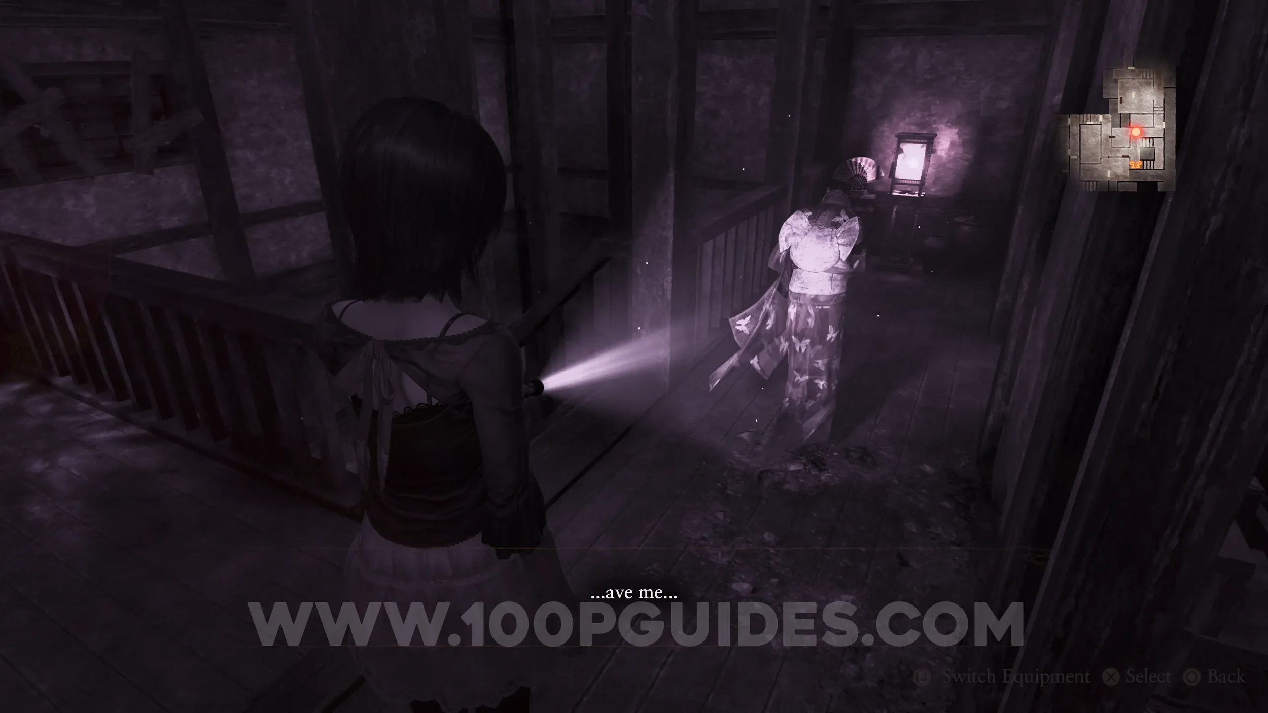 Specter #213 - 137 Mayu Heading to Kurosawa House. In front of you after opening the gate at the end of the bridge leading toward Kurosawa House.