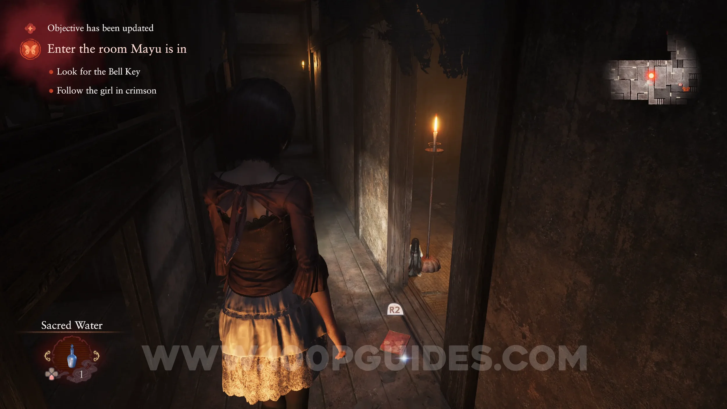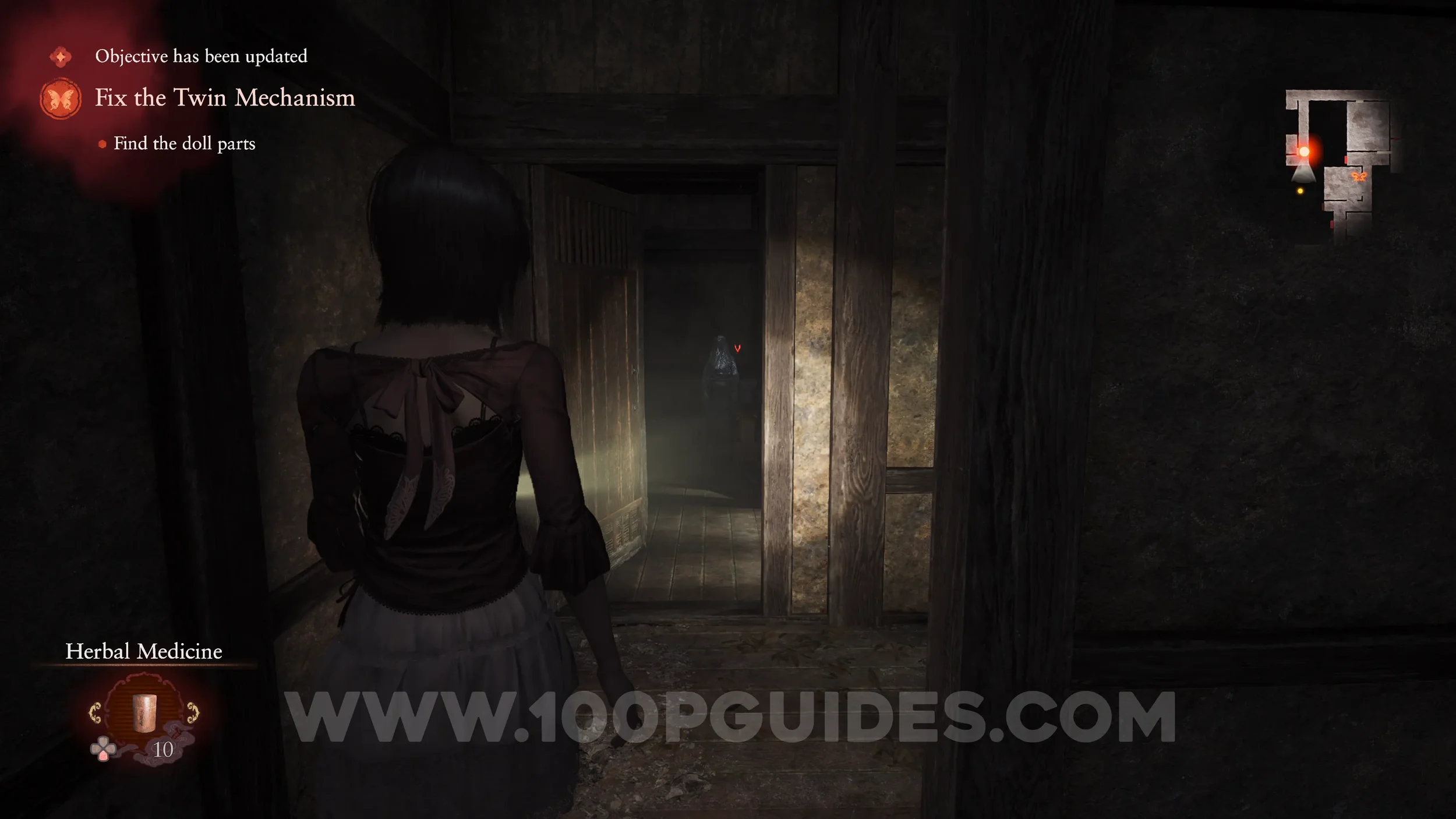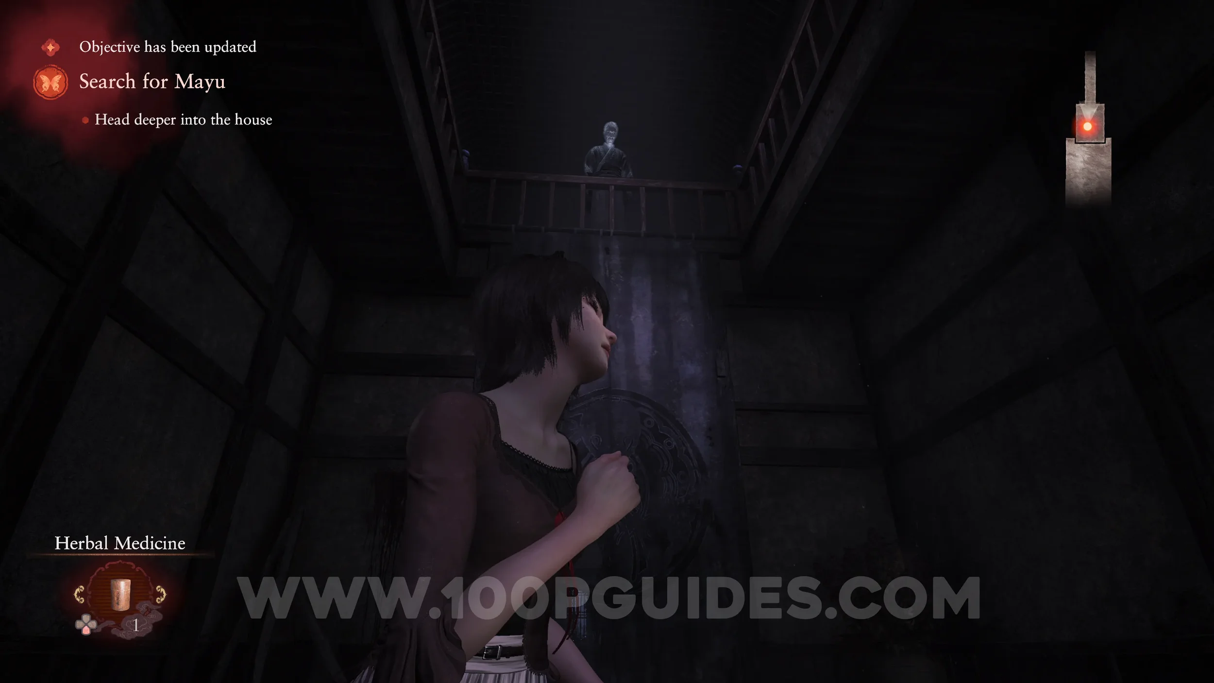 Specter #213 - 137 Mayu Heading to Kurosawa House. In front of you after opening the gate at the end of the bridge leading toward Kurosawa House.