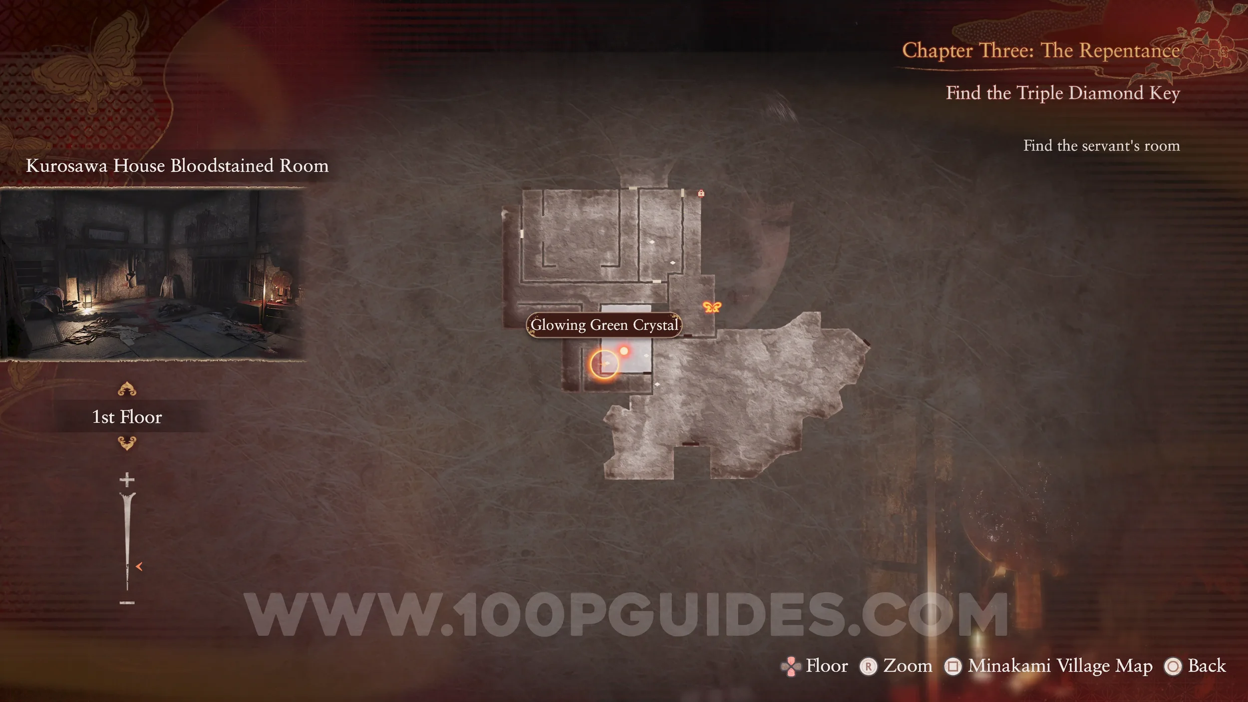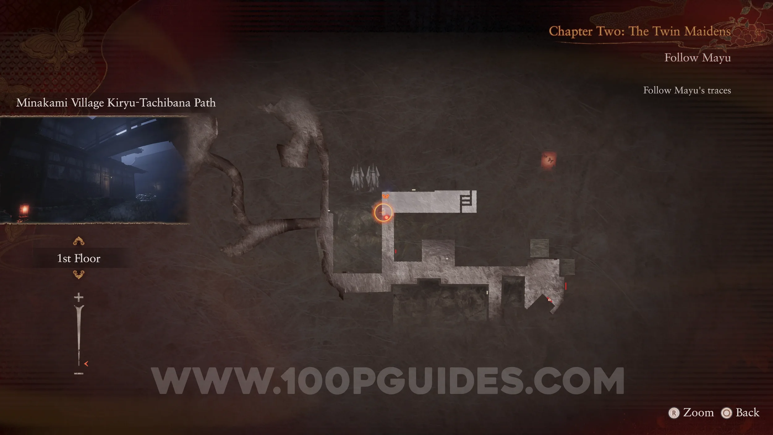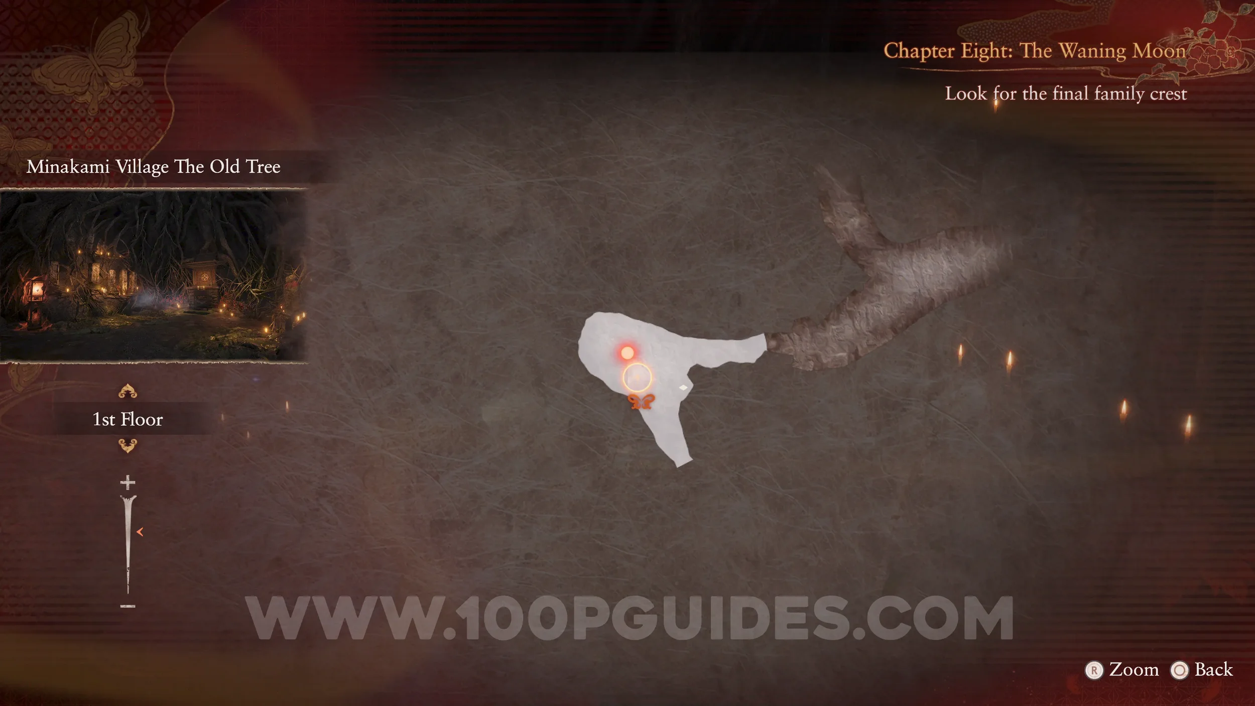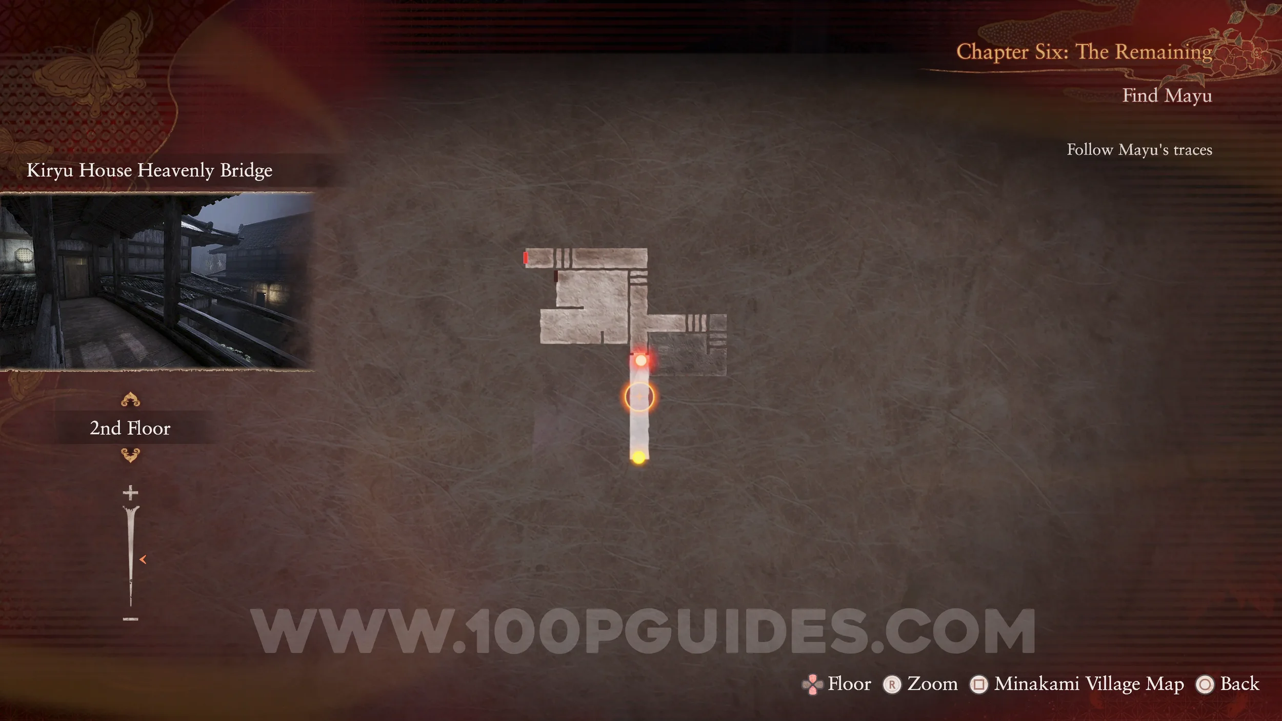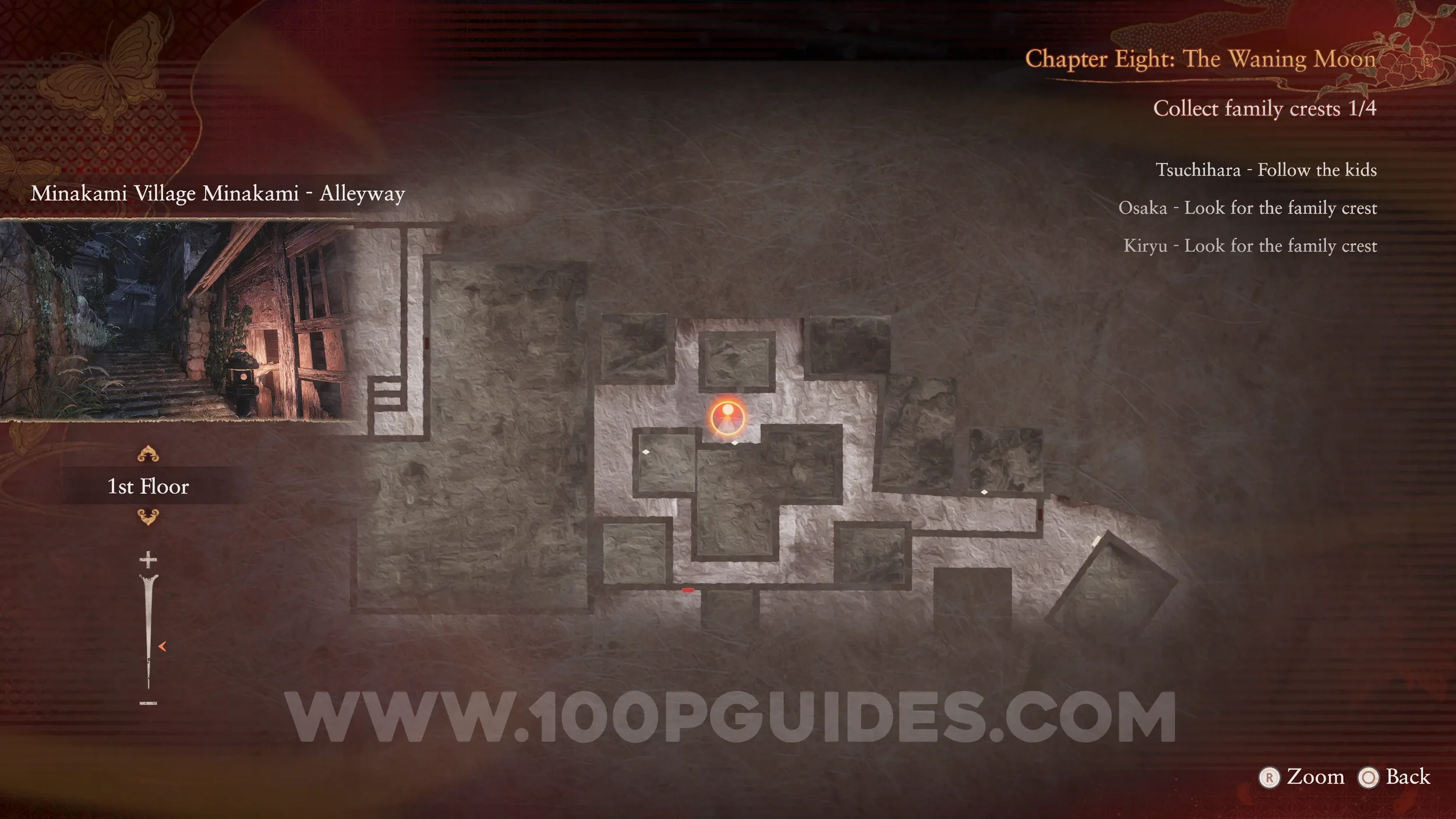 Specter #195 - 232 Girl in Waiting, Spirit Stone #36 - Pale Crimson Crystal (1/2) and Side Quest #11 - Azami Kiryu. On the wooden bridge as you leave Eikado Temple after finishing the Children at Play side quest.