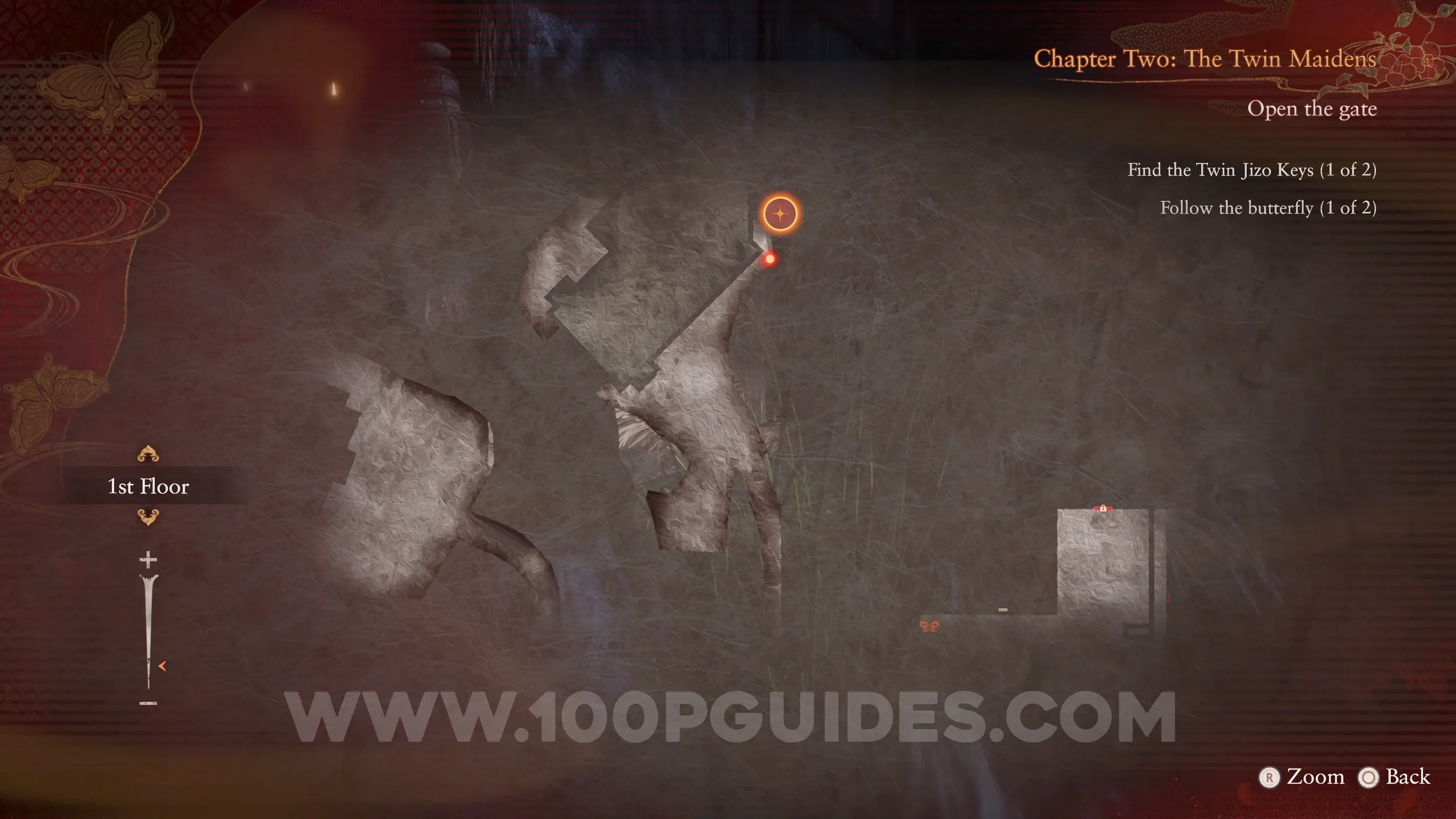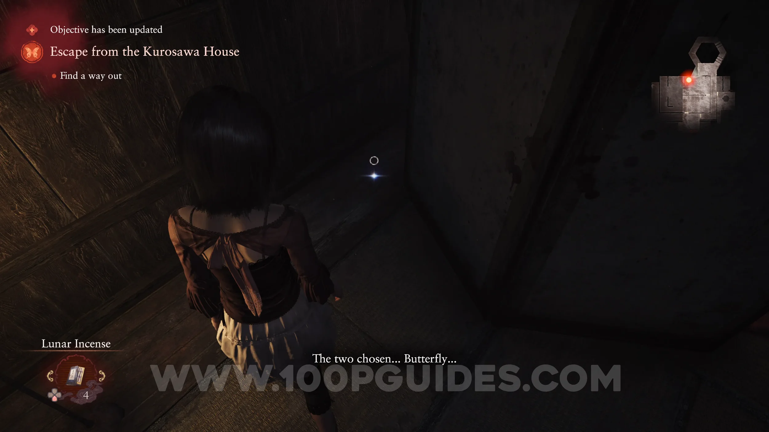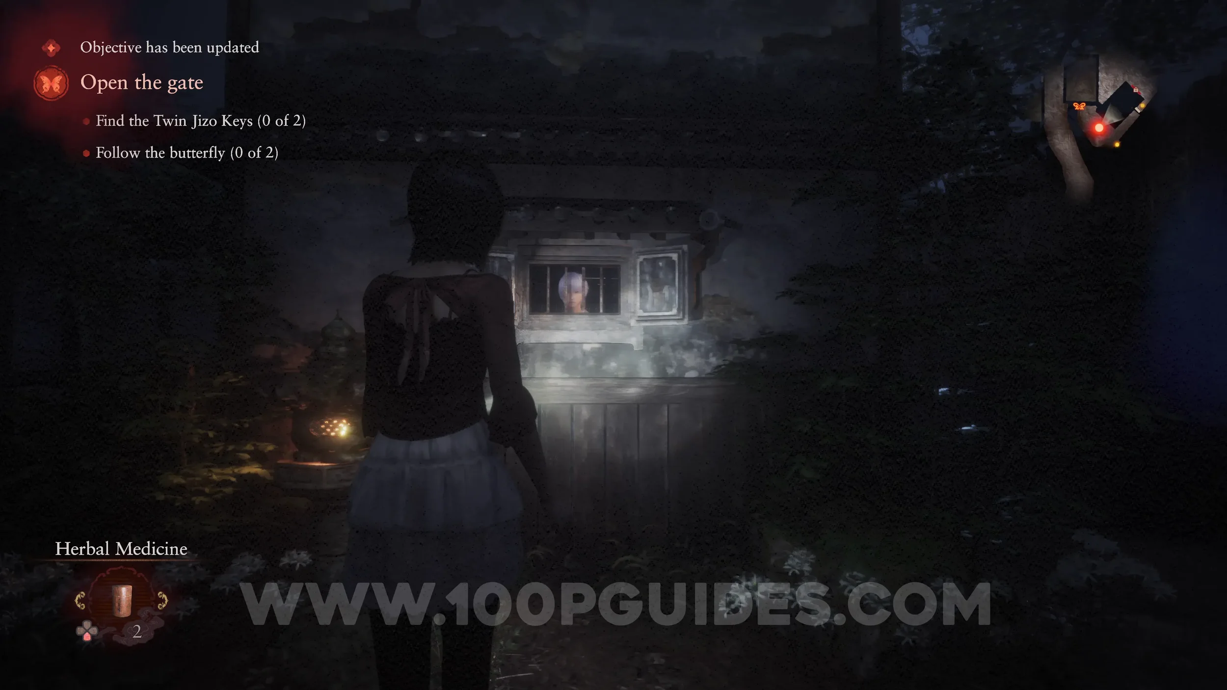Specter # 19 - 020 Inviting Crimson Butterfly. Will spawn as soon as you leave the house where you get the first half of the gate key.