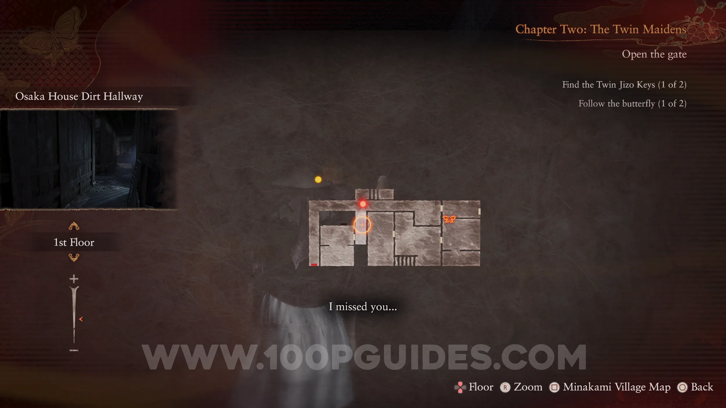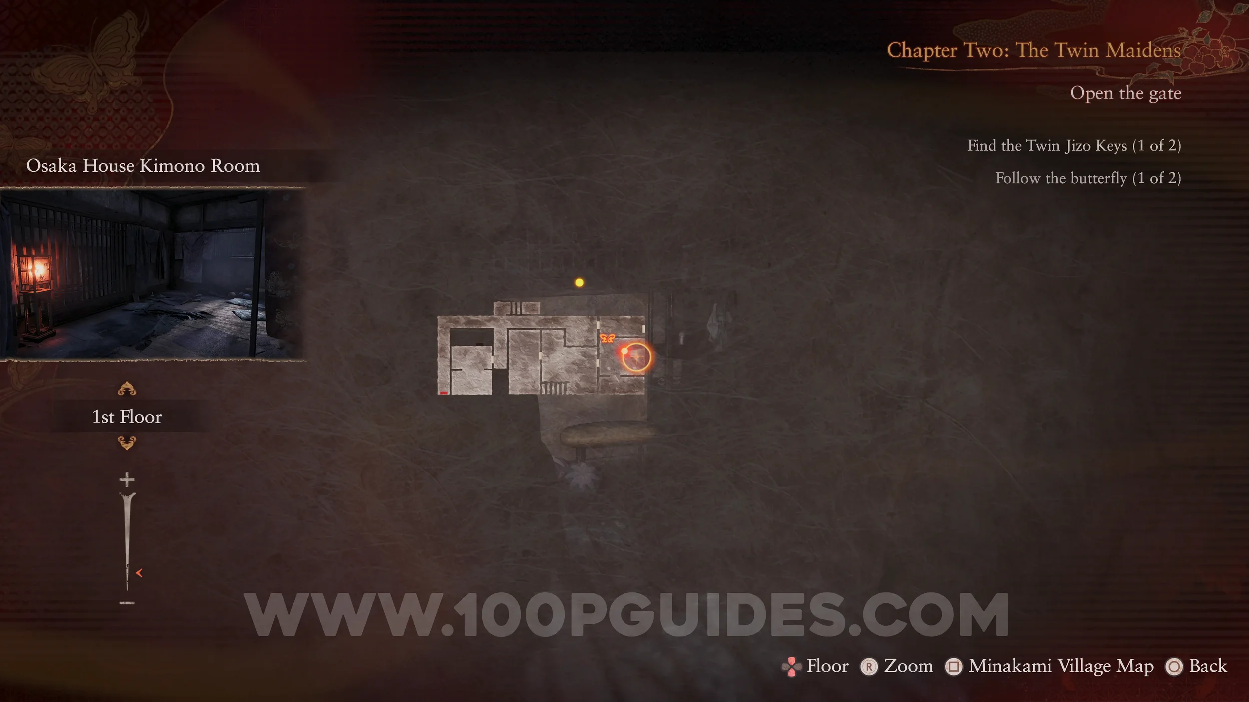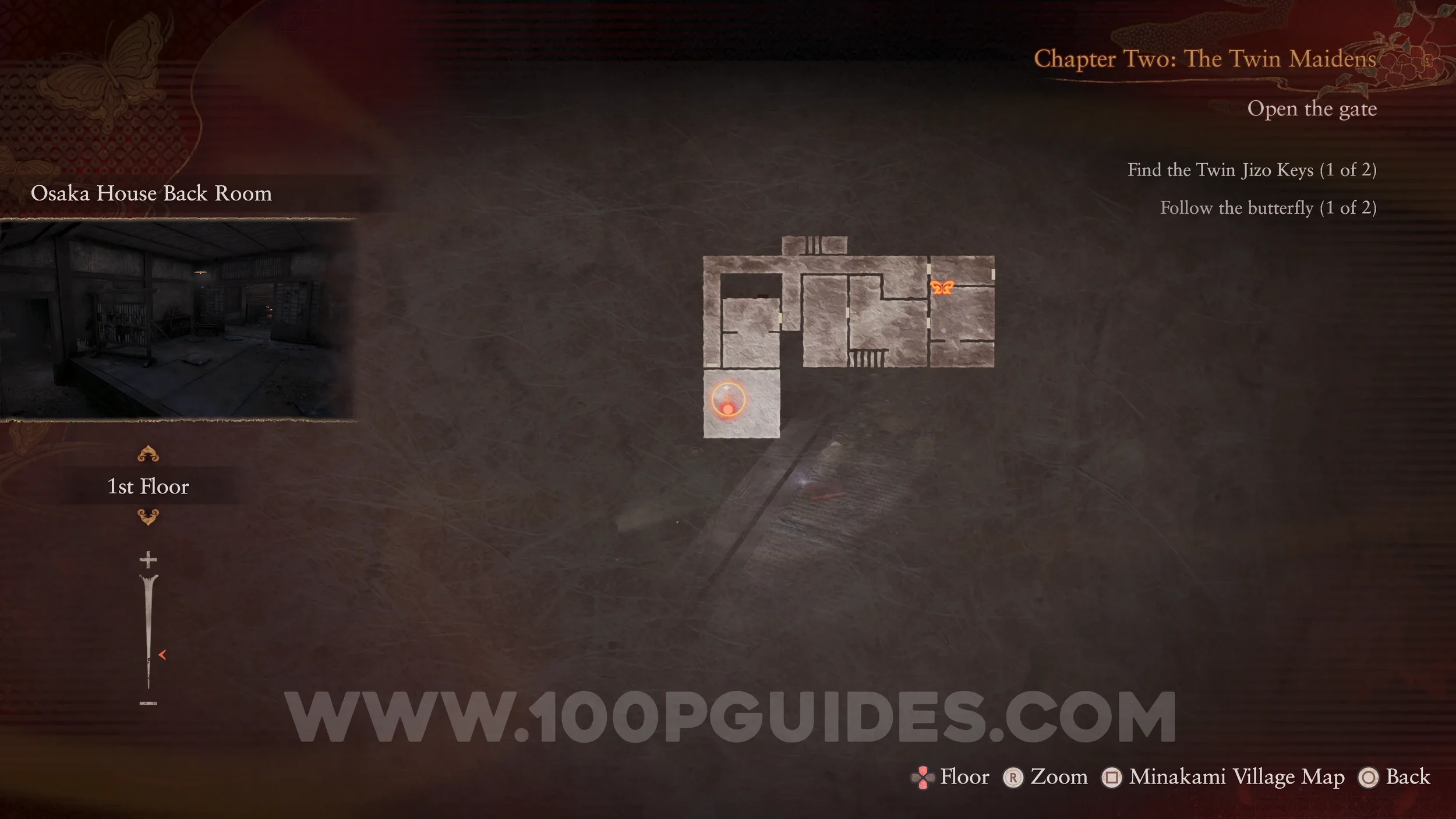 Specter # 19 - 020 Inviting Crimson Butterfly. Will spawn as soon as you leave the house where you get the first half of the gate key.