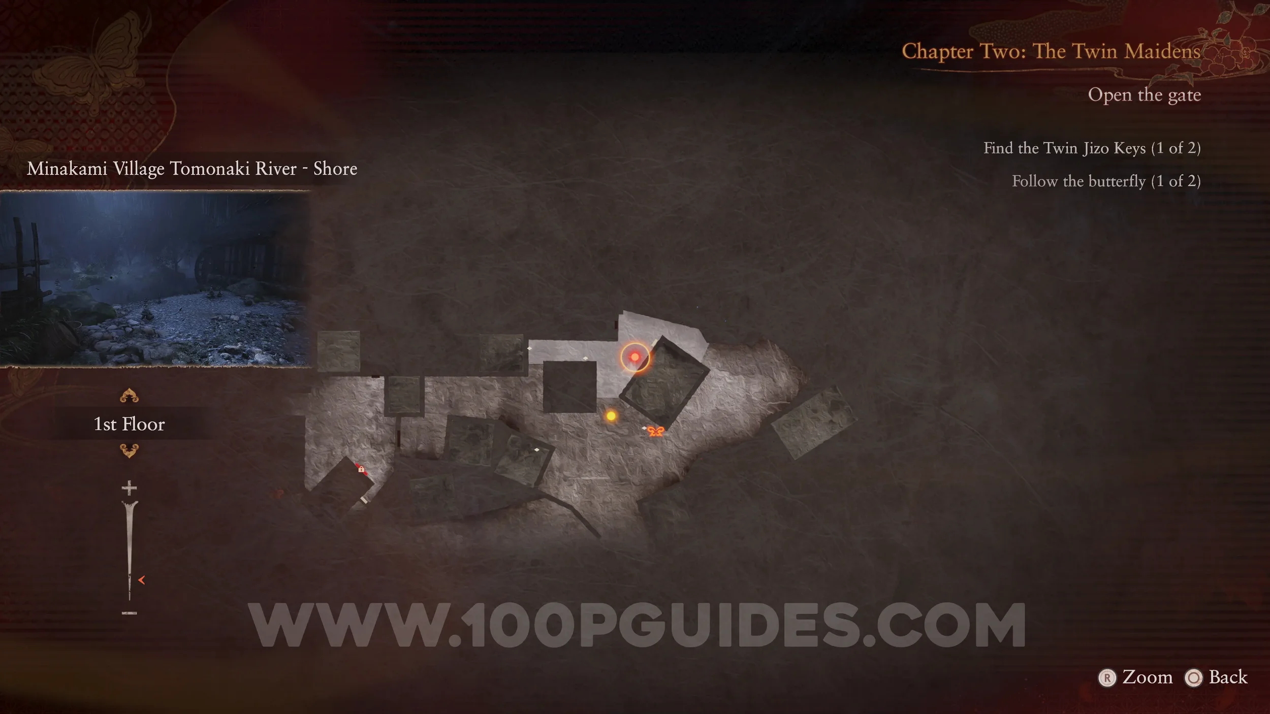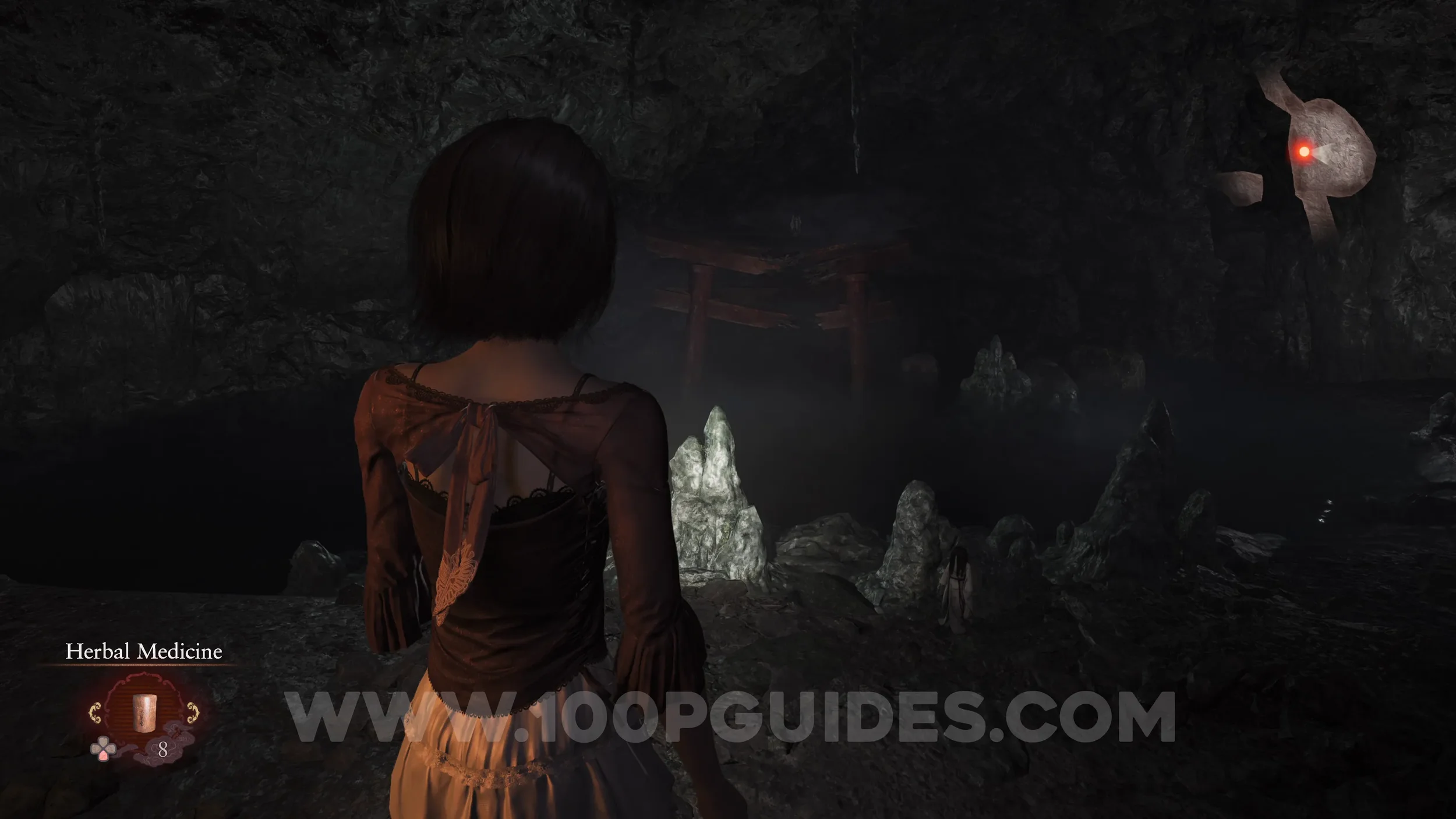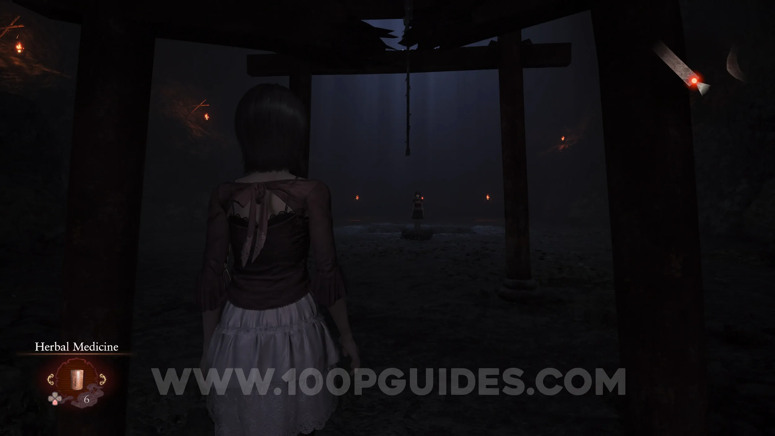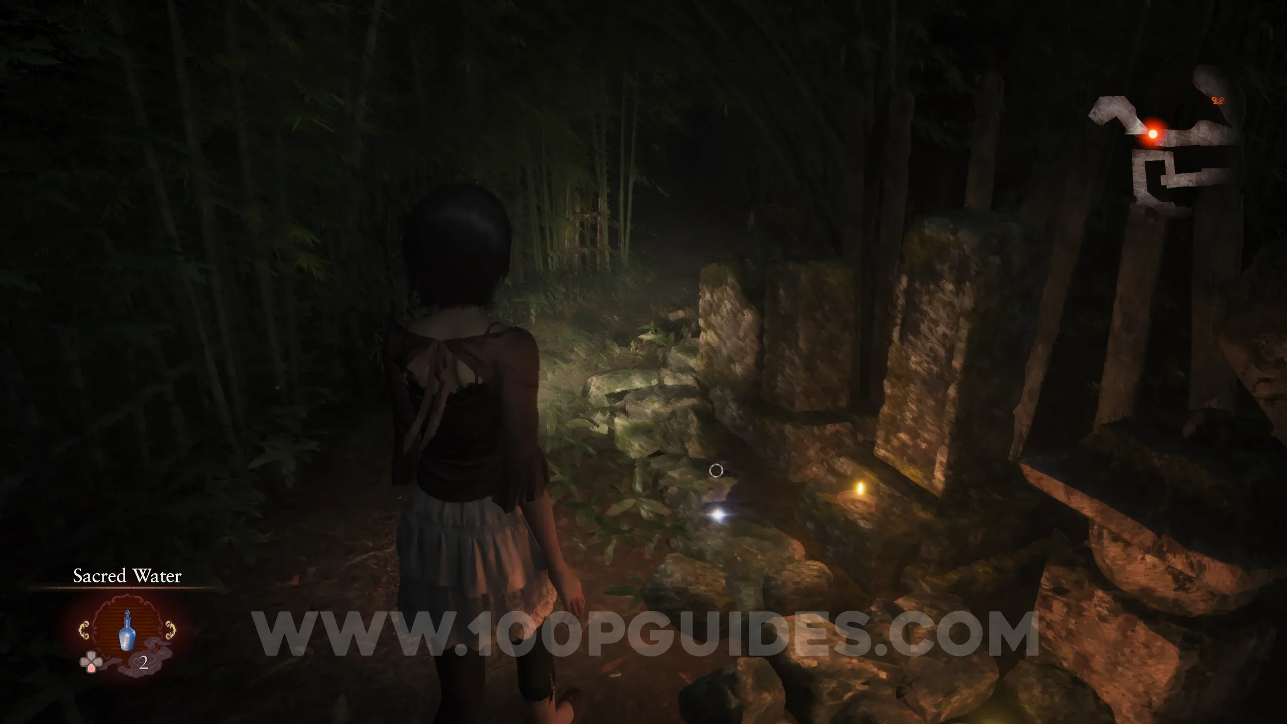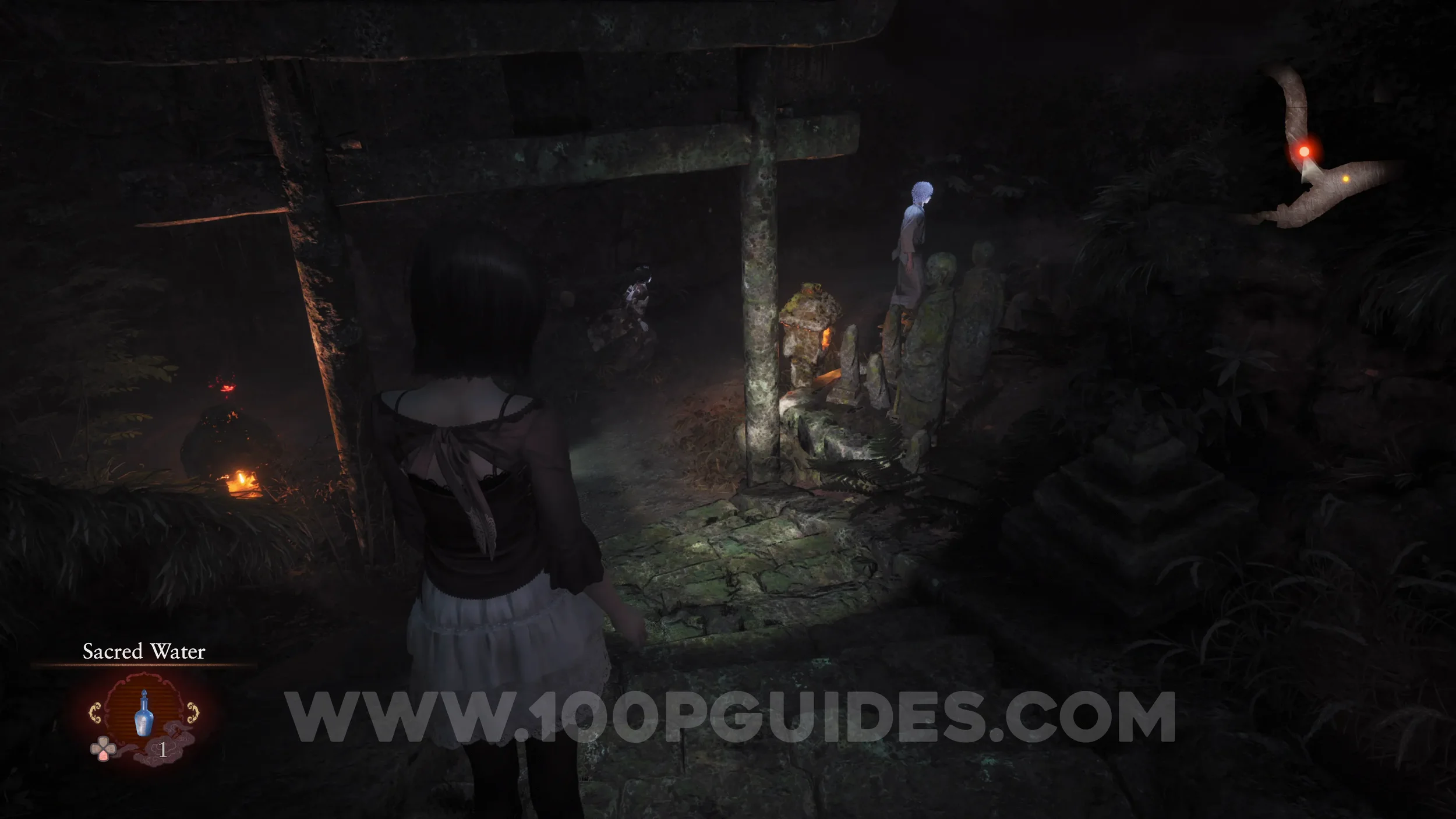 Twin Dolls #46 (27). Continue through the tunnel until you reach an area with water on your left. Stand around the middle of the path and look toward the destroyed Torii gate to get them both in the shot.