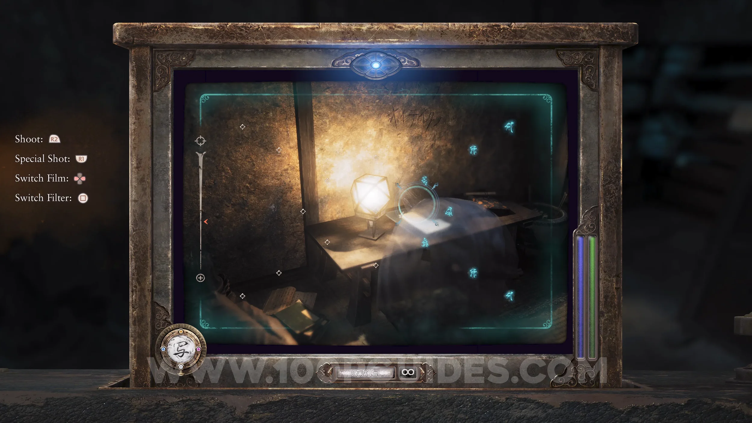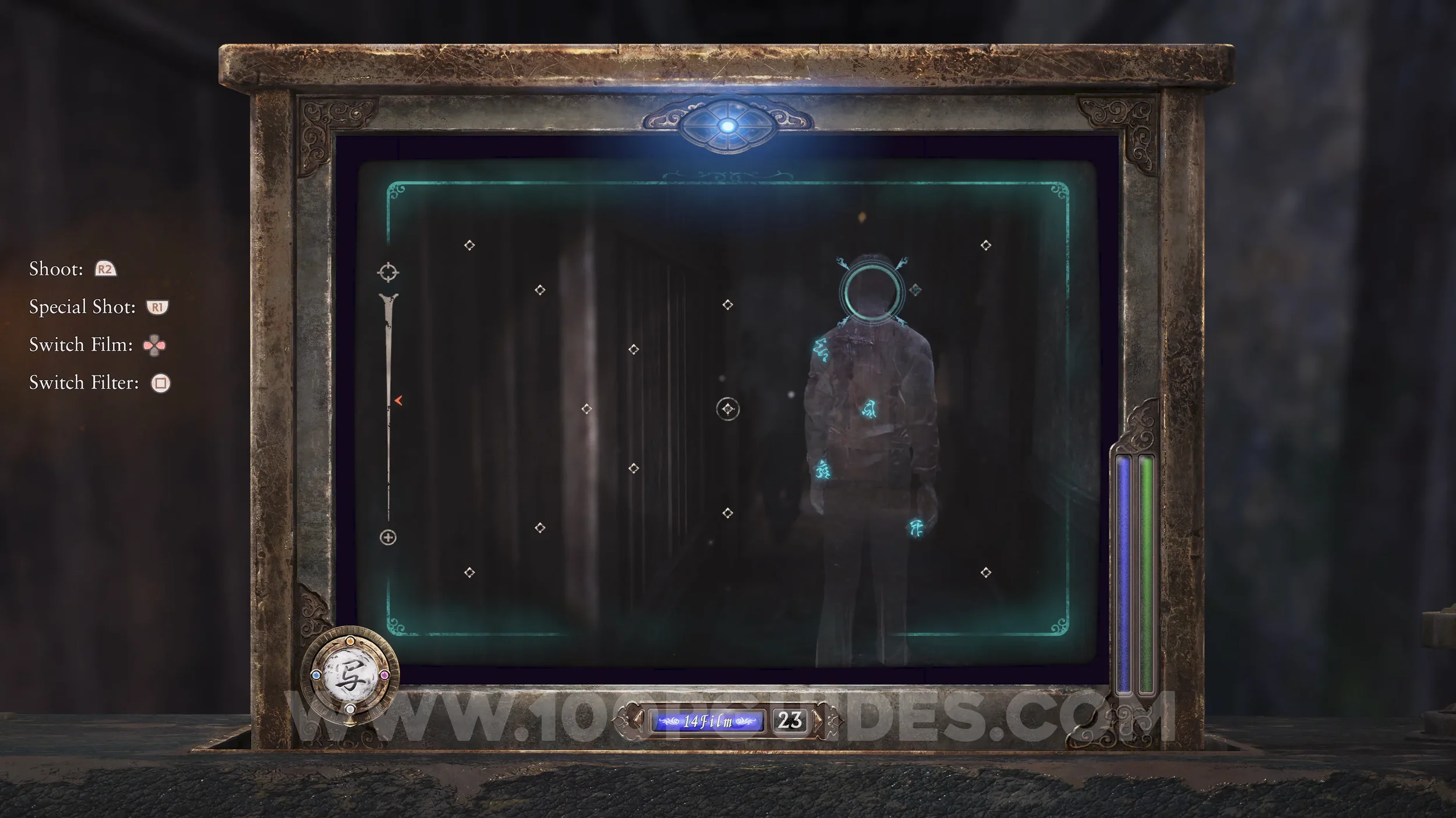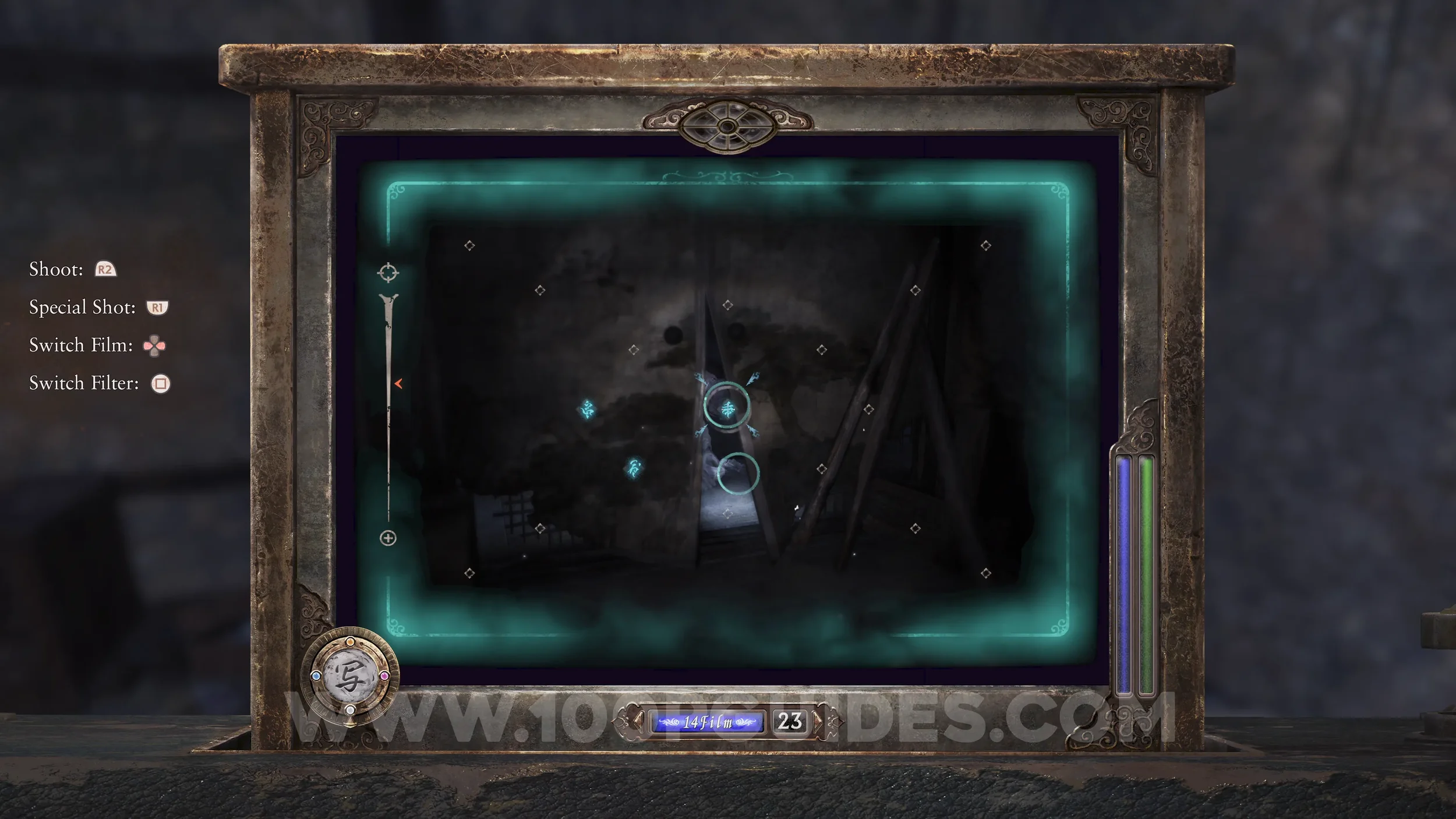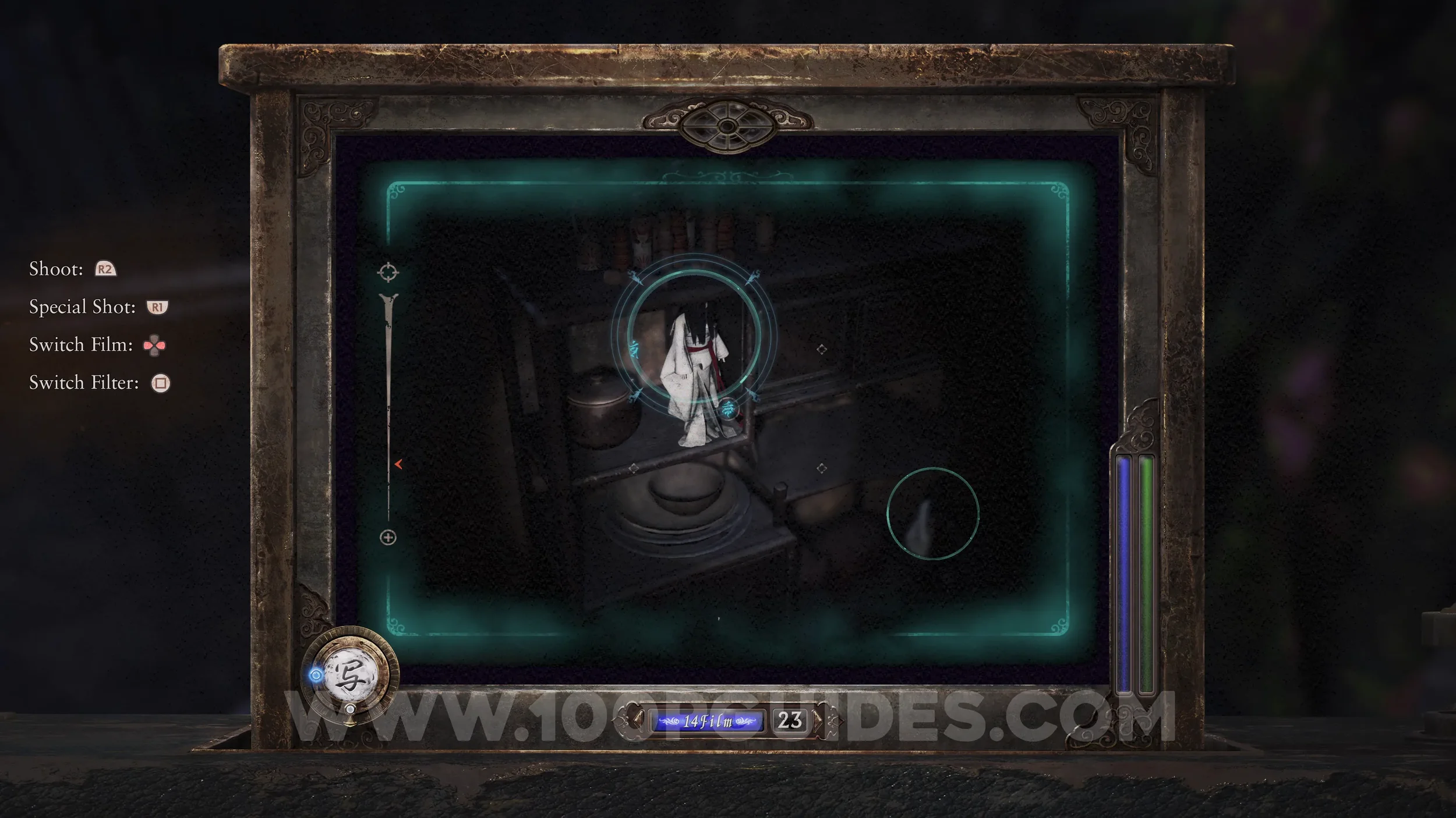 Specter #230 - 001 Girl Entering House. You will now have the camera from the start of the game, allowing you to capture the specters that appear before you normally obtain it. The first can be found as you enter the Osaka House while walking down the hill toward it.