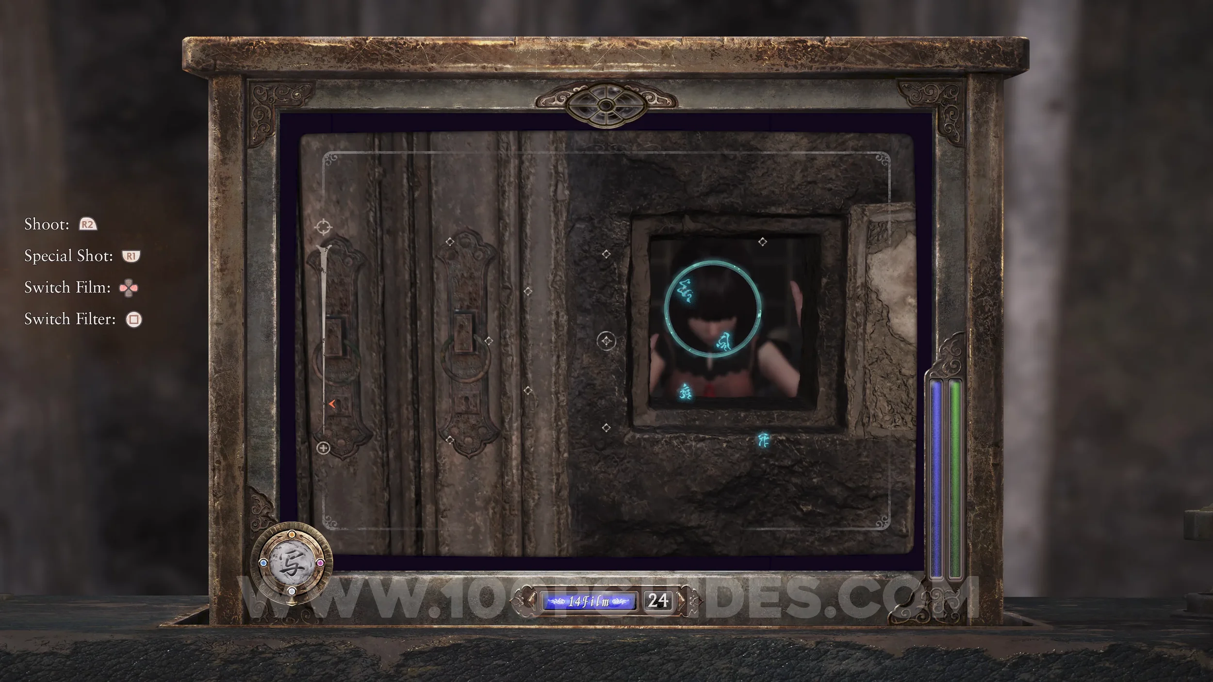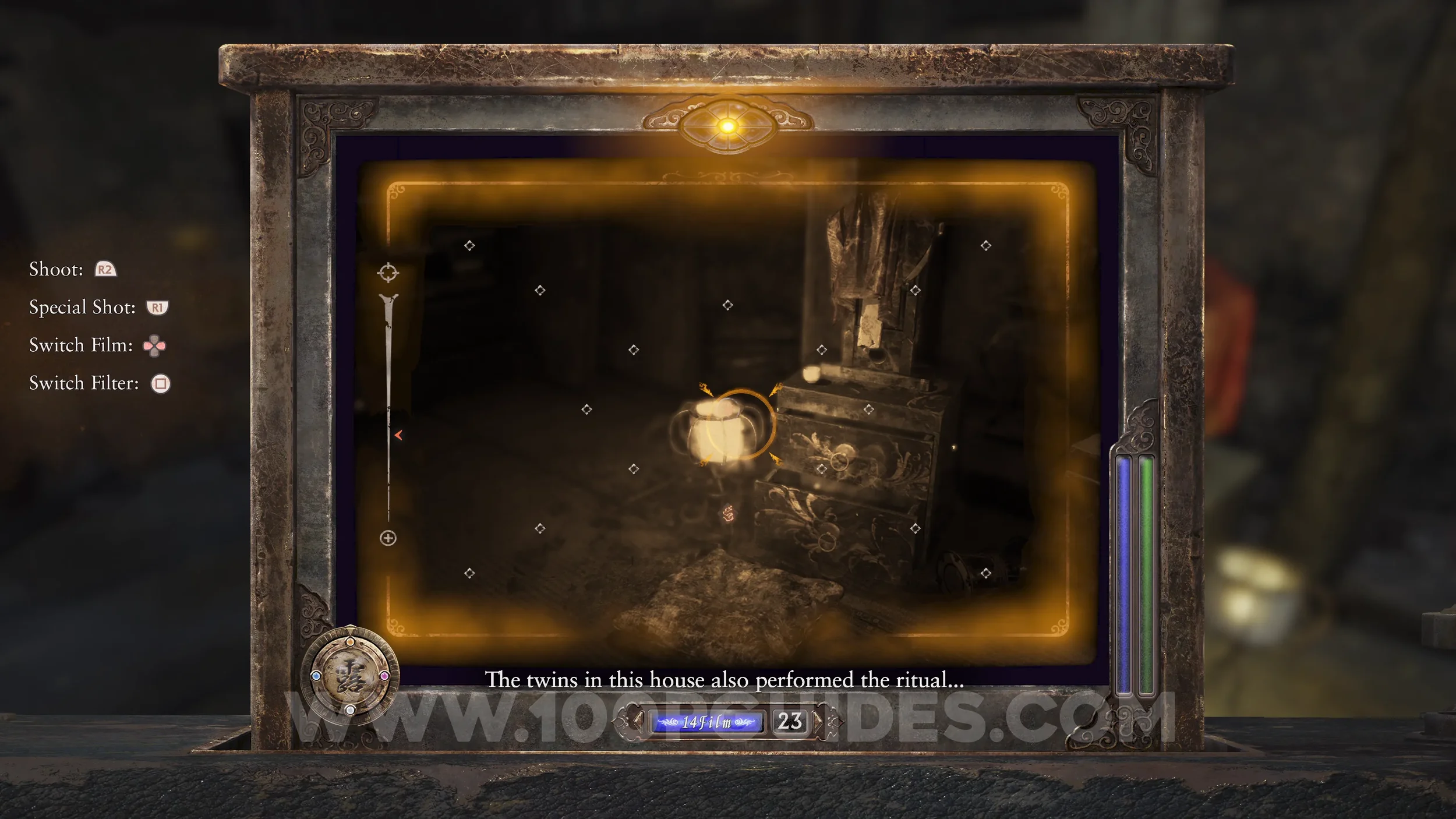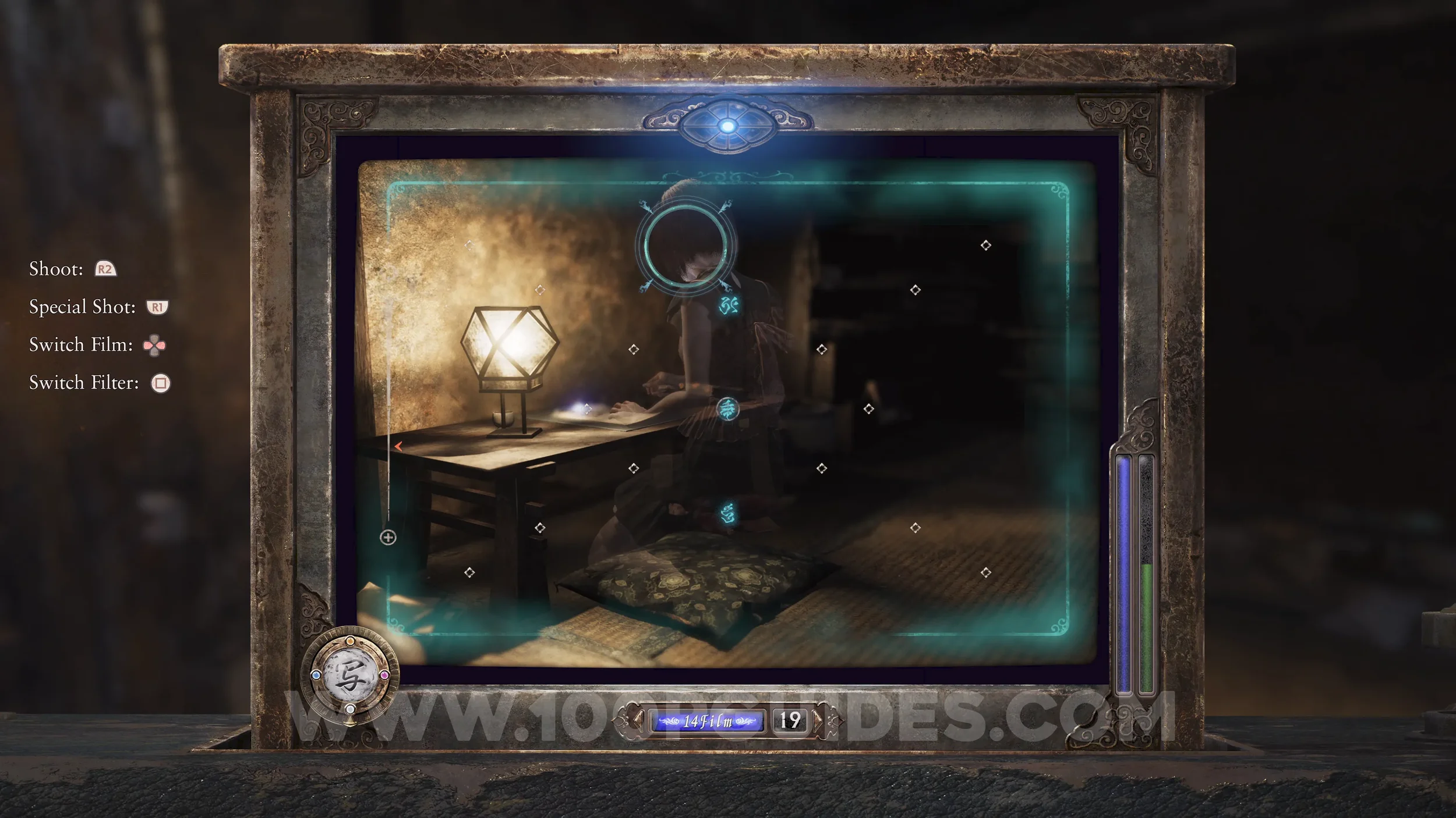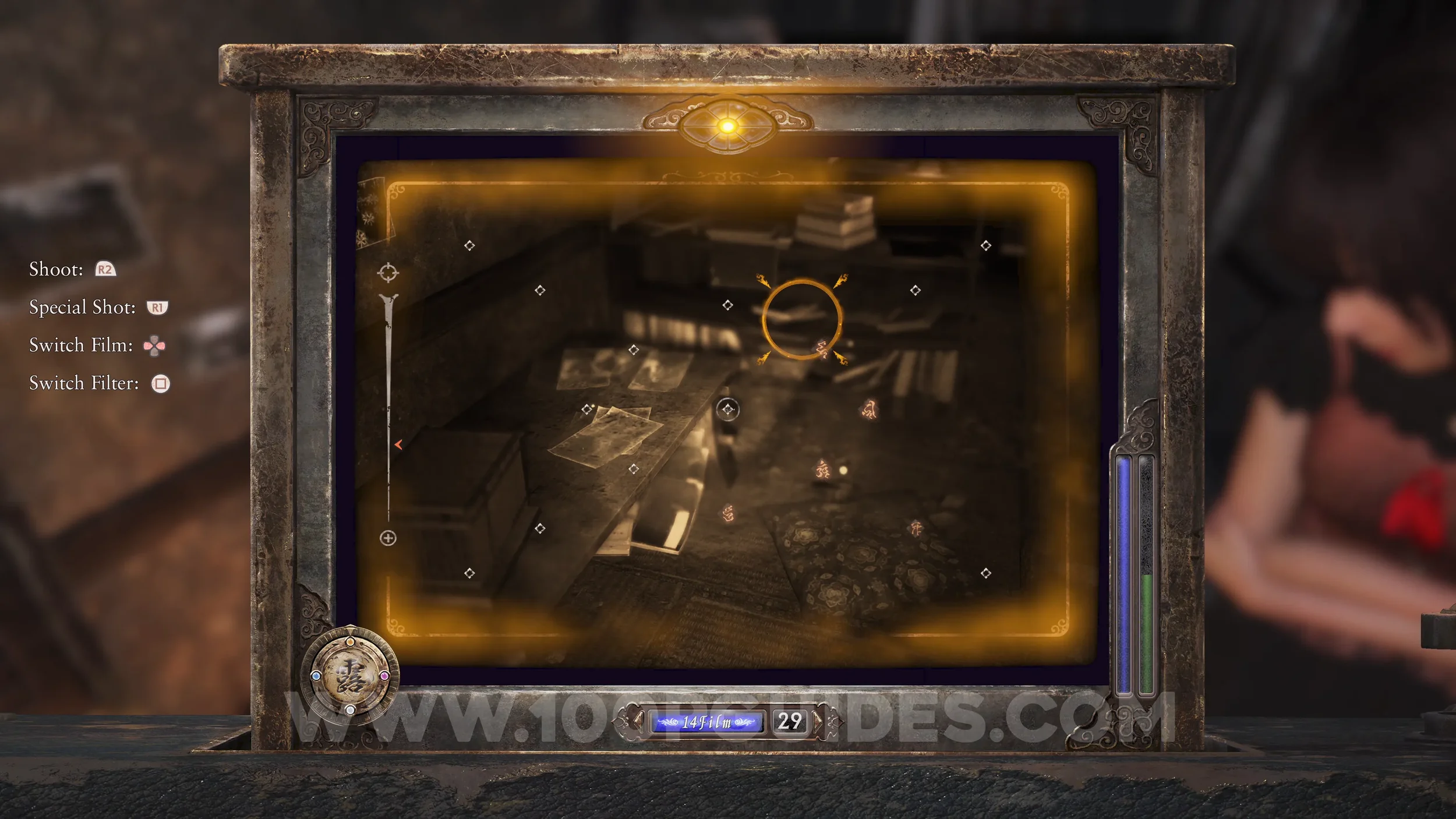 Specter #230 - 001 Girl Entering House. You will now have the camera from the start of the game, allowing you to capture the specters that appear before you normally obtain it. The first can be found as you enter the Osaka House while walking down the hill toward it.