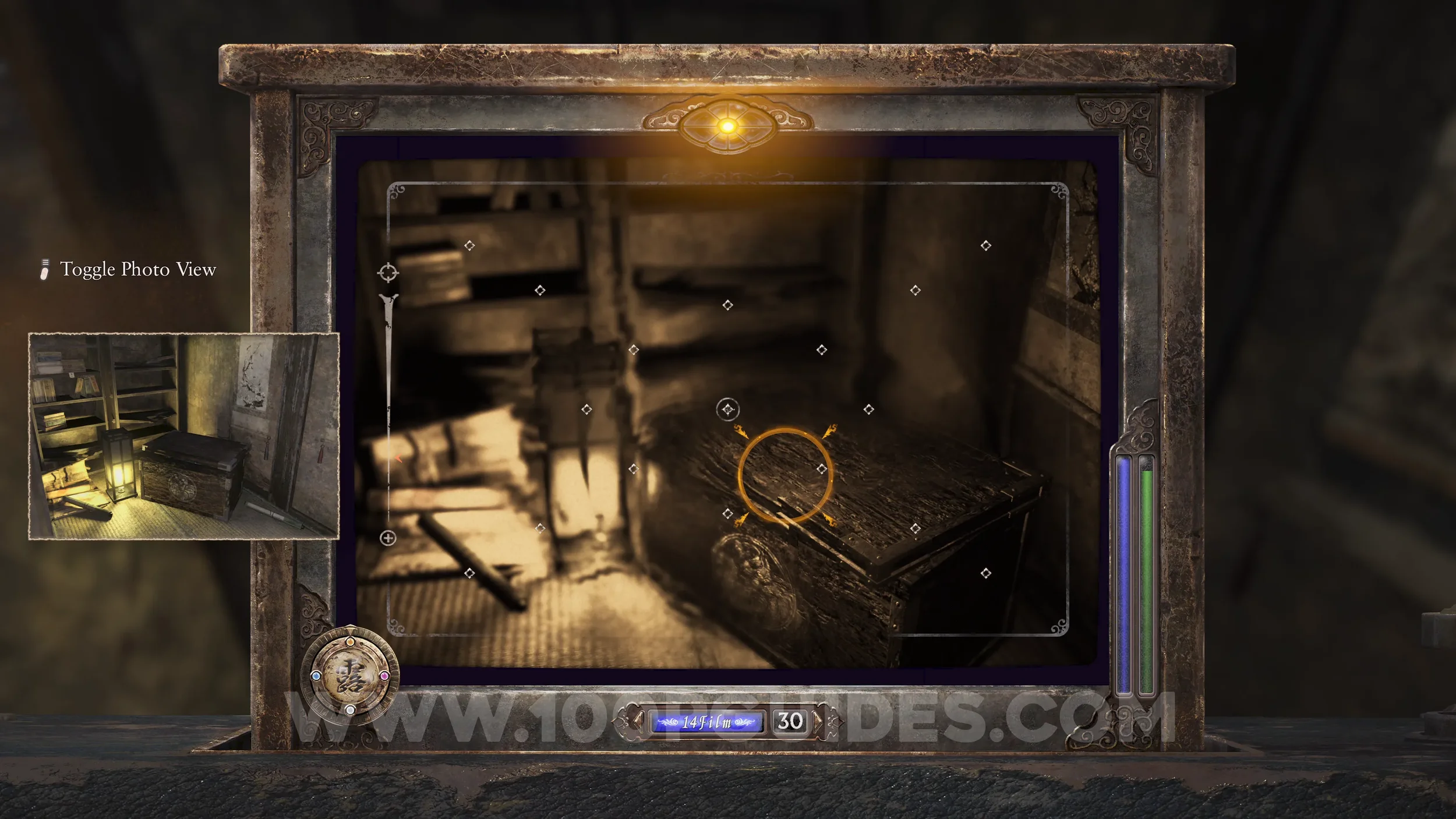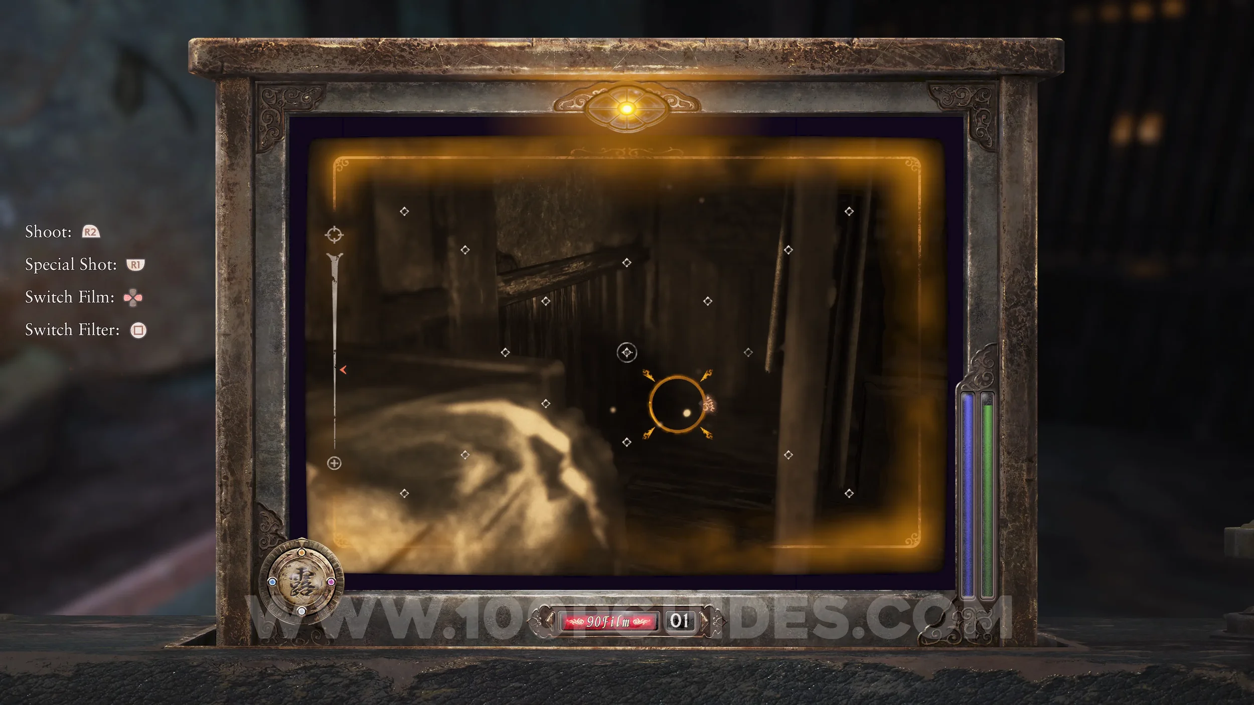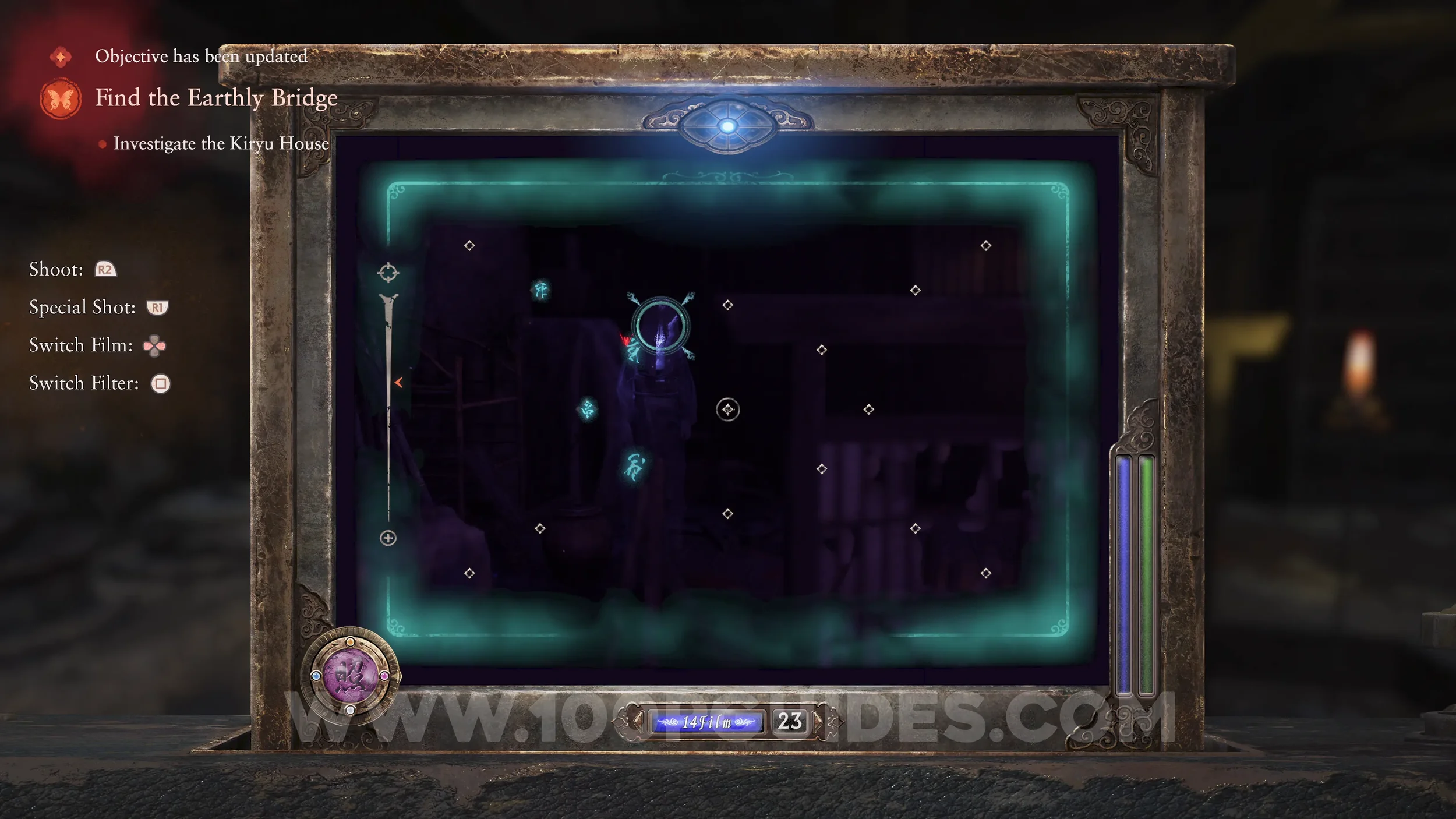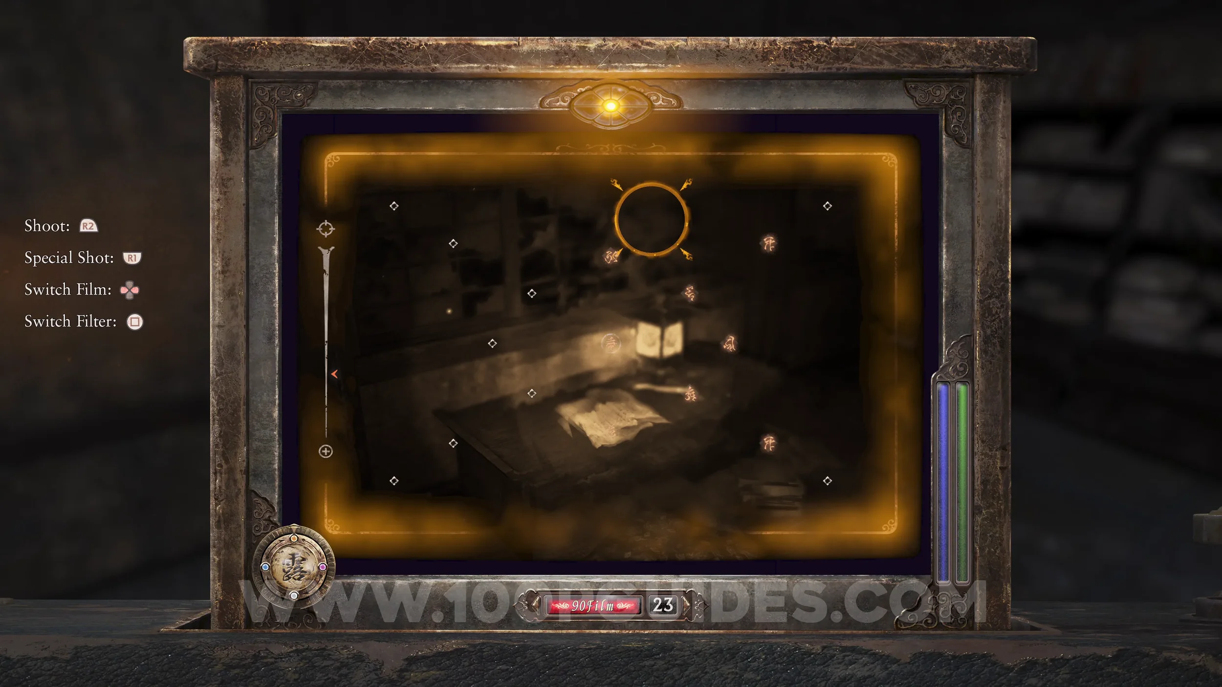 Specter #230 - 001 Girl Entering House. You will now have the camera from the start of the game, allowing you to capture the specters that appear before you normally obtain it. The first can be found as you enter the Osaka House while walking down the hill toward it.