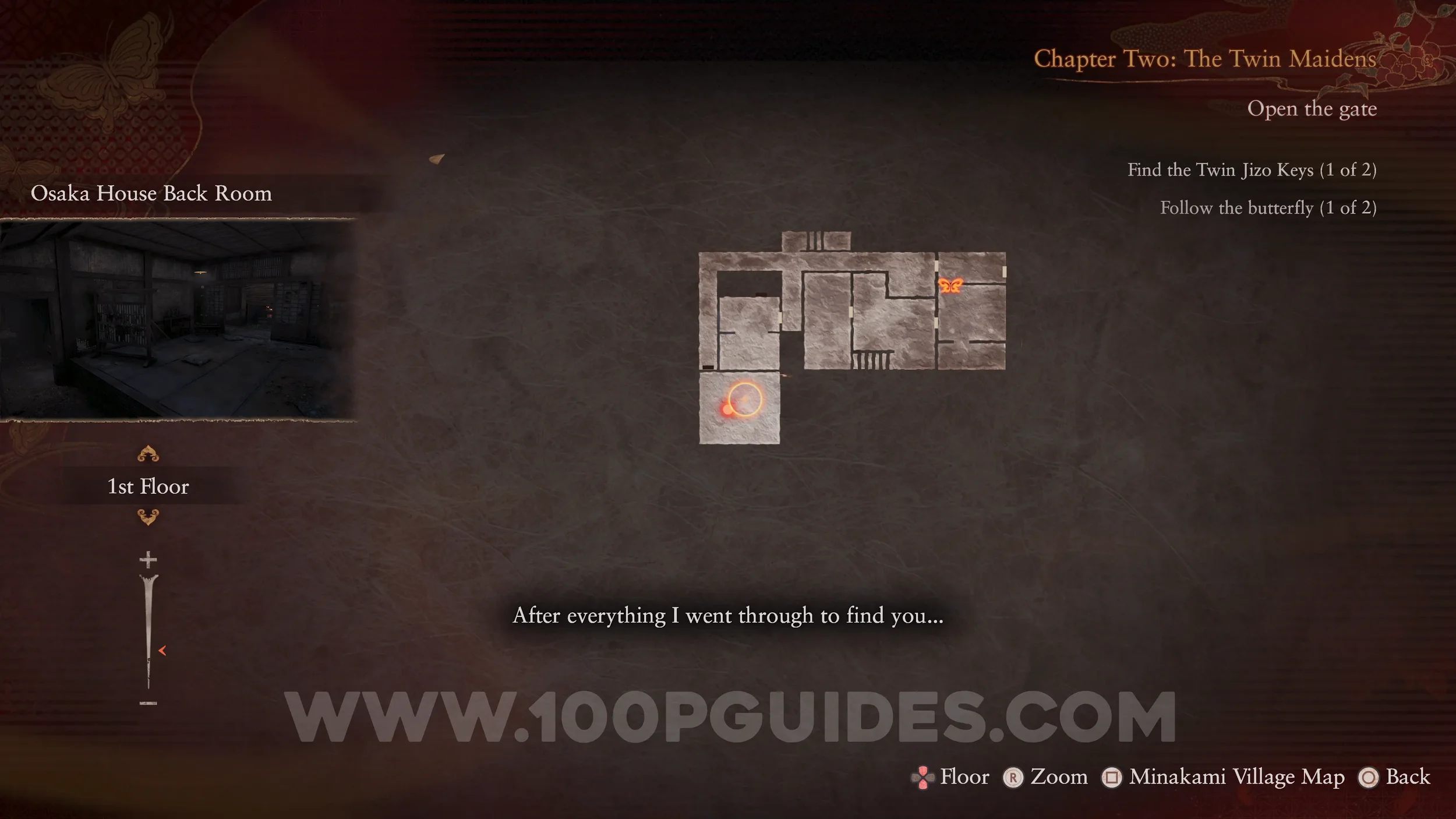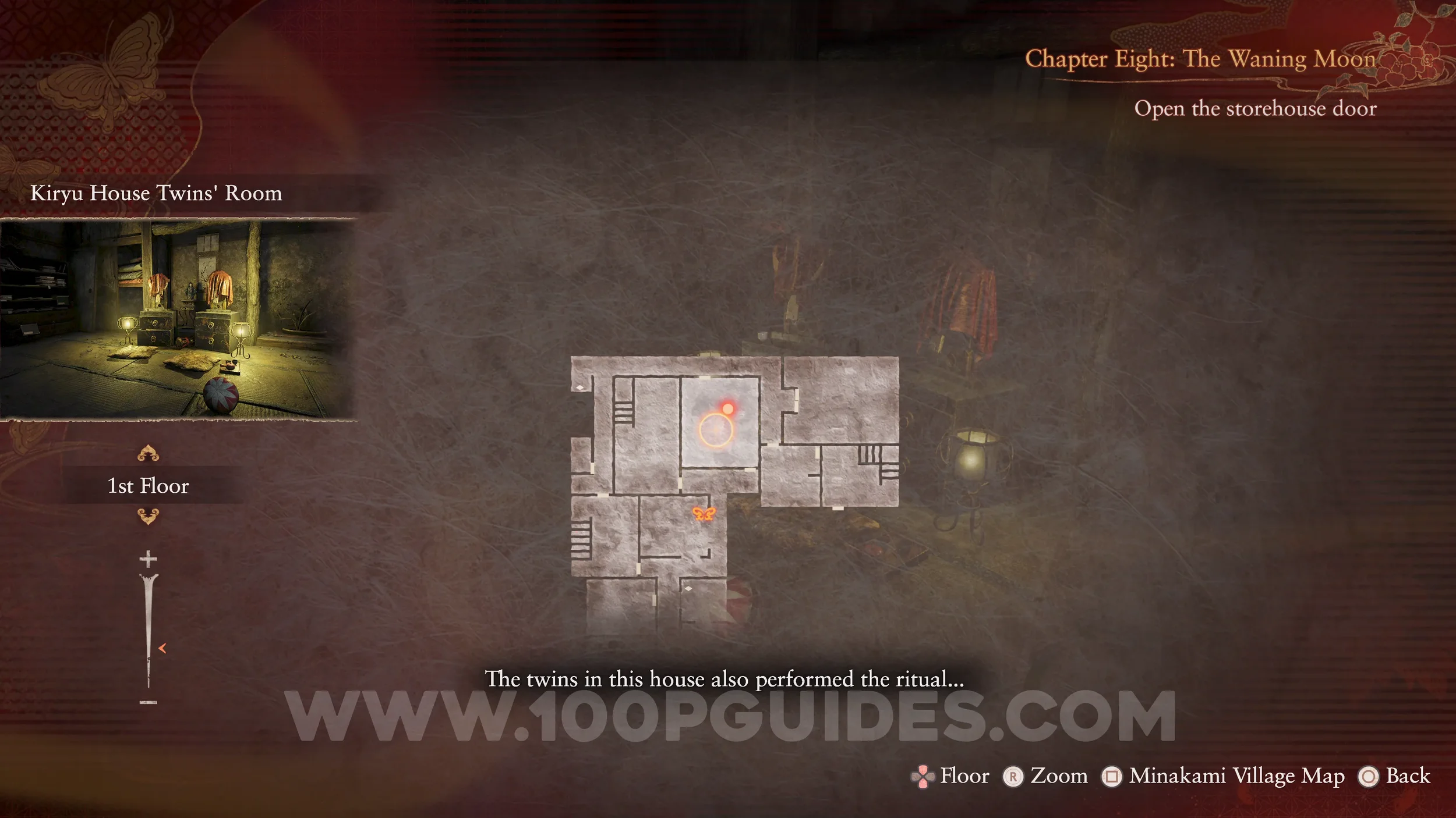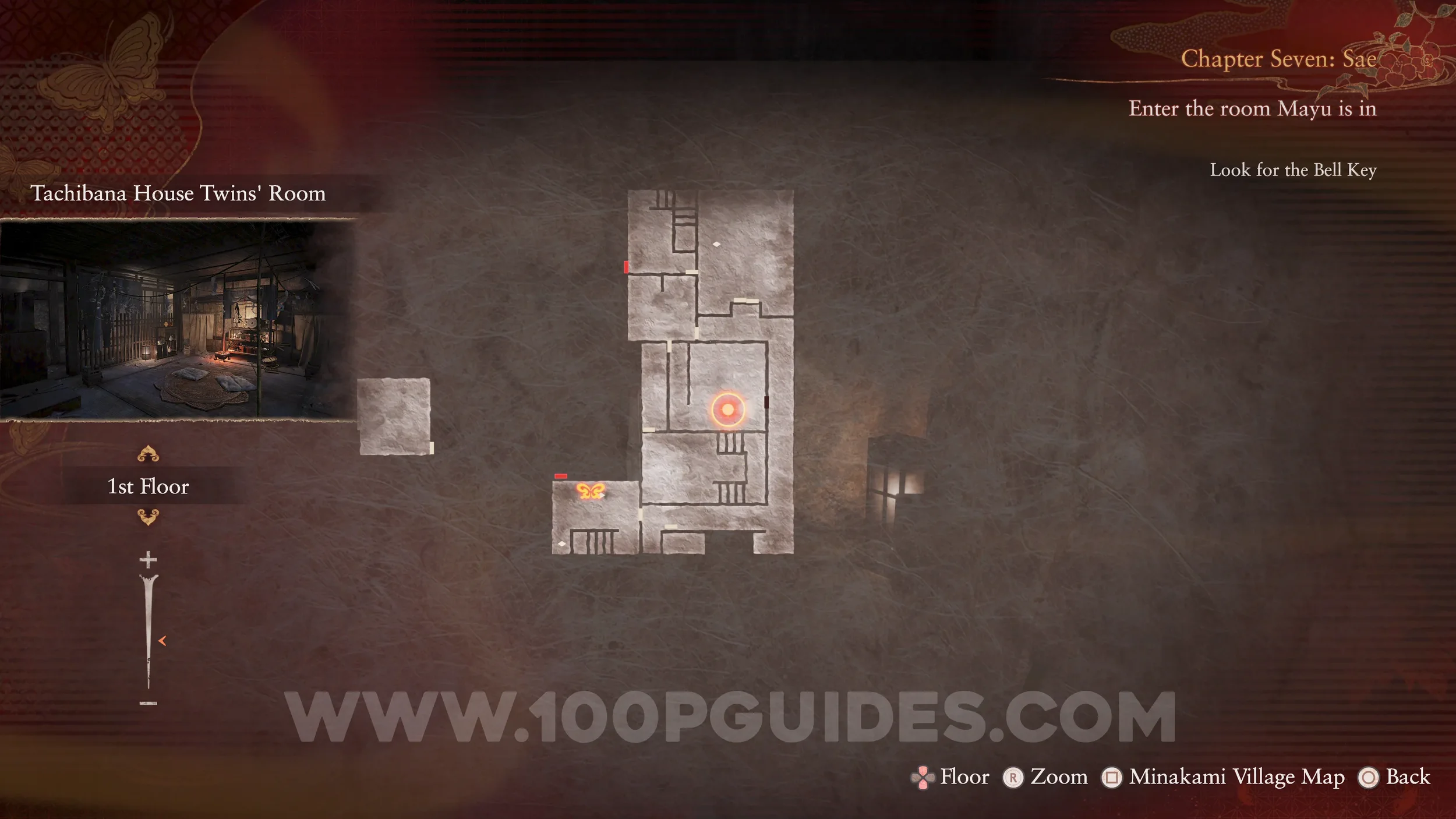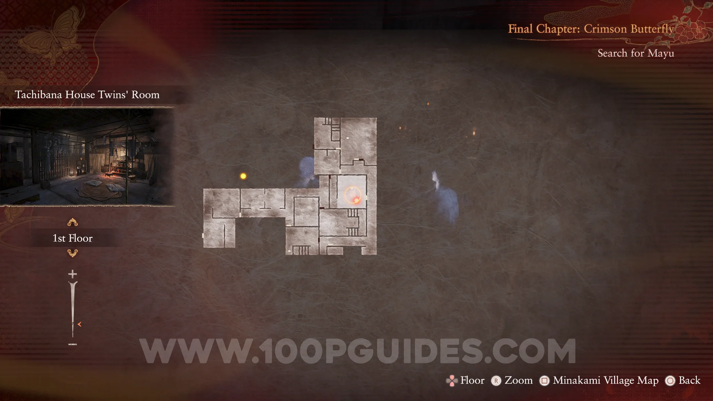 Specter #196 - 224 Past Itsuki, Specter #197 - 225 Past Mutsuki, Specter #198 - 226 Past Chitose and Specter #199 - 227 Past Tachibana Clan. Return to the Tachibana House and go to the Twins’ Room. Take a photo of the three clan members here.