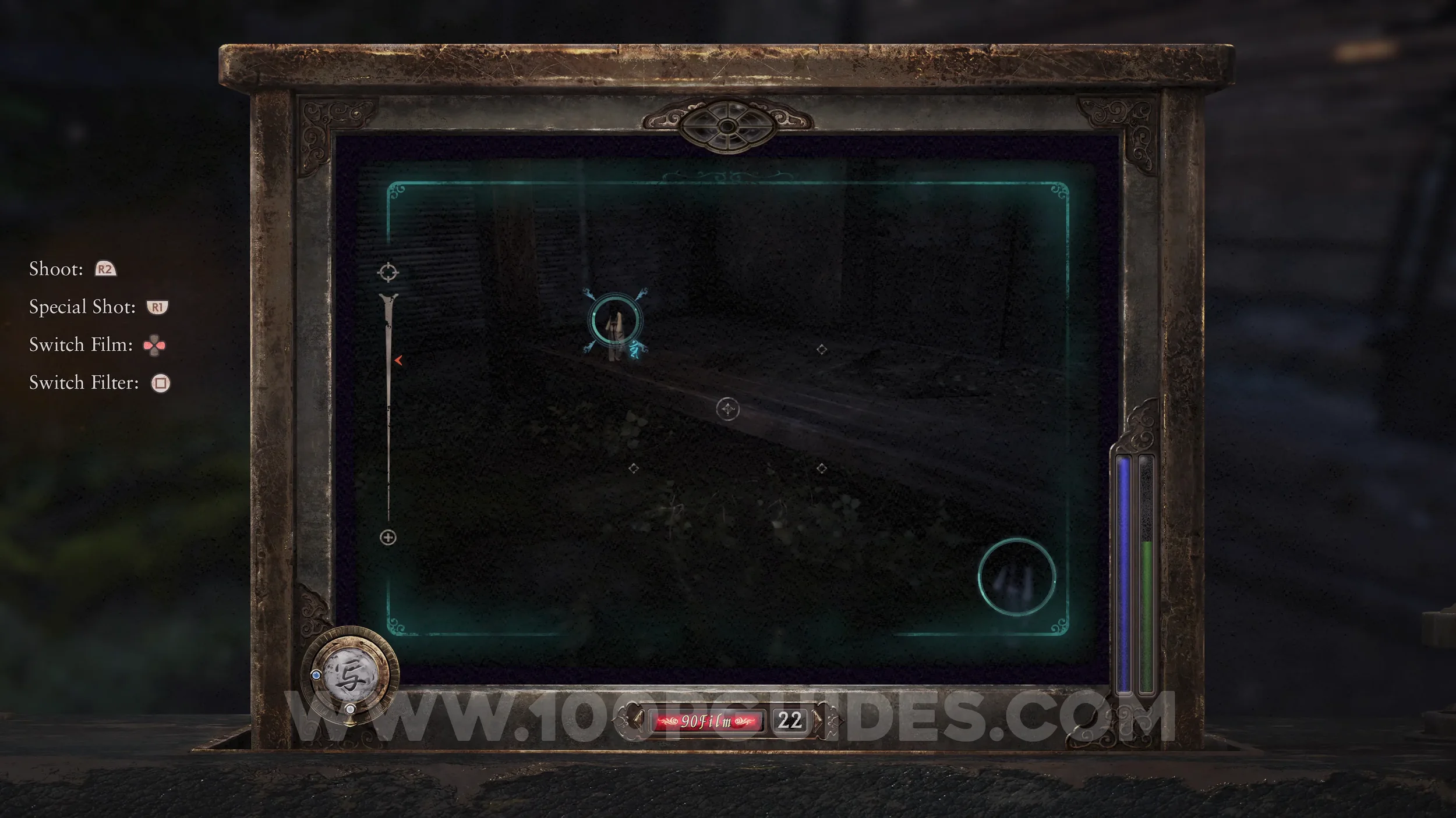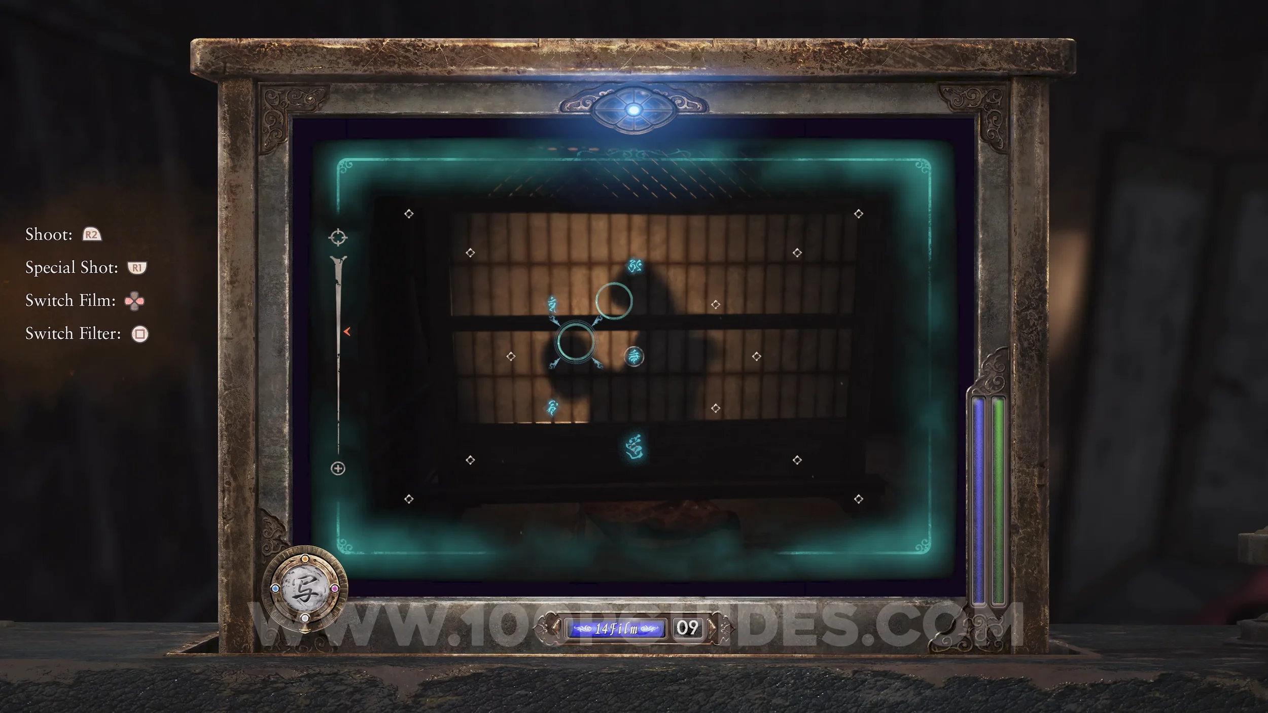 Film Reel #9 (9) and Specter #253 - 259 Mayu Gazing at Pond. Next, go to the small island to the right of the large bridge that leads to the Kurosawa House. Pick up the Film Reel and then take a photo of Mayu.