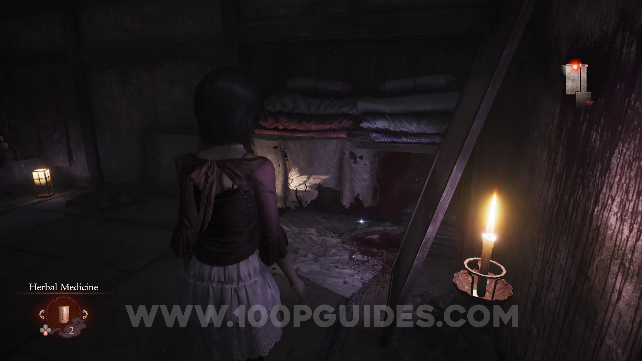 Revenant #38 - 039 Woman Crying in Storehouse and Document #120 - Blood-splattered Note 2. Return to the Minakami Village Storehouse to find the revenant in the doorway. She will drop the note.