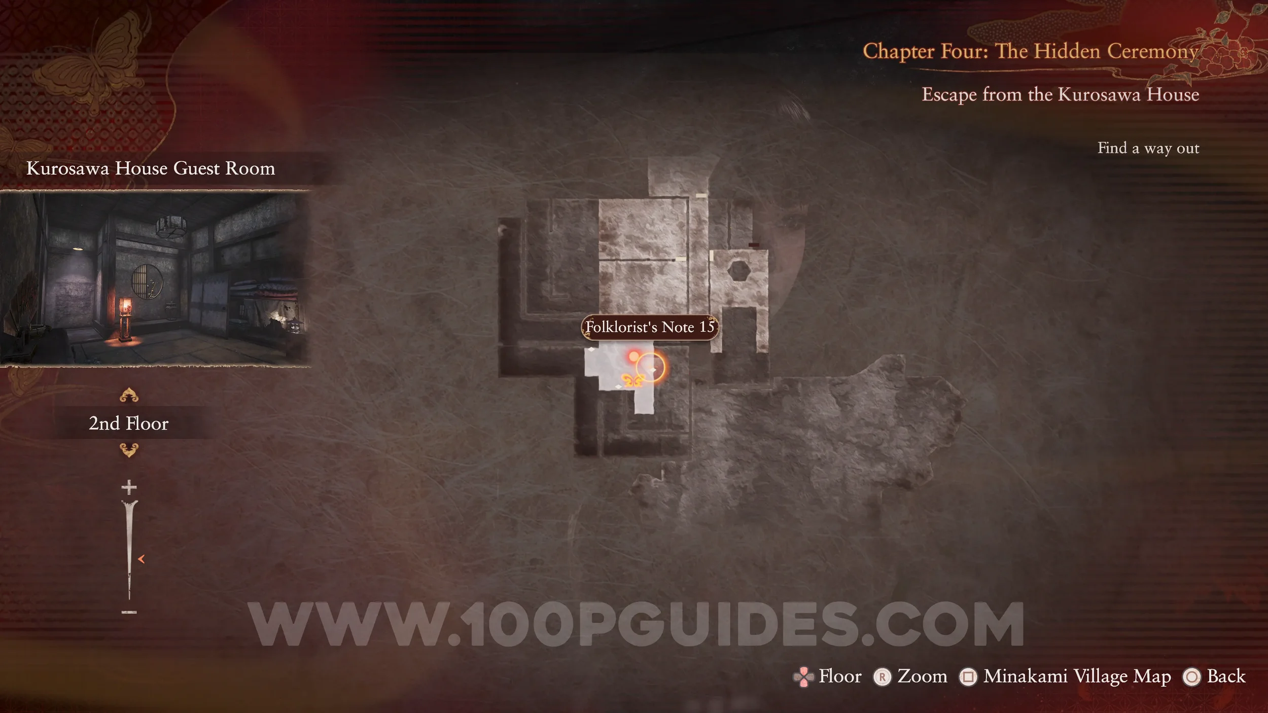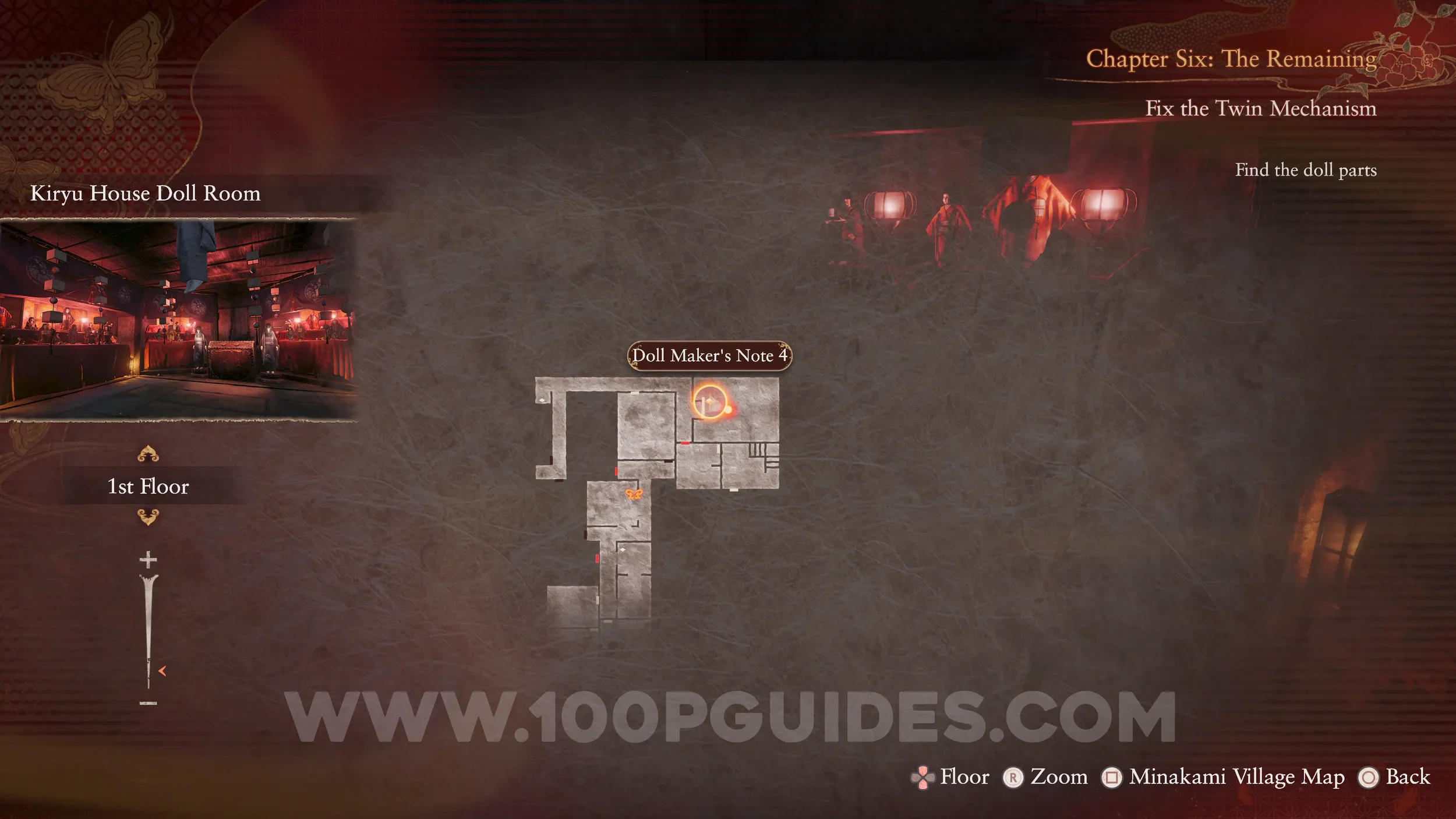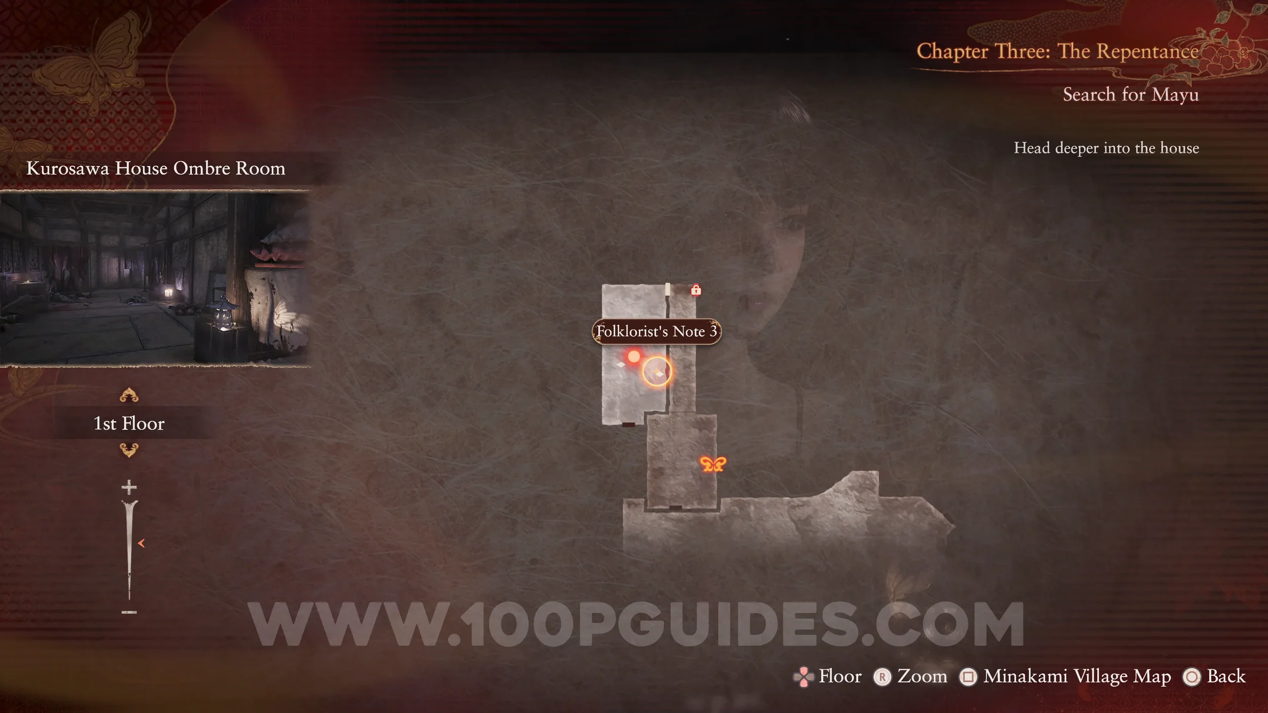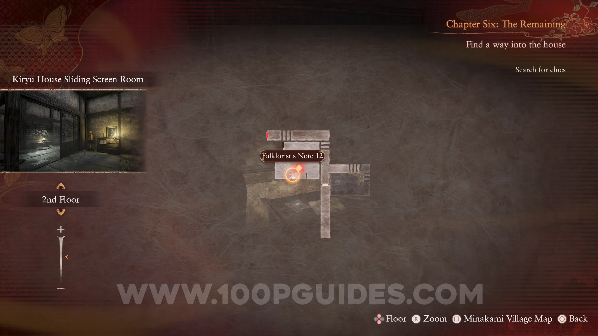Document #12 - Folklorist’s Note 1. Enter the Kiryu House near the save point and go up to the top floor. The collectible is on the table next to a portrait.