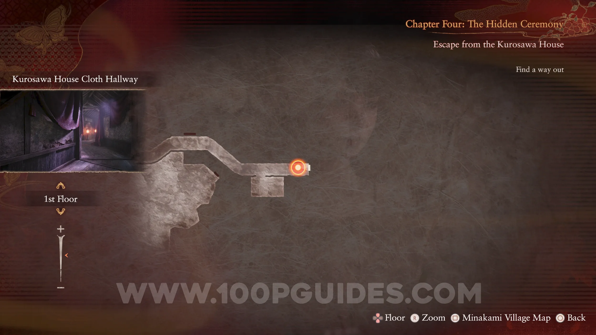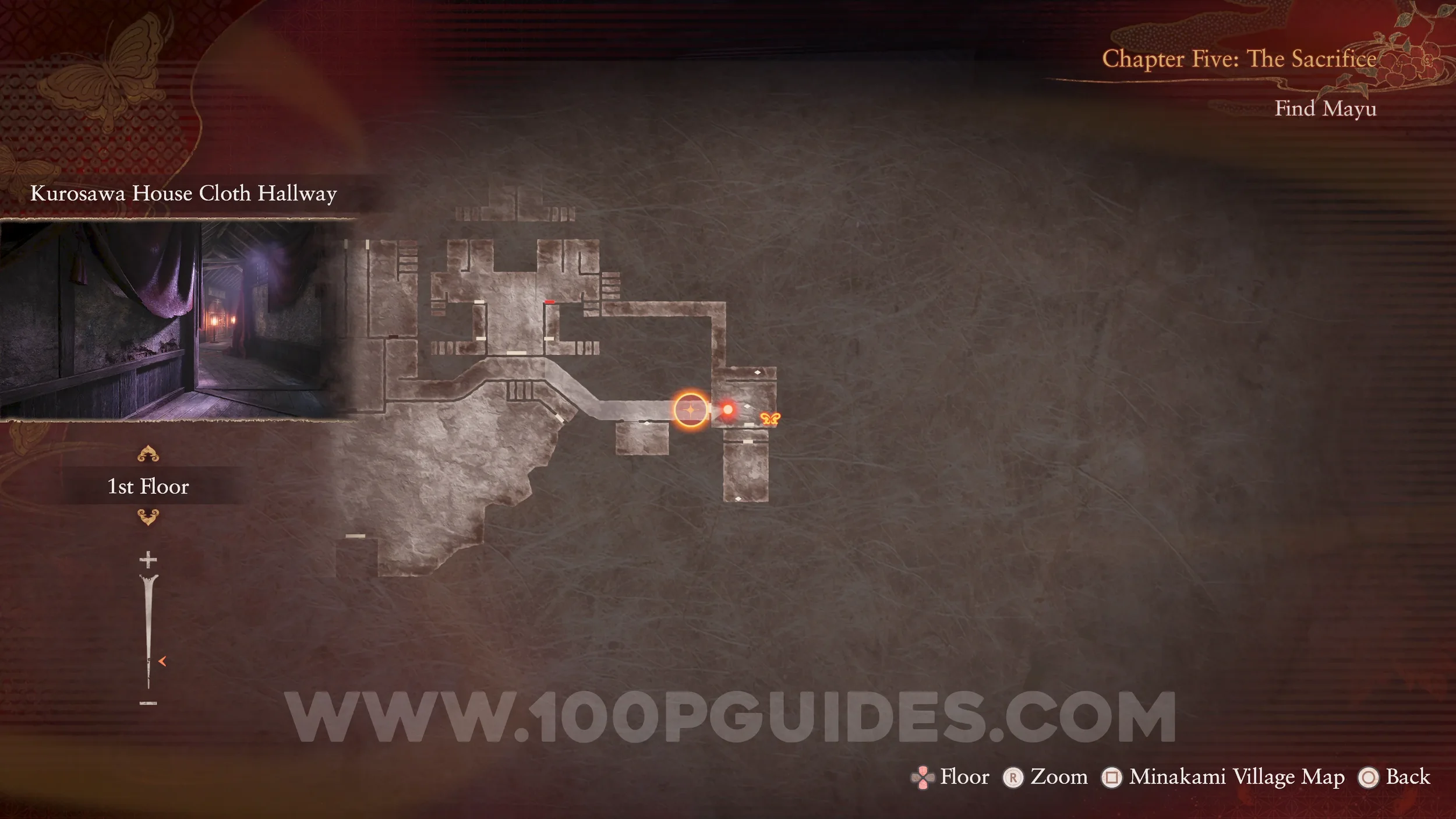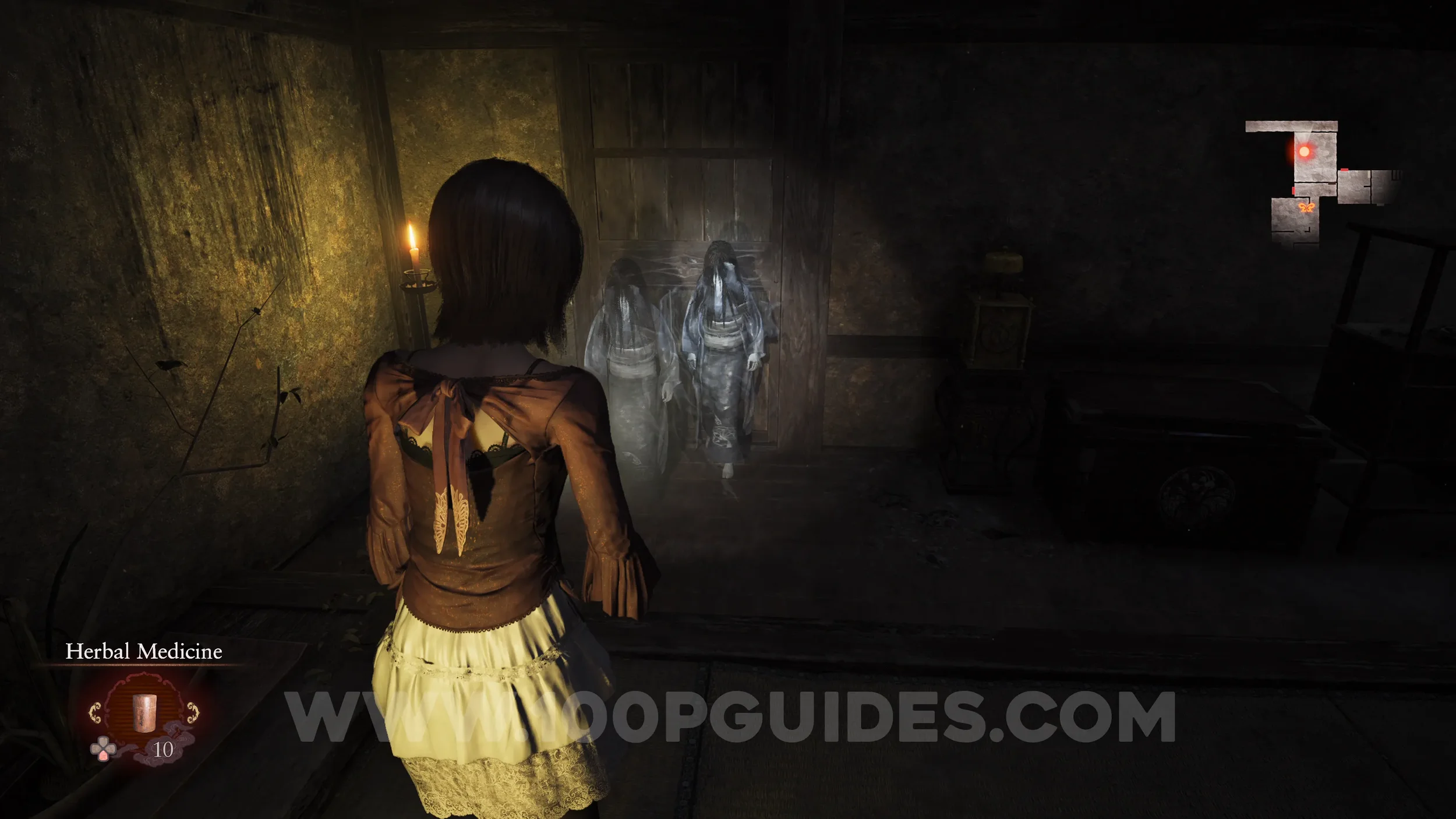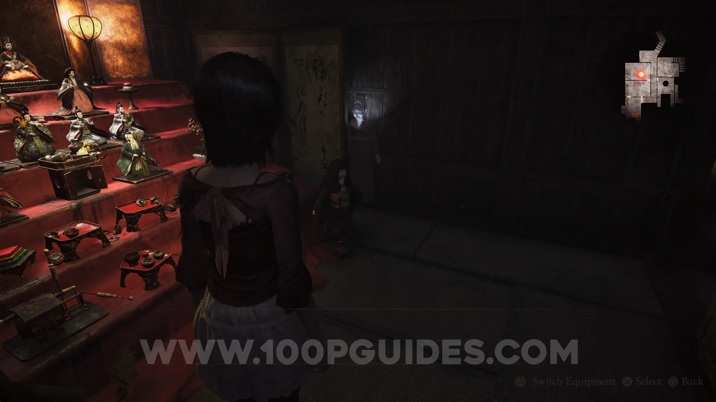 Specter #218 - 142 Mayu Heading to Connecting Corridor. Follow Mayu through the Kurosawa House until you reach the Altar Room. Look to the right here to see the specter.