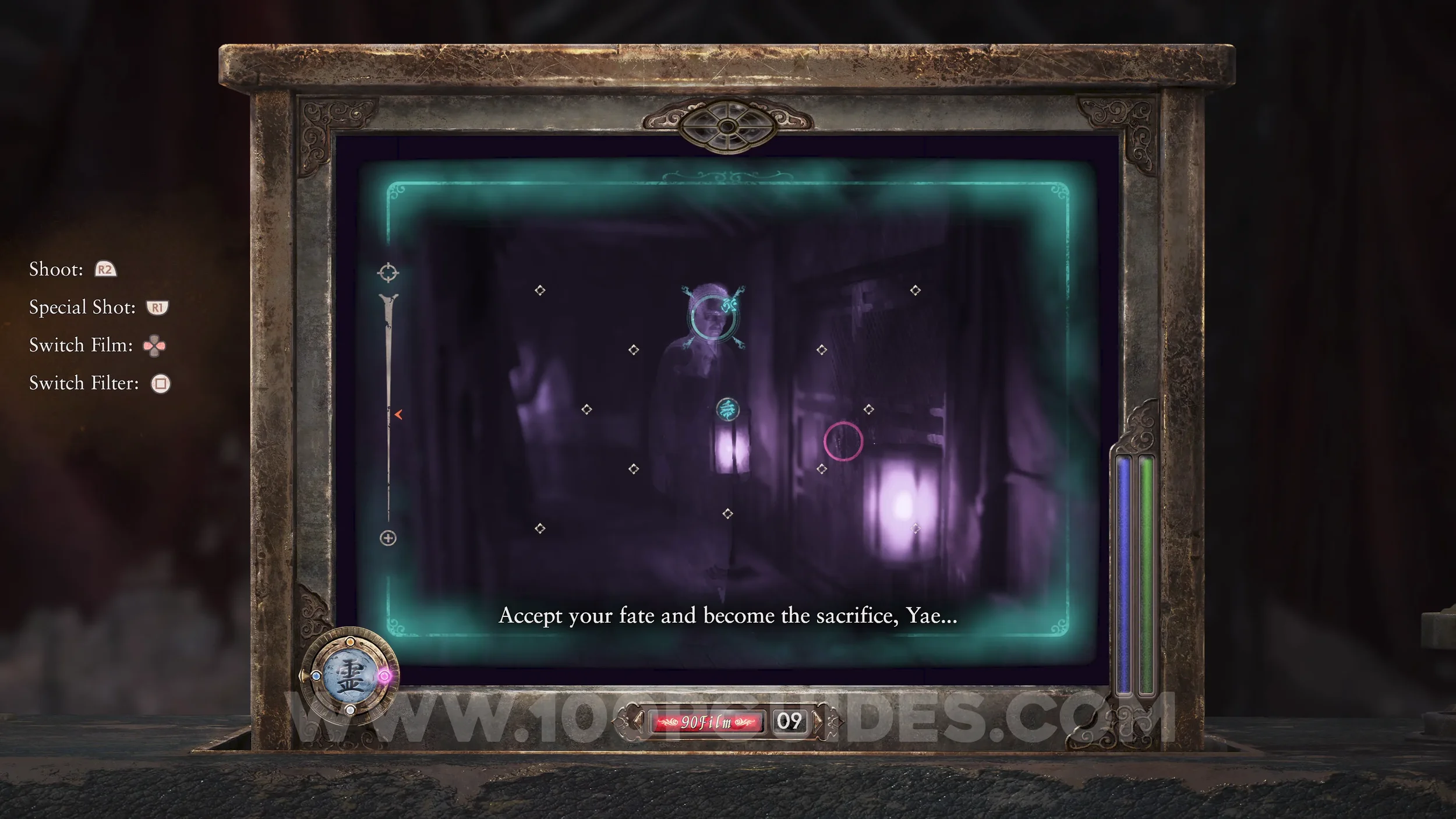 Specter #254 - 260 Mayu Watching Footage. Now take Mayu to the Projection Room in the Kiryu House and use Film Reel 9 on the projector. Then take a photo of Mayu.