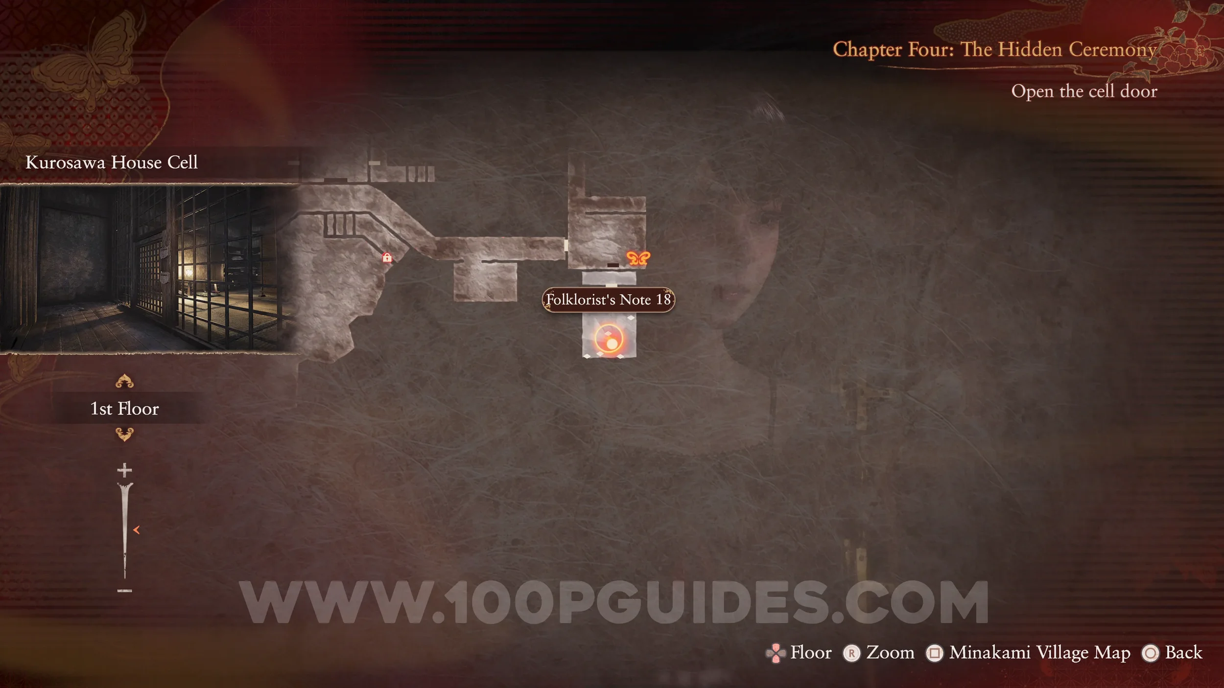 Specter #214 - 138 Prisoner - Document #106 - Folklorist’s Note 20. Before heading through the front door of the Kurosawa House, go through the smaller door on your right. Then go to the cell where you previously had to rescue Mayu. Inside, you will see the specter. He will drop the document.