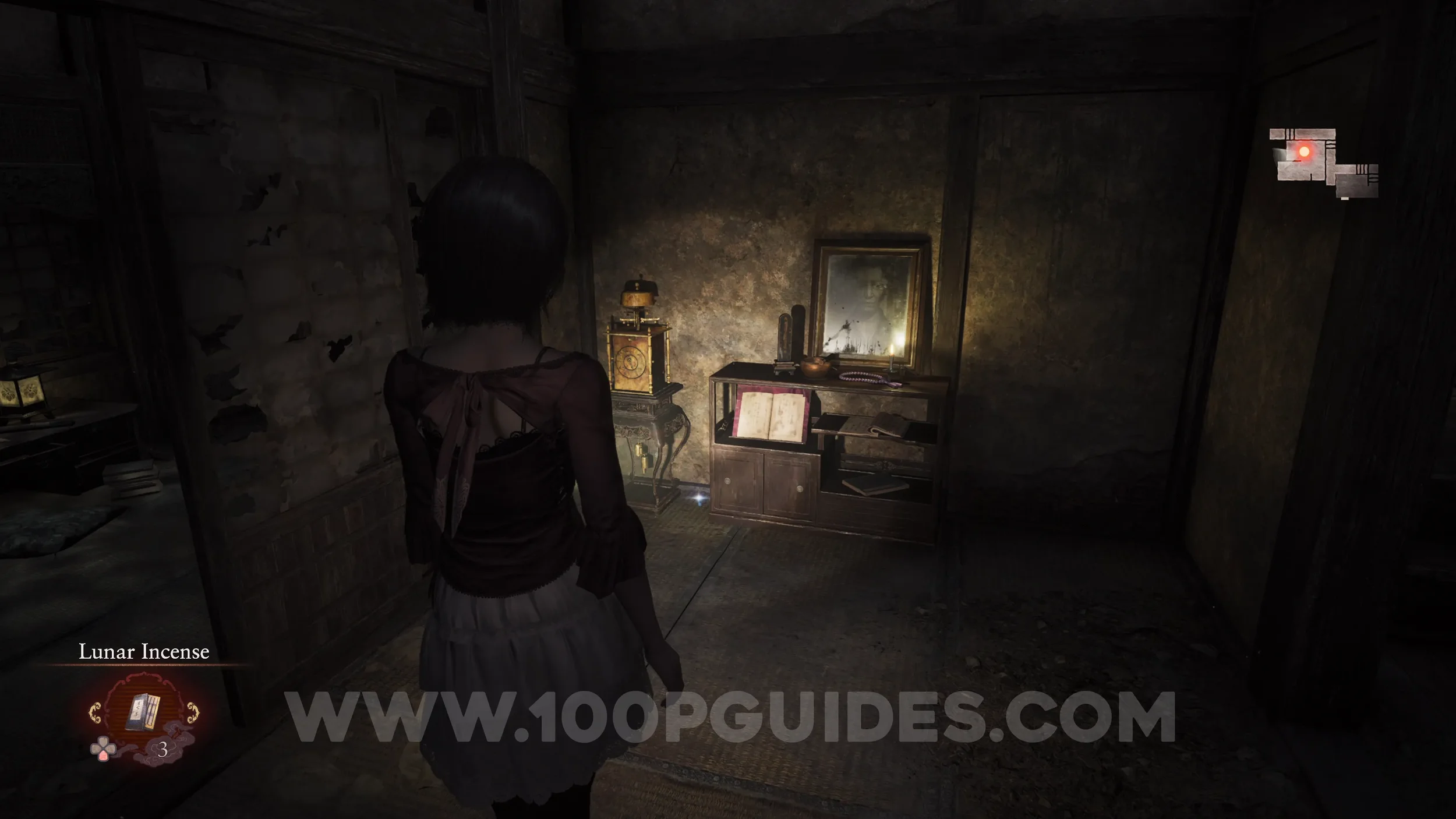 Document #3 - Woman’s Notebook 2. In the same room as the previous document. Picking up this document will cause Specter 002 to appear outside the window. However, since you do not have the camera yet, you cannot register it. It is technically possible to register it by leaving this document until after obtaining the camera, but since New Game Plus is required anyway, we will register it then as you will start with the camera.