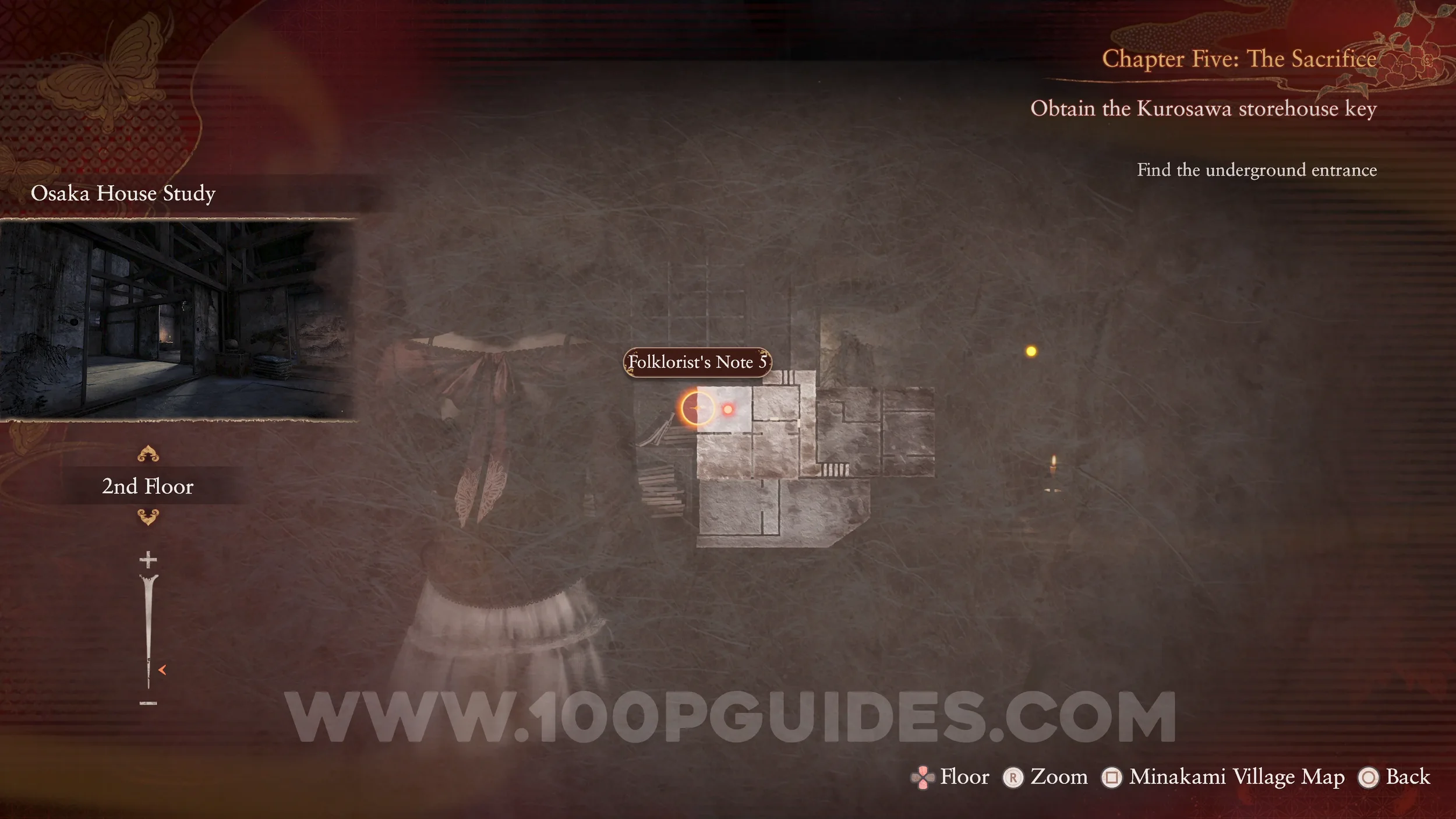 Revenant #33 - 034 Man Searching the Deep Path and Document #109 - Folklorist’s Note 11. From the start of the Final Chapter, go straight to the Osaka House Altar Room and go underground. Then head to the northern room to find the revenant. He will drop the document.