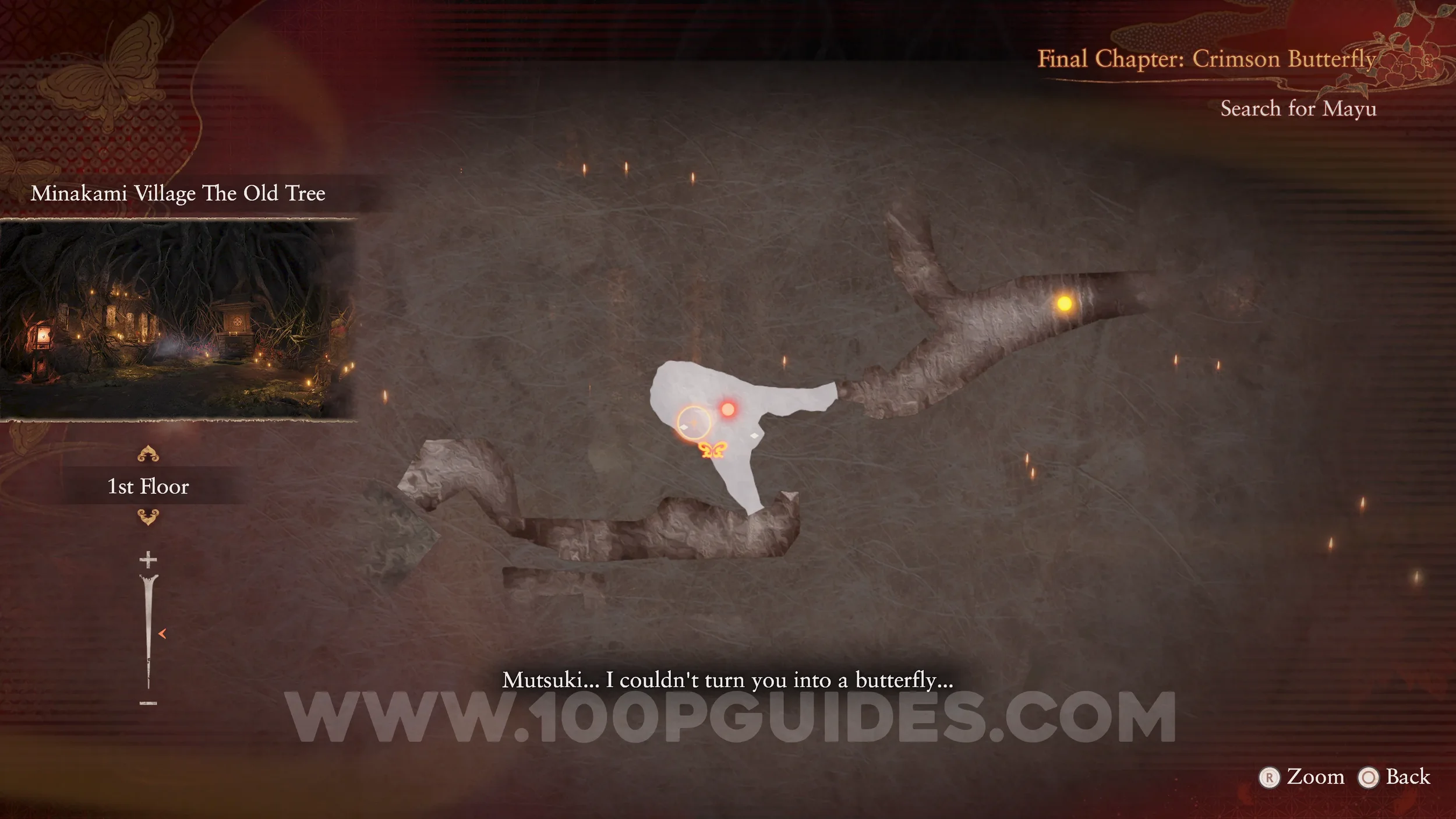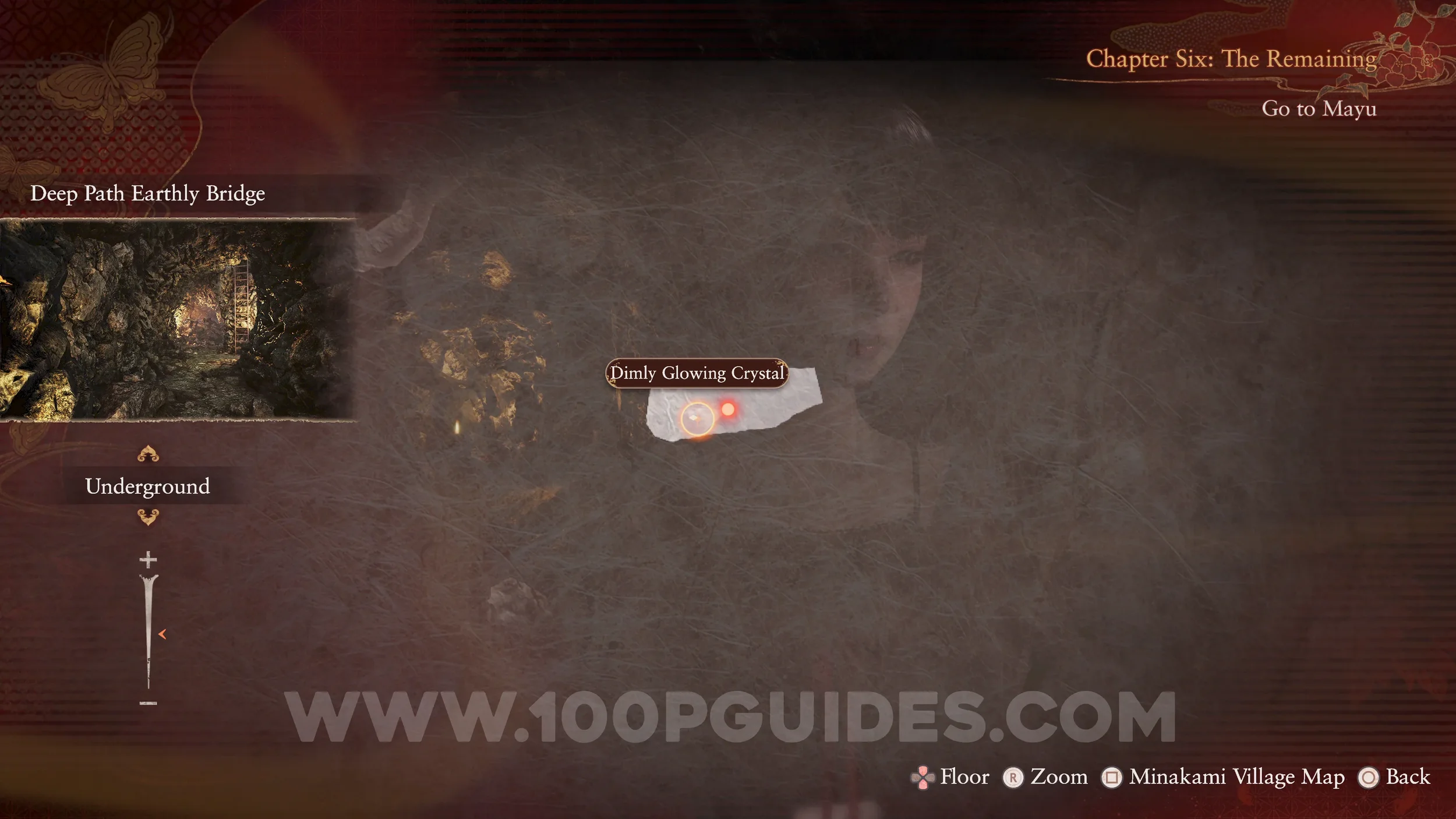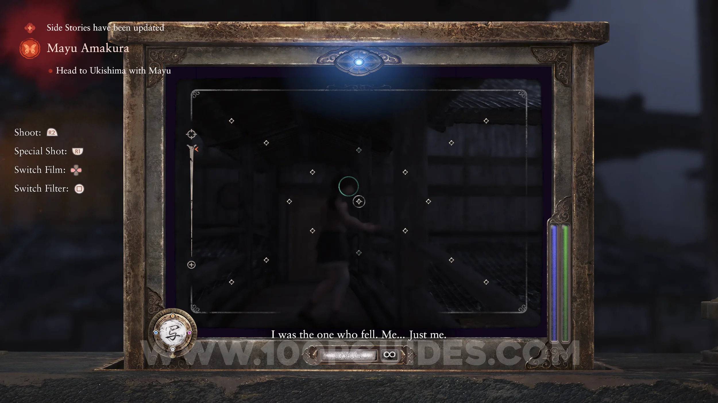 Specter #255 - 261 Dreaming Mayu and Spirit Stone #44 - Mayu’s Spirit Stone Shard (2/2) (Mayu's Sparkling Spirit Stone). Continue playing through Chapter 8 until you enter the Old Tree. Here, interact with Mayu while she is on the floor to enter her dream. Inside, take a photo of her and then interact with her again. This will end the "Mayu Amakura" side quest and give you one of the two Spirit Stones needed for the fifth ending.