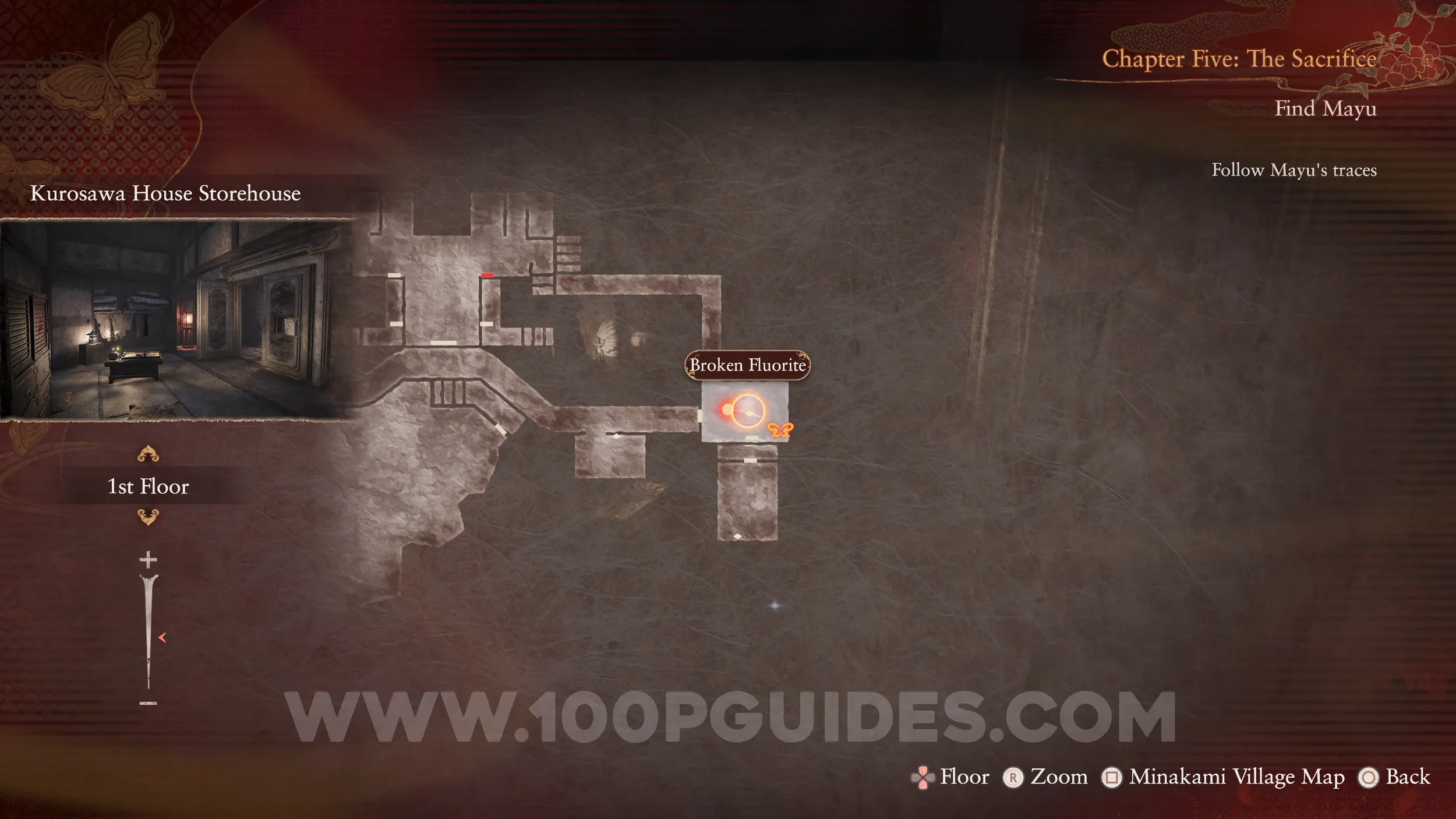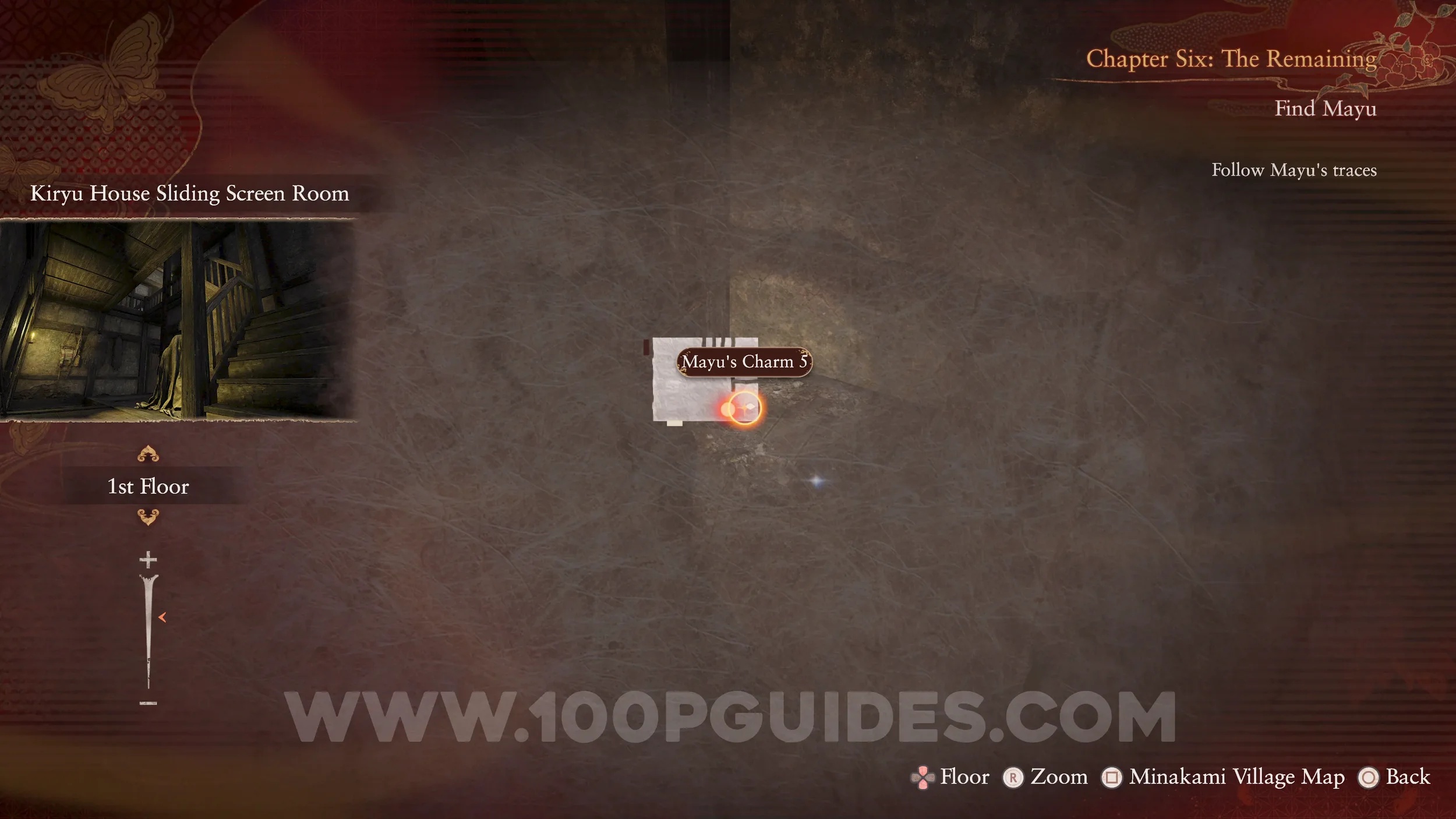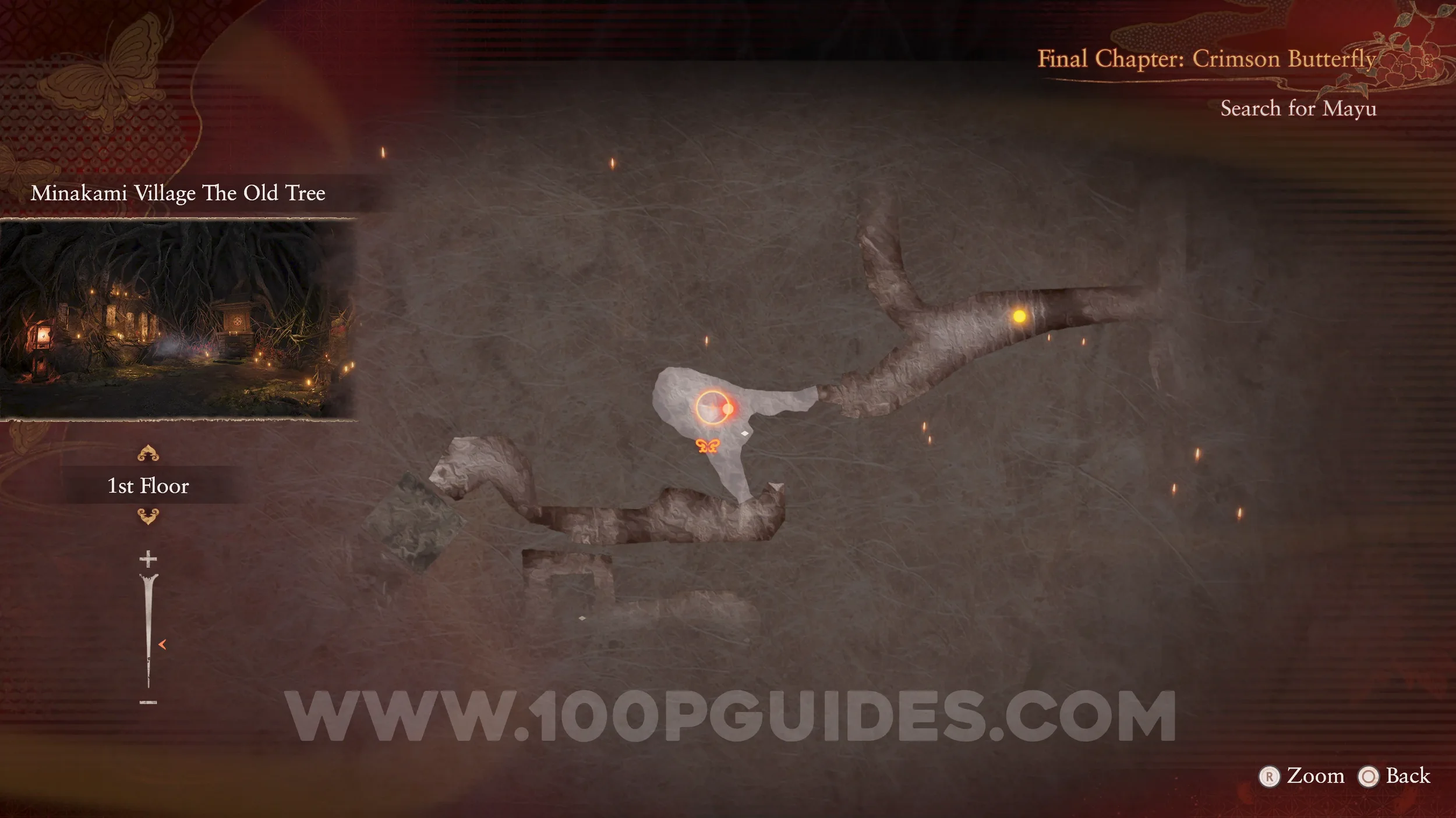 Specter #255 - 261 Dreaming Mayu and Spirit Stone #44 - Mayu’s Spirit Stone Shard (2/2) (Mayu's Sparkling Spirit Stone). Continue playing through Chapter 8 until you enter the Old Tree. Here, interact with Mayu while she is on the floor to enter her dream. Inside, take a photo of her and then interact with her again. This will end the "Mayu Amakura" side quest and give you one of the two Spirit Stones needed for the fifth ending.
