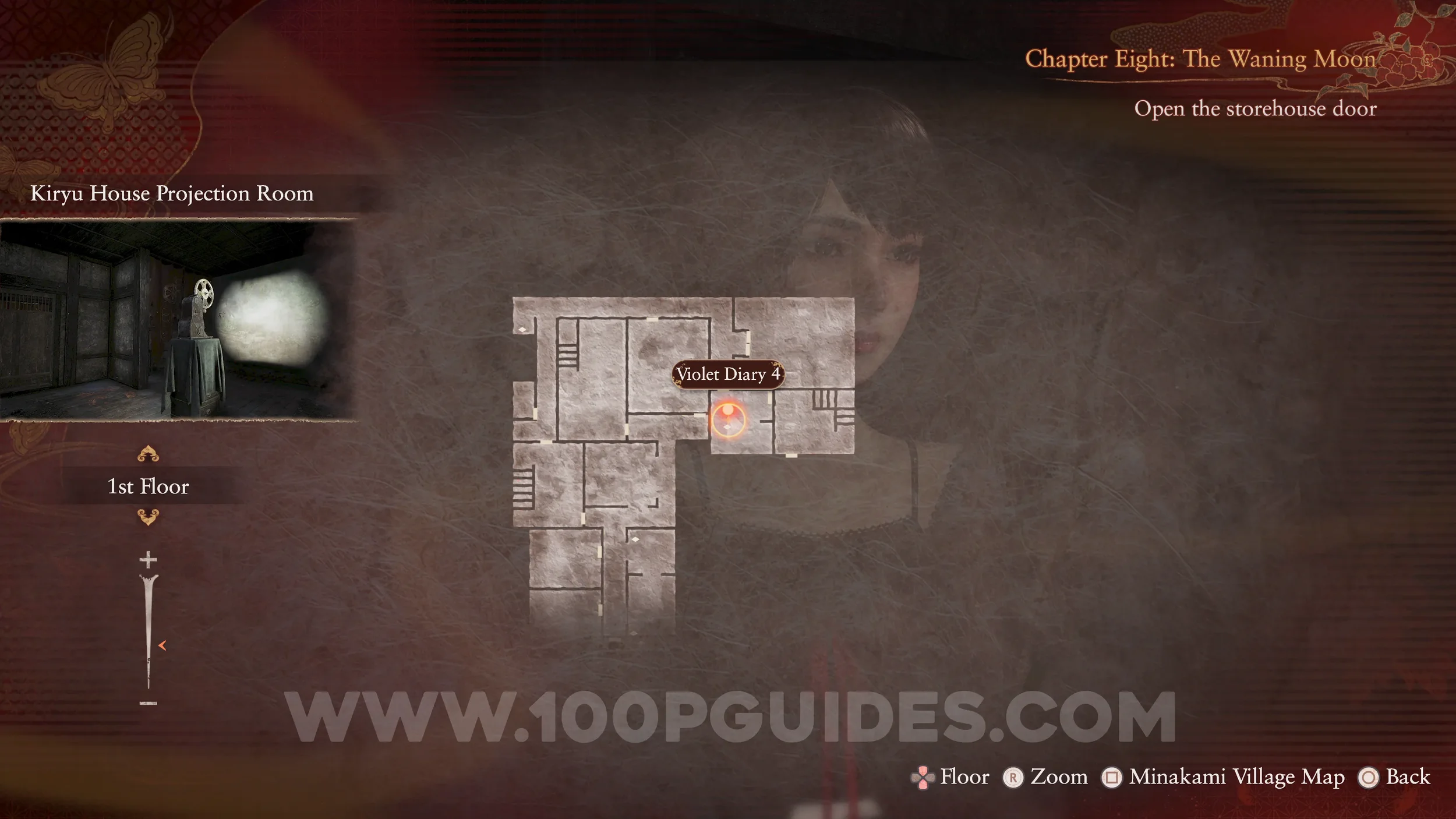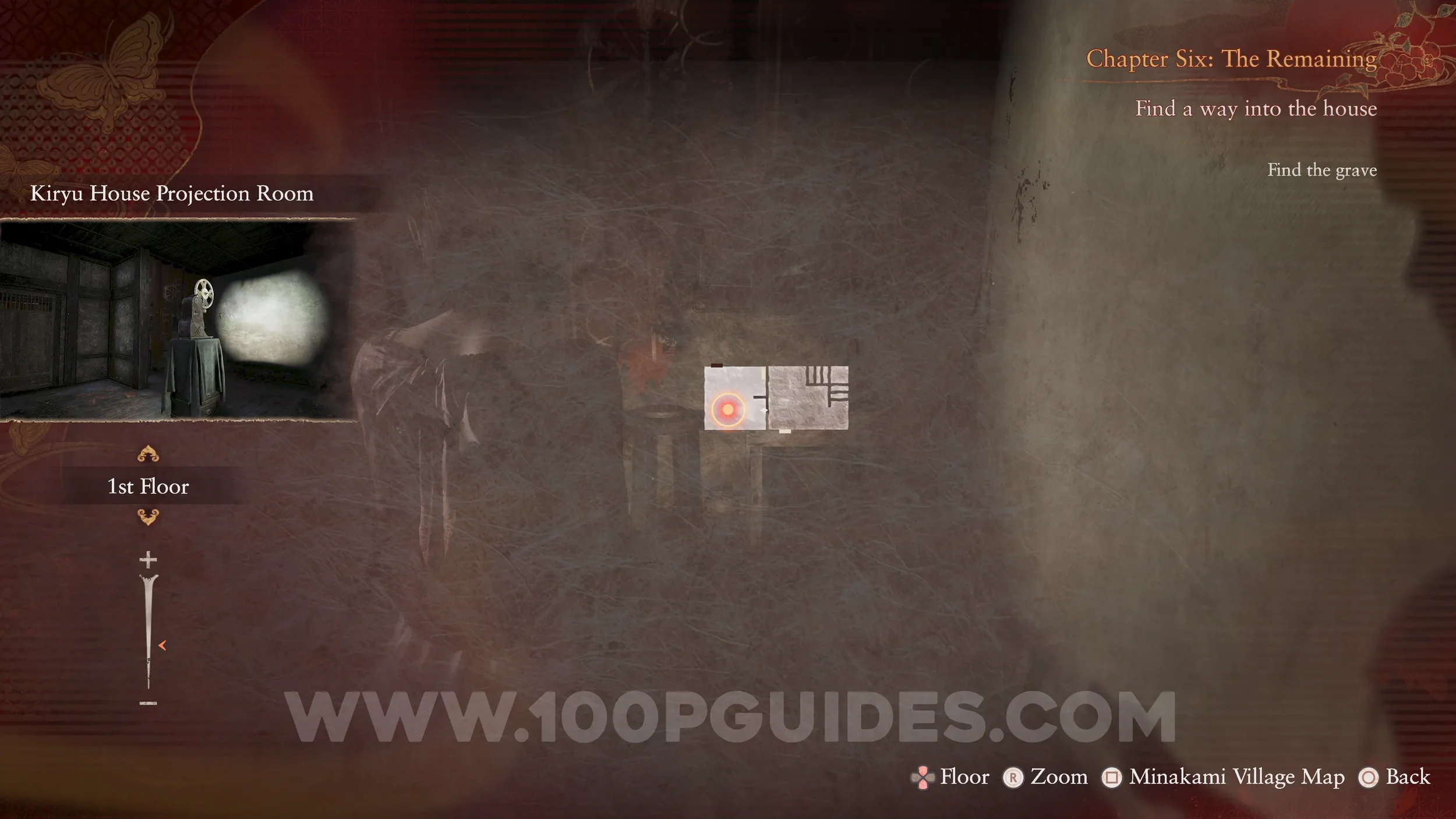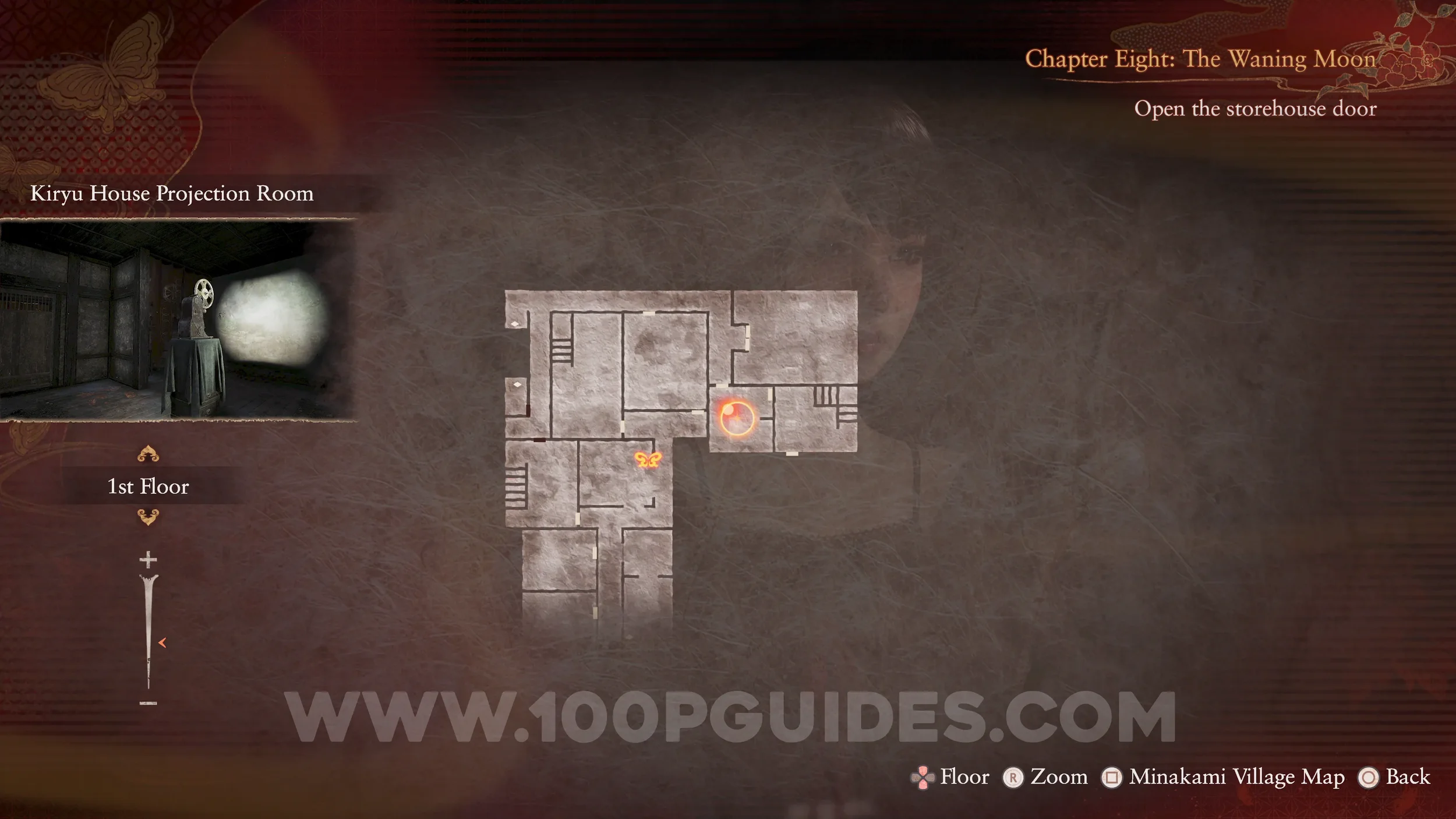 Specter #239 - 243 Yae Watching Footage, Specter #240 - 244 Sae Watching Footage, Specter #241 - 245 Ryozo Controlling Projector, Specter #242 - 246 Trio in Projection Room, Document #114 - Butterfly Diary 7 and Film Reel #8 (5). Next, go to the Projection Room in the Tachibana House to find the three specters. Make sure they are all in the shot. The document and the film reel can also be found here.