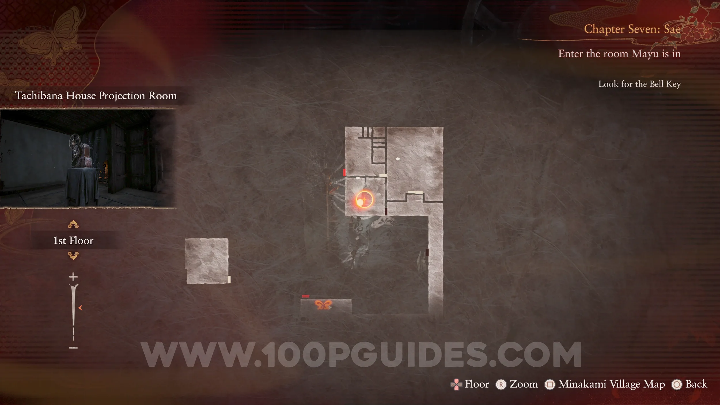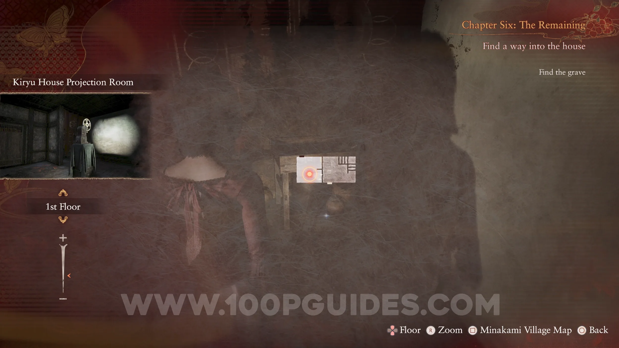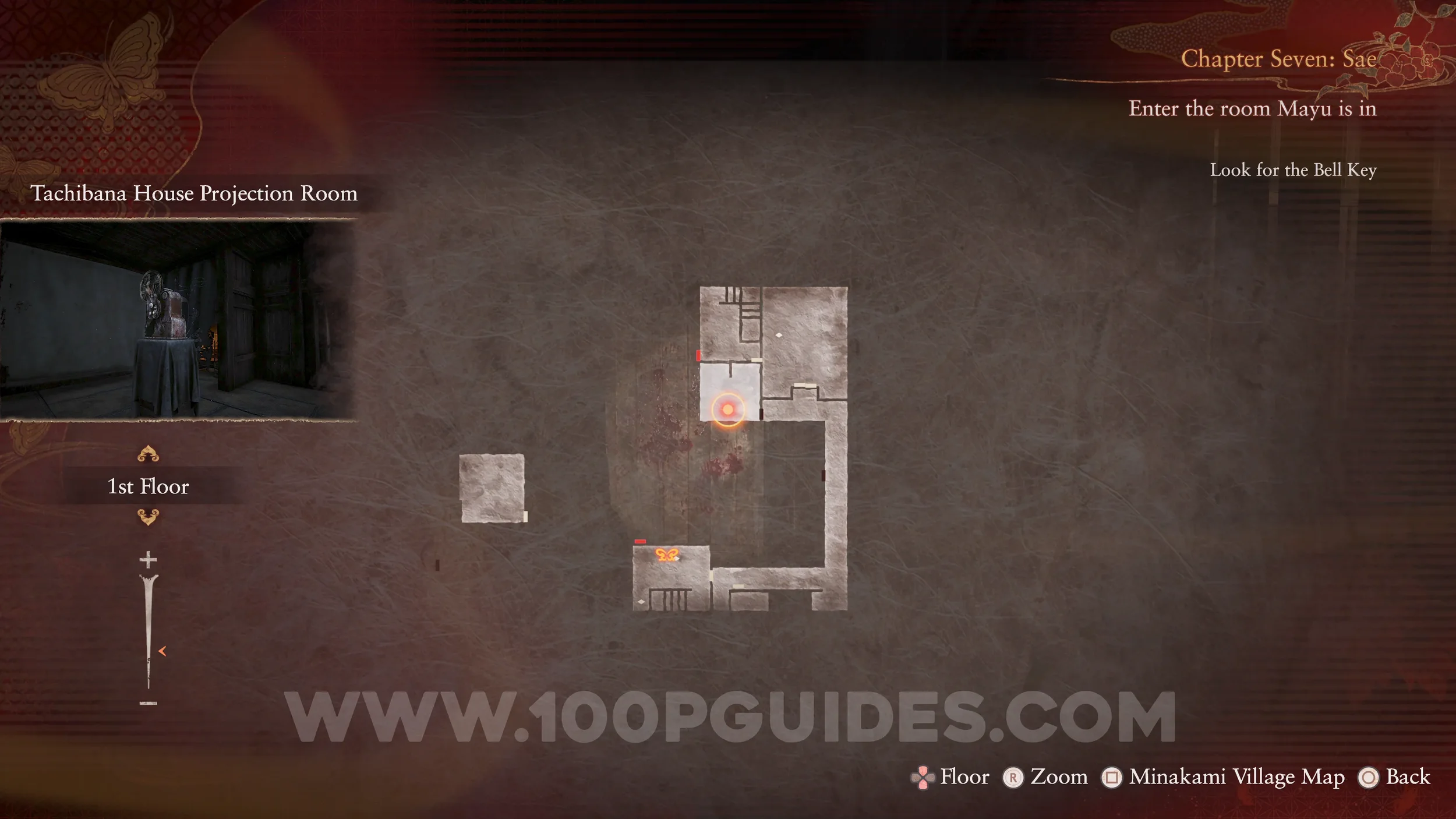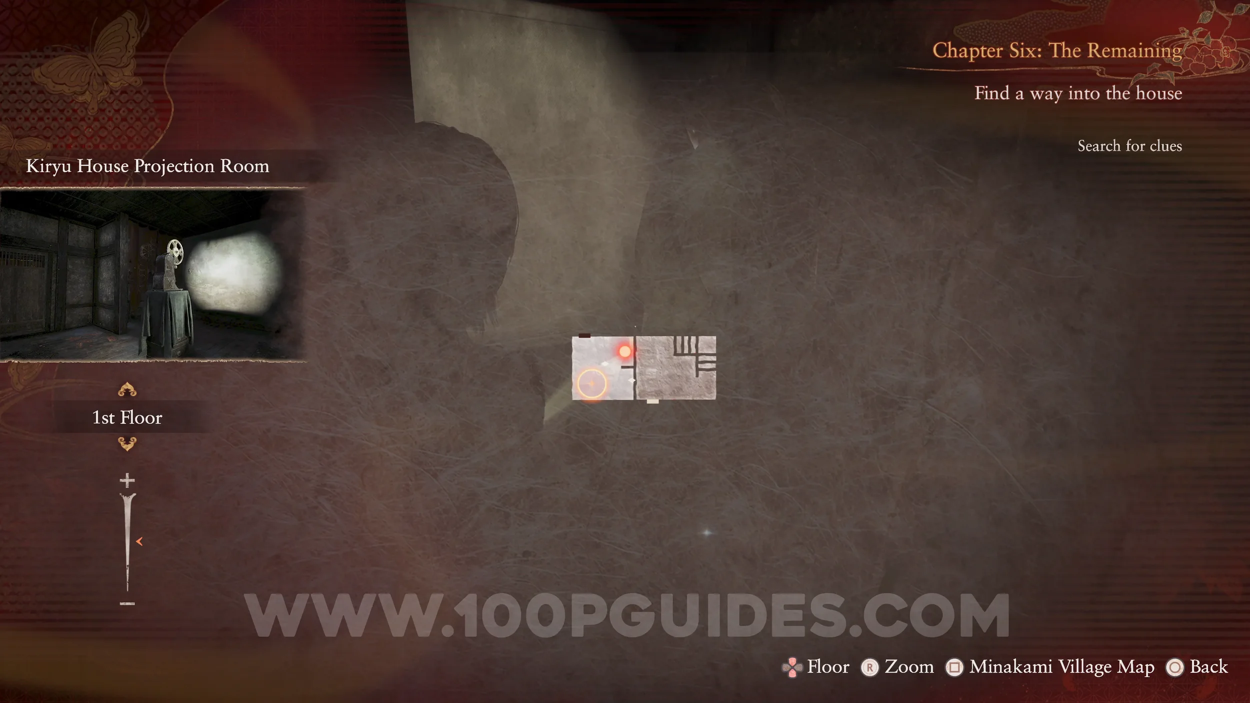 Specter #239 - 243 Yae Watching Footage, Specter #240 - 244 Sae Watching Footage, Specter #241 - 245 Ryozo Controlling Projector, Specter #242 - 246 Trio in Projection Room, Document #114 - Butterfly Diary 7 and Film Reel #8 (5). Next, go to the Projection Room in the Tachibana House to find the three specters. Make sure they are all in the shot. The document and the film reel can also be found here.