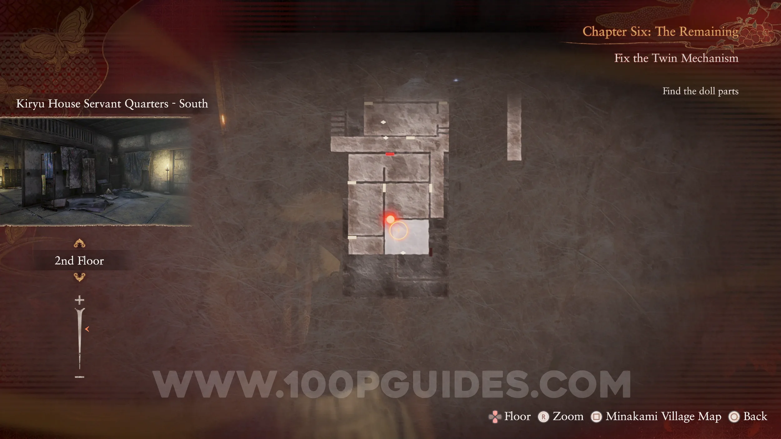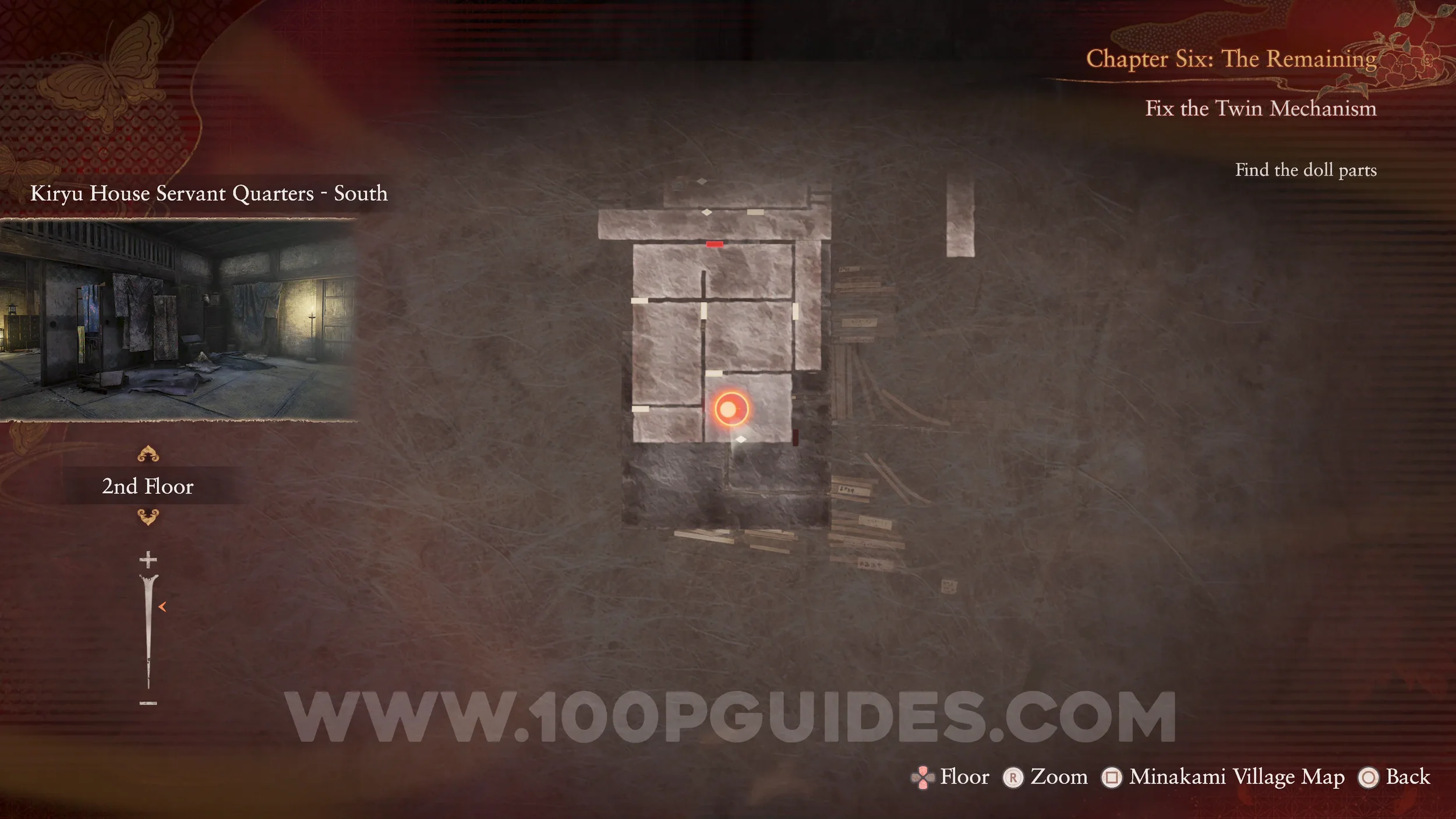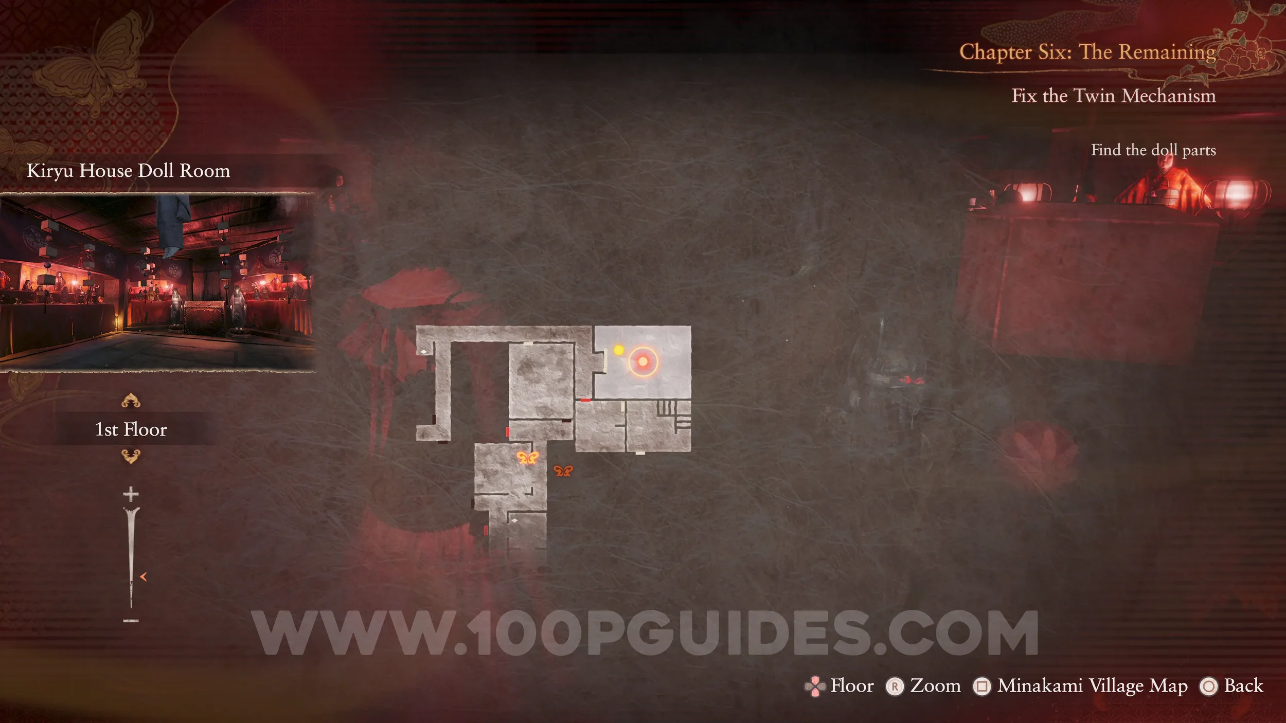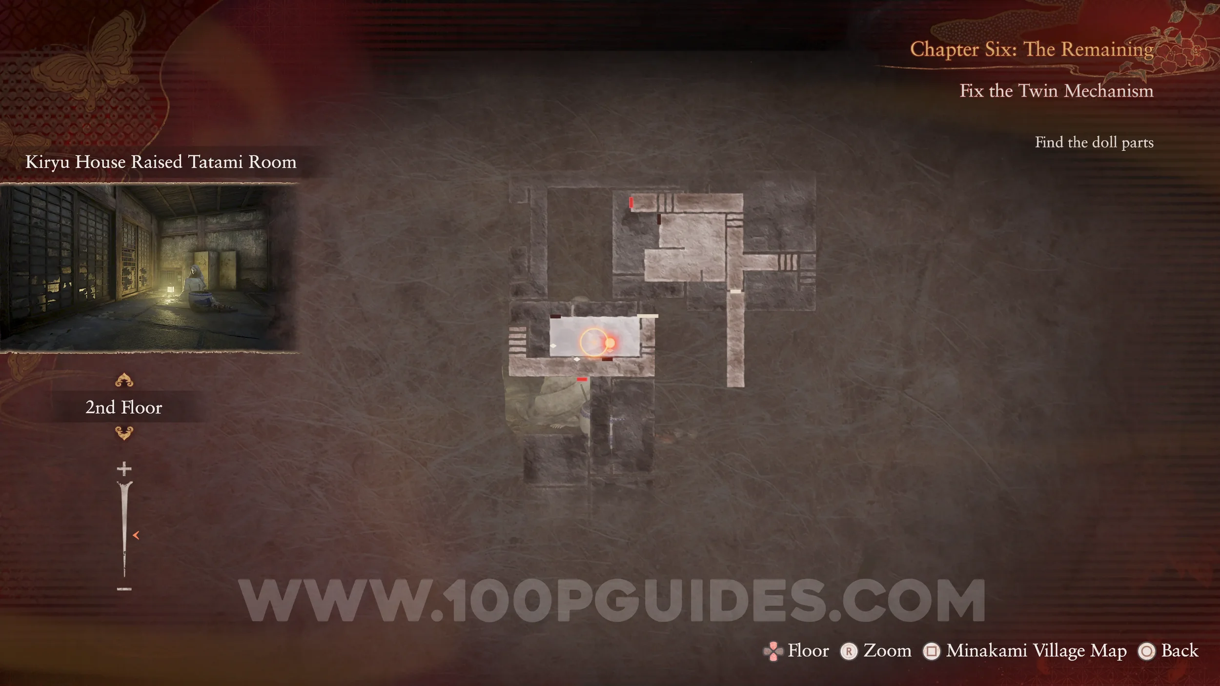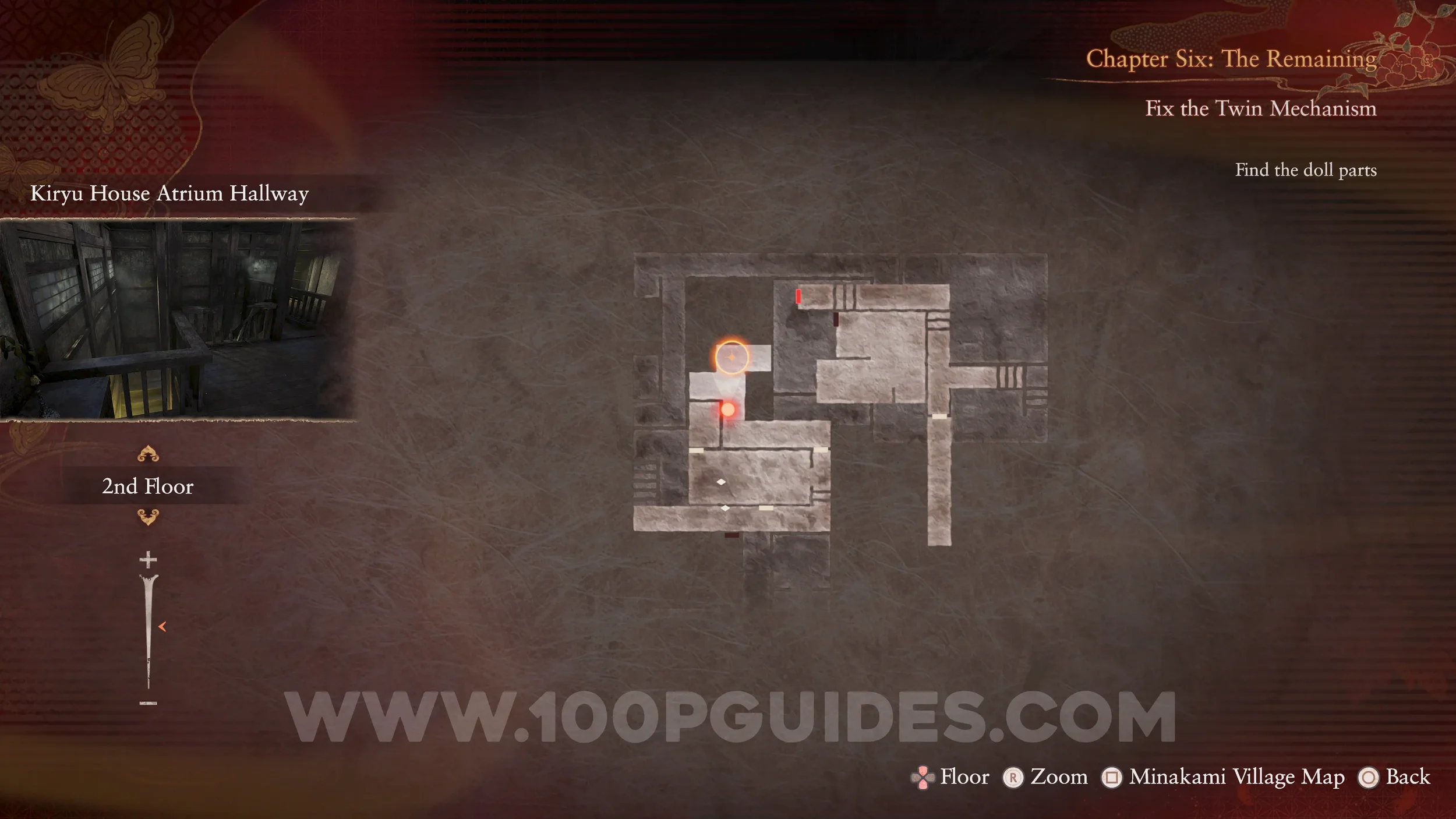 Twin Dolls #6 (24). Now go under the temple and exit on the other side. Head up the stairs and enter the upper floor. Cross through the interior and go down the stairs. At the bottom, turn right to find the two dolls between the wooden screens.
