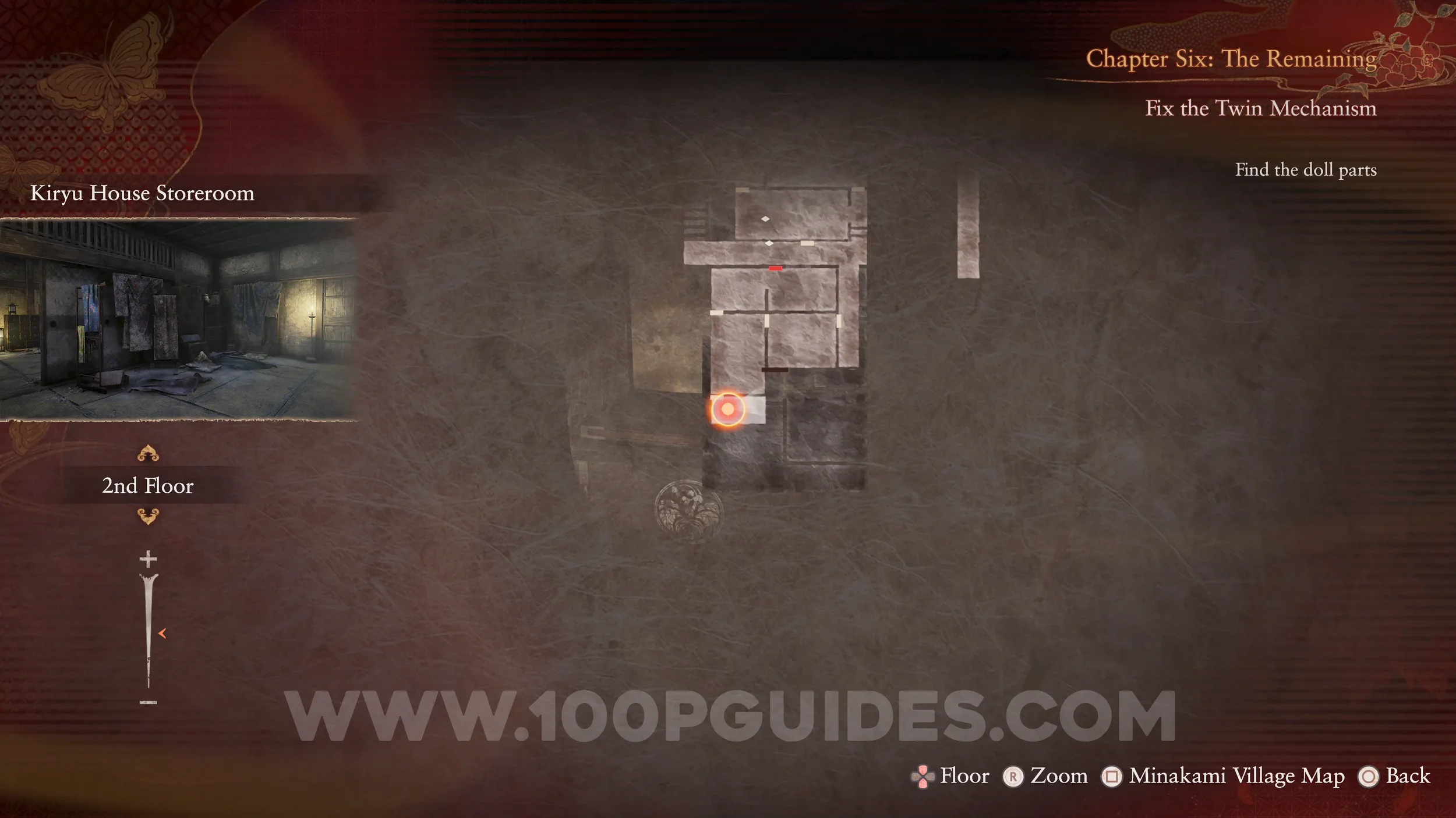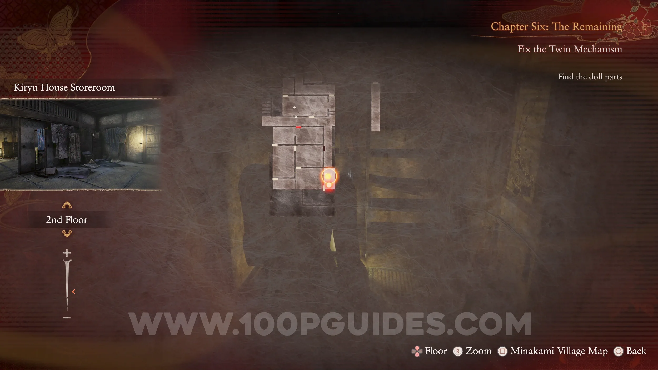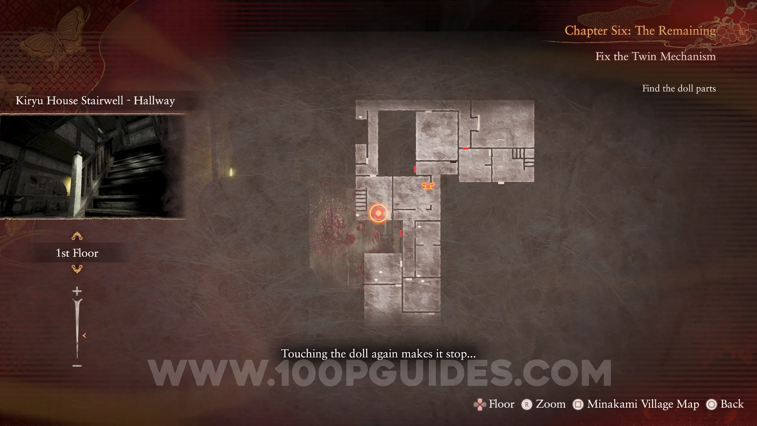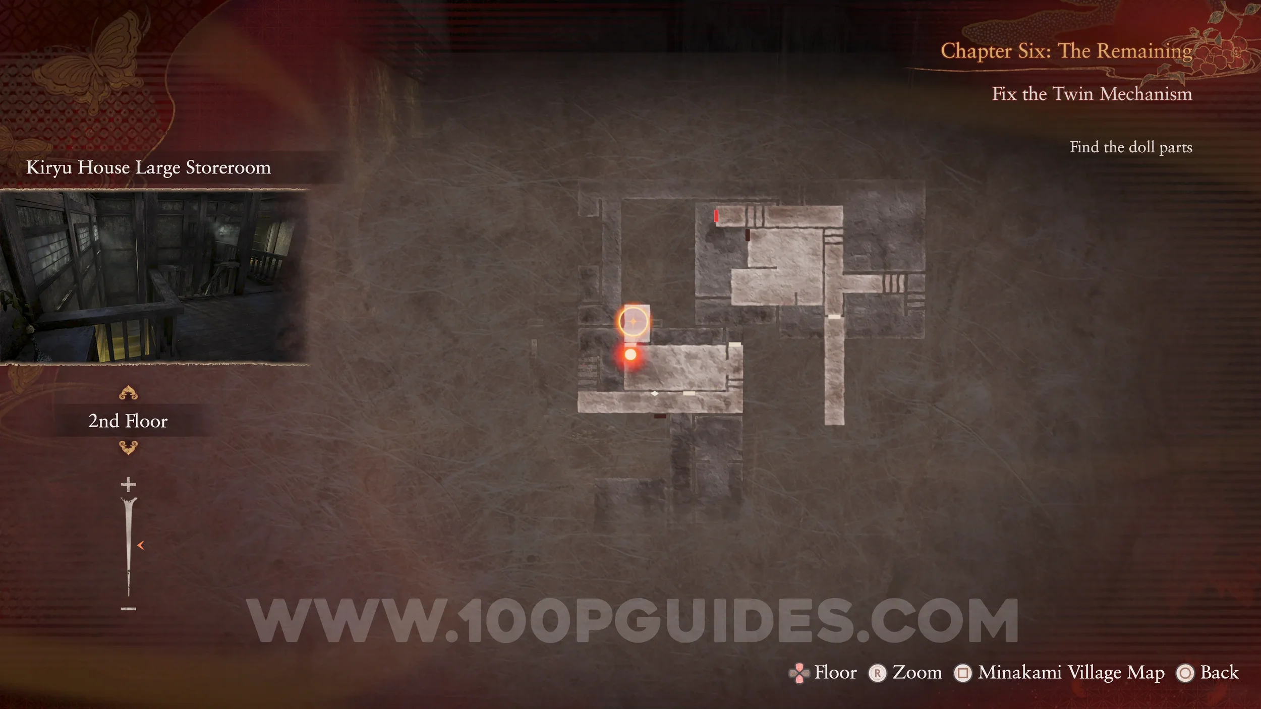Twin Dolls #6 (24). Now go under the temple and exit on the other side. Head up the stairs and enter the upper floor. Cross through the interior and go down the stairs. At the bottom, turn right to find the two dolls between the wooden screens.