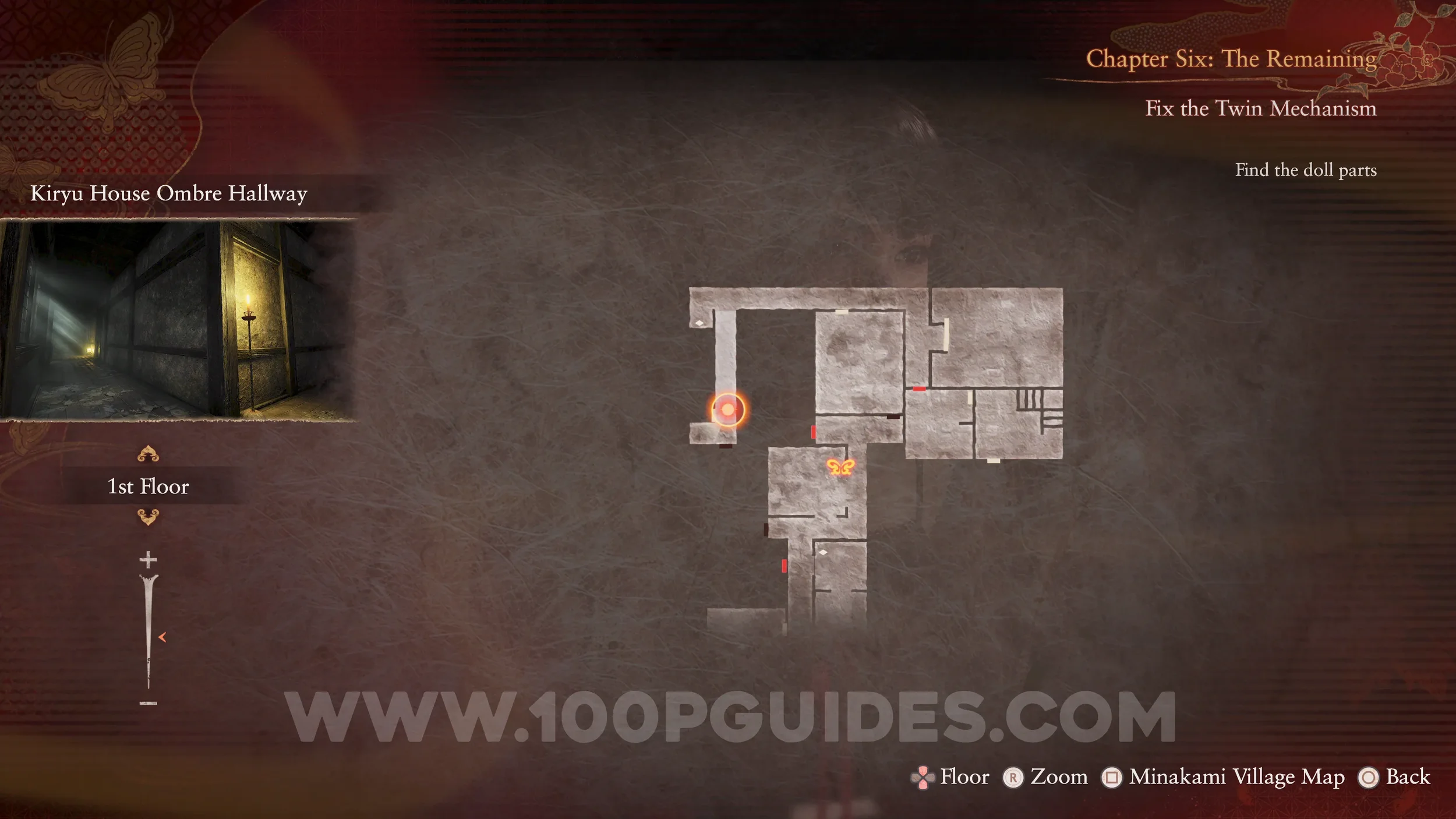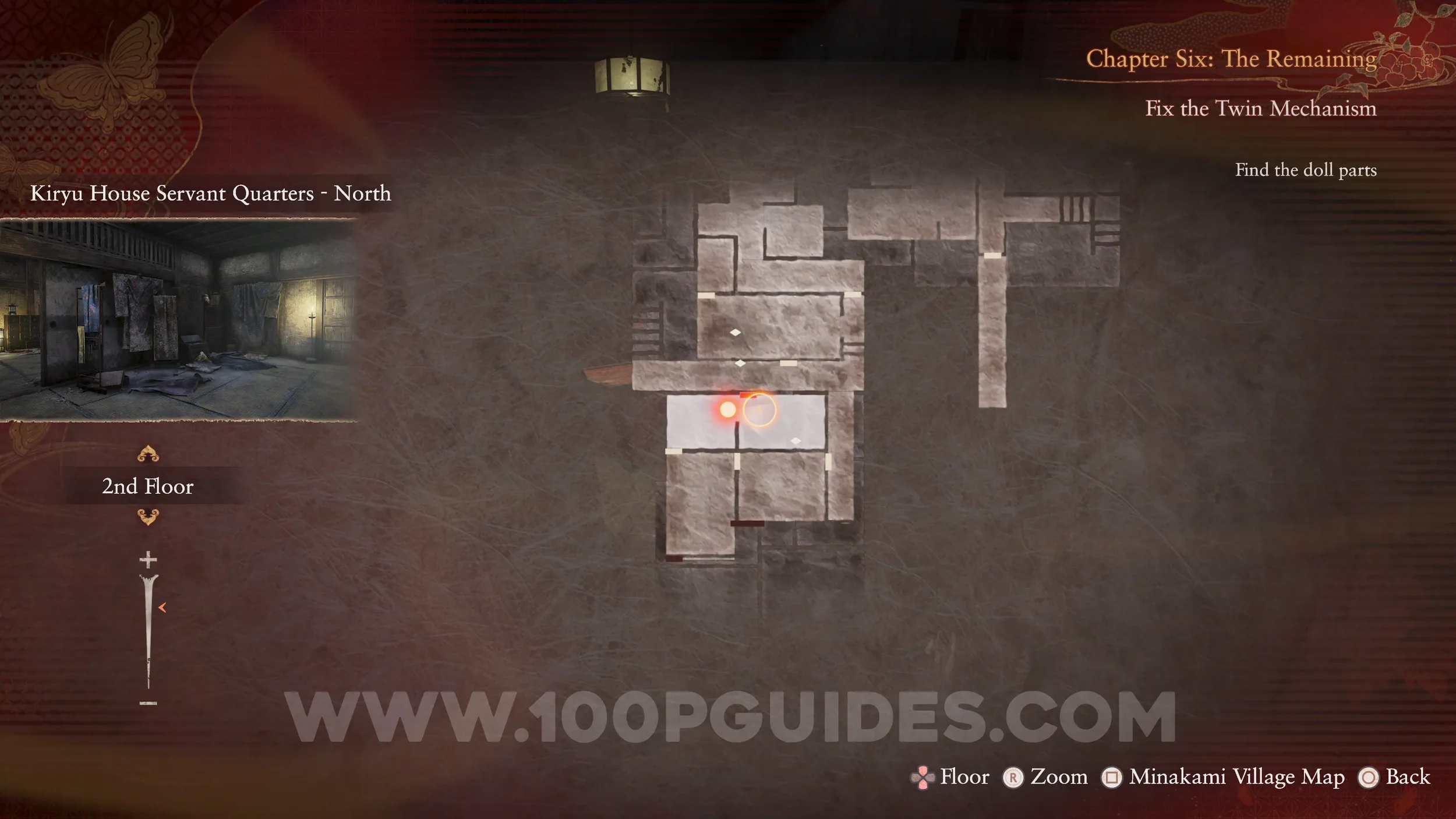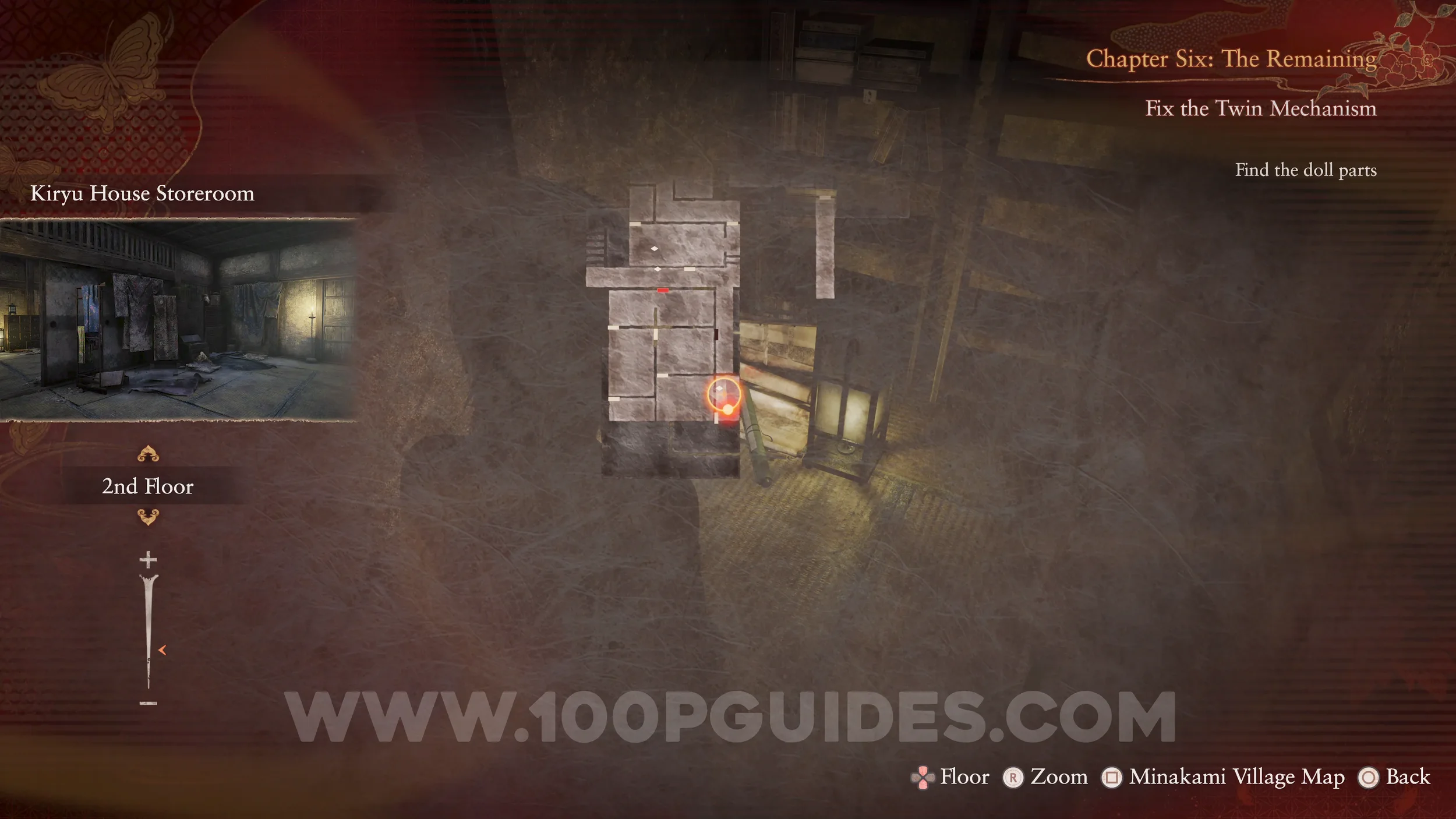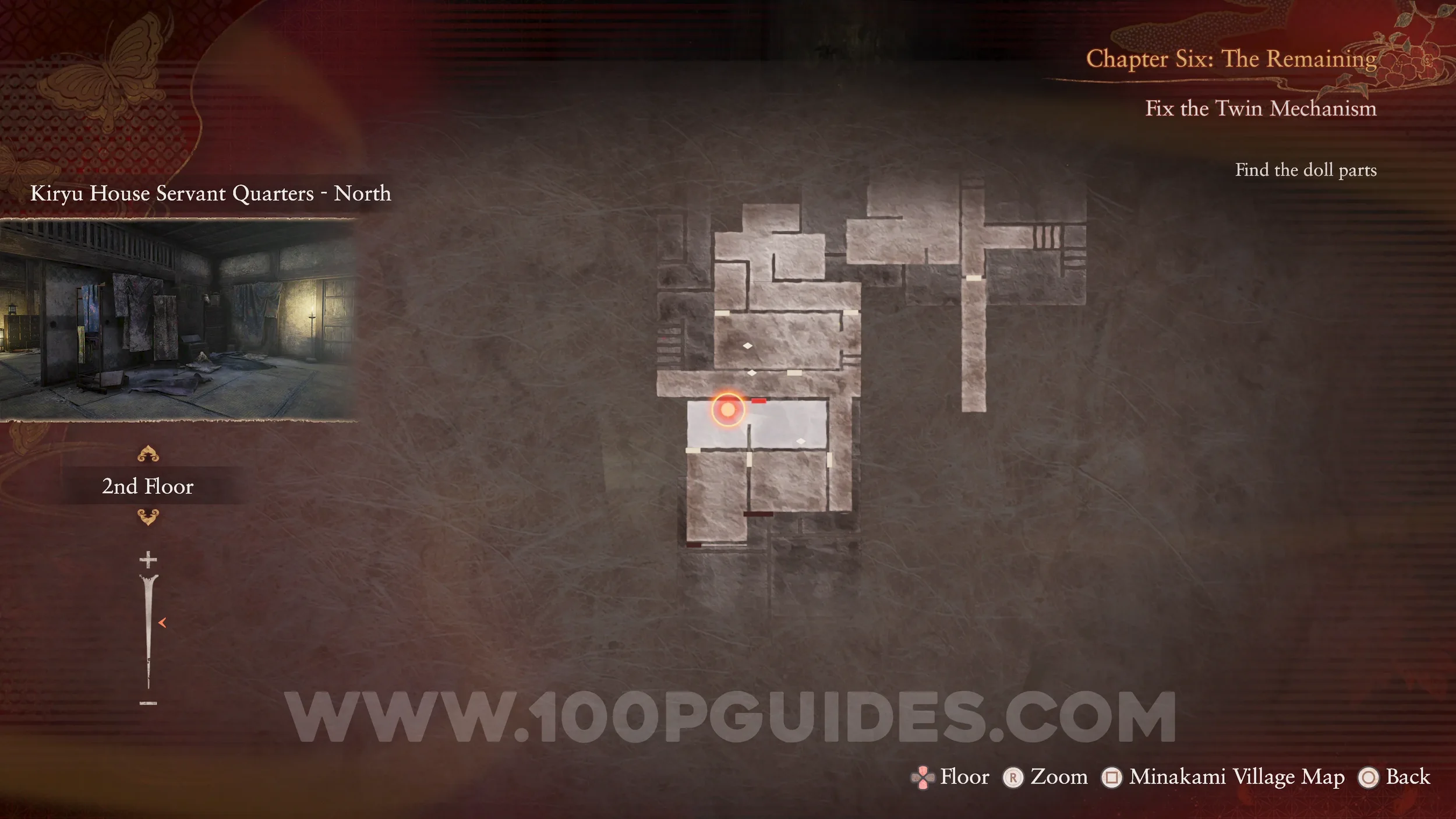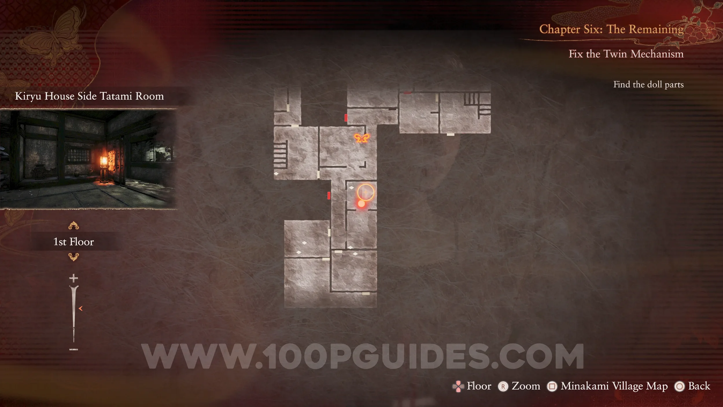 Twin Dolls #6 (24). Now go under the temple and exit on the other side. Head up the stairs and enter the upper floor. Cross through the interior and go down the stairs. At the bottom, turn right to find the two dolls between the wooden screens.