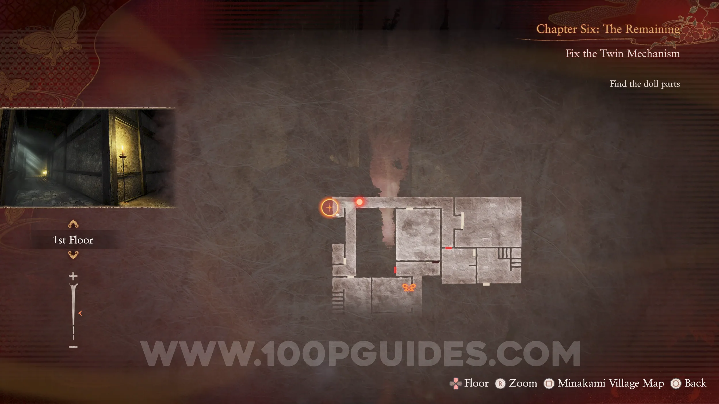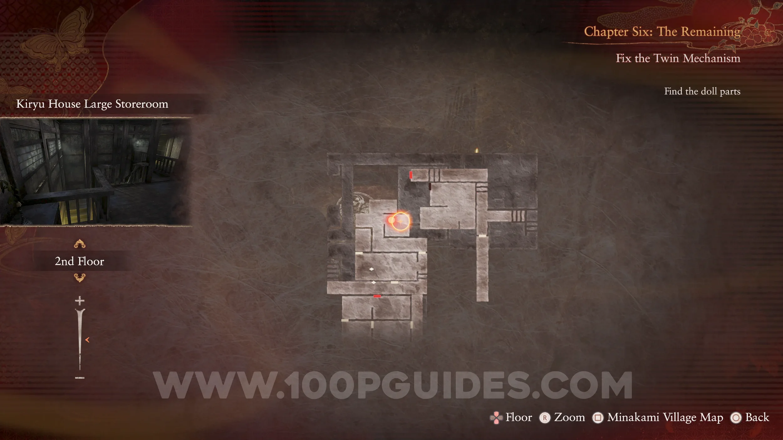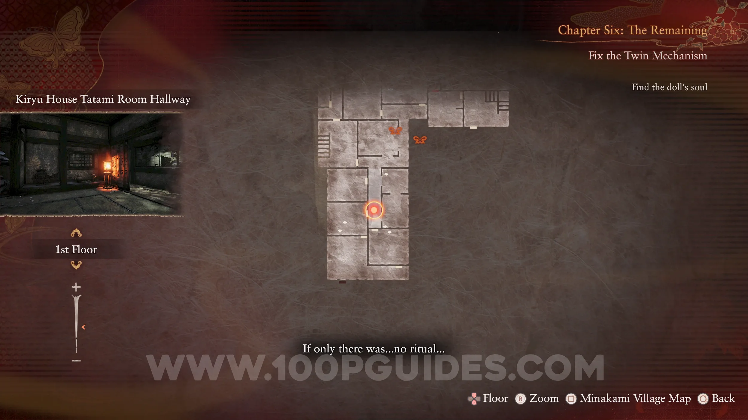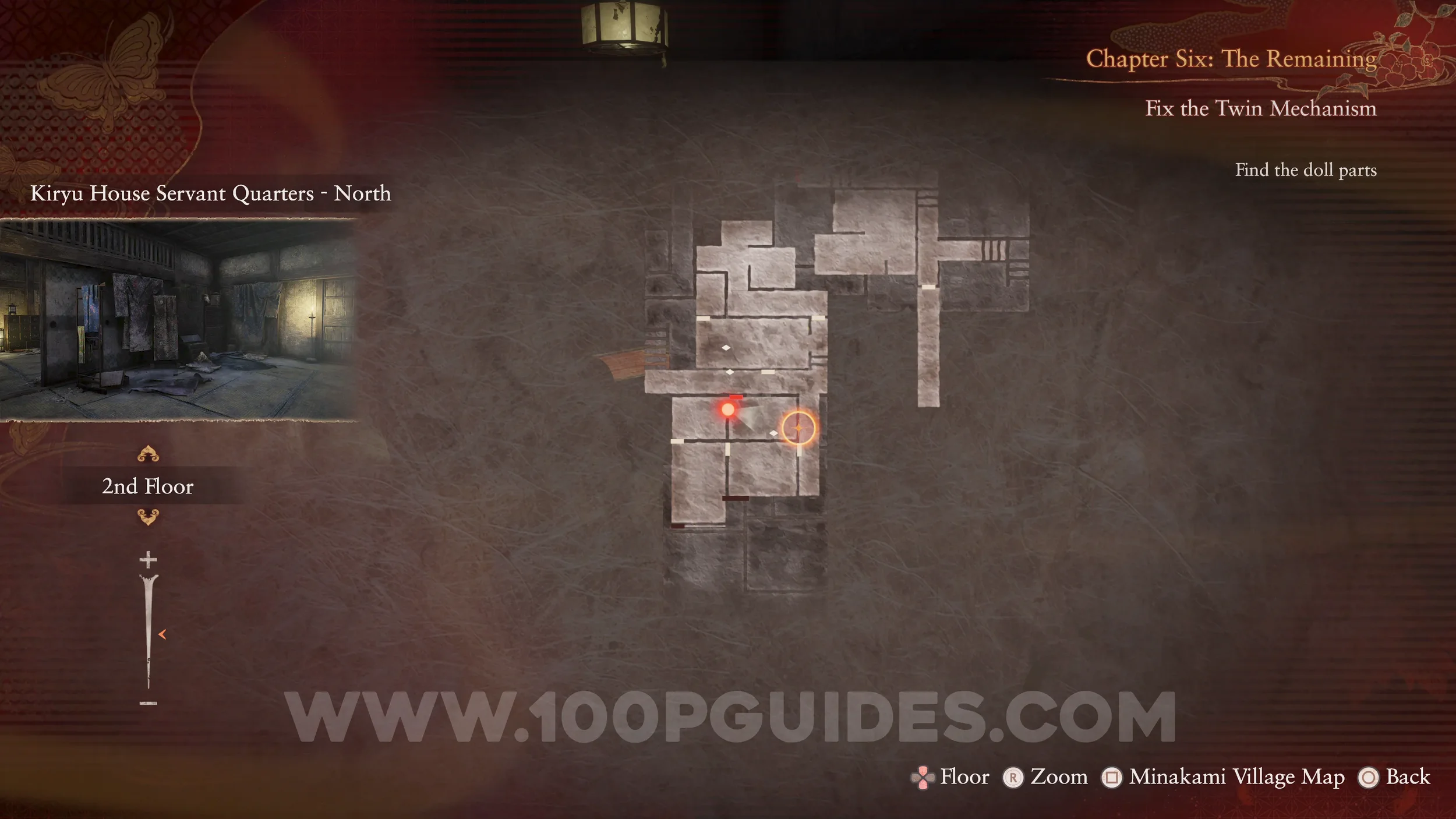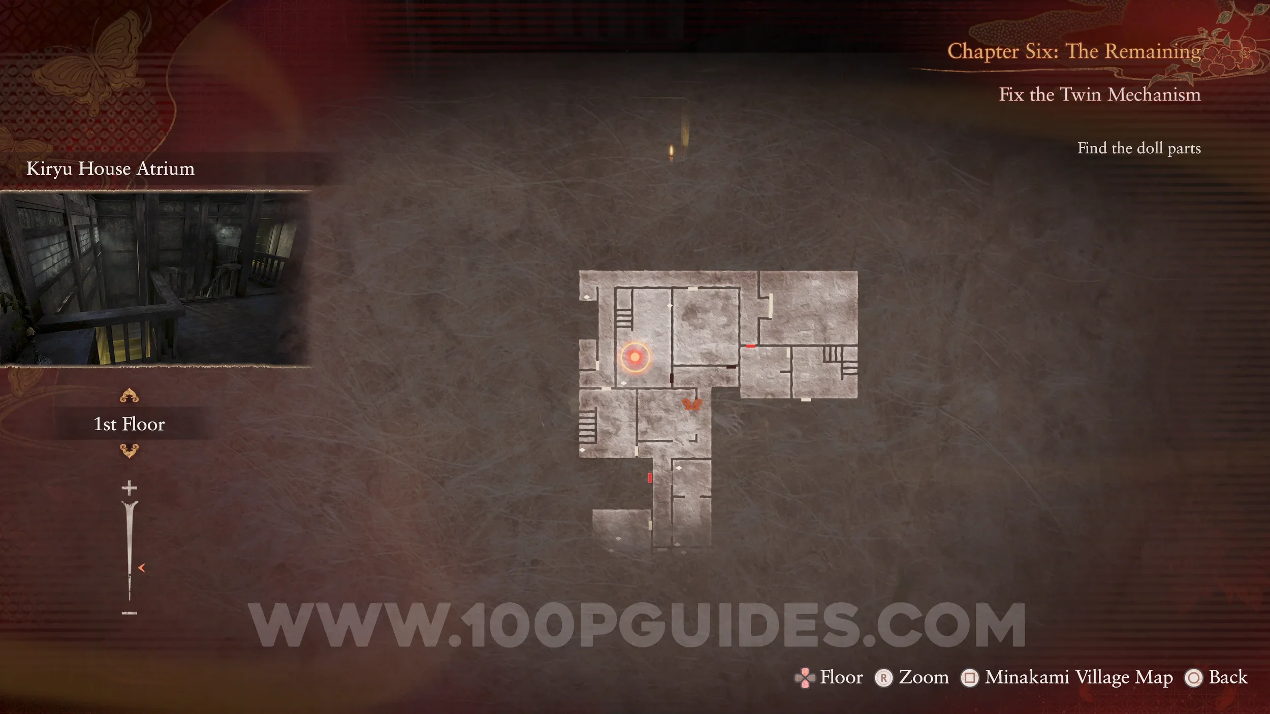 Twin Dolls #6 (24). Now go under the temple and exit on the other side. Head up the stairs and enter the upper floor. Cross through the interior and go down the stairs. At the bottom, turn right to find the two dolls between the wooden screens.