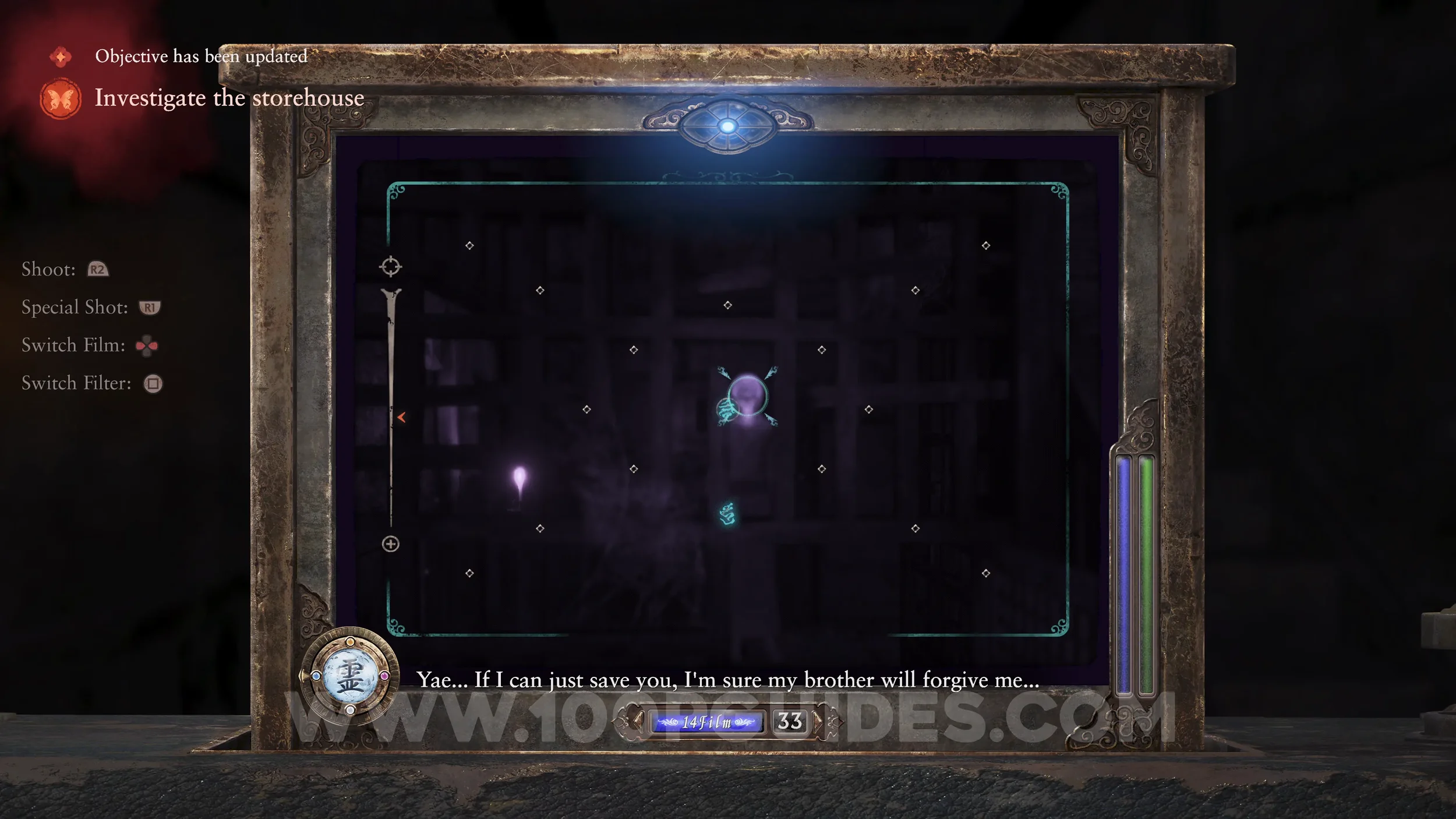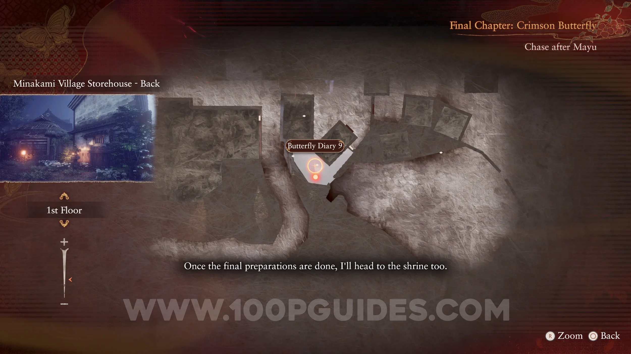 Specter #247 - 250 Yae Talking to Itsuki, Specter #248 - 251 Itsuki Talking to Yae, Specter #249 - 252 Pair Behind Storehouse and Document #116 - Butterfly Diary 9. Go behind the Storehouse to find the two specters talking. Make sure they are both in the shot. The document can be found on the ground.