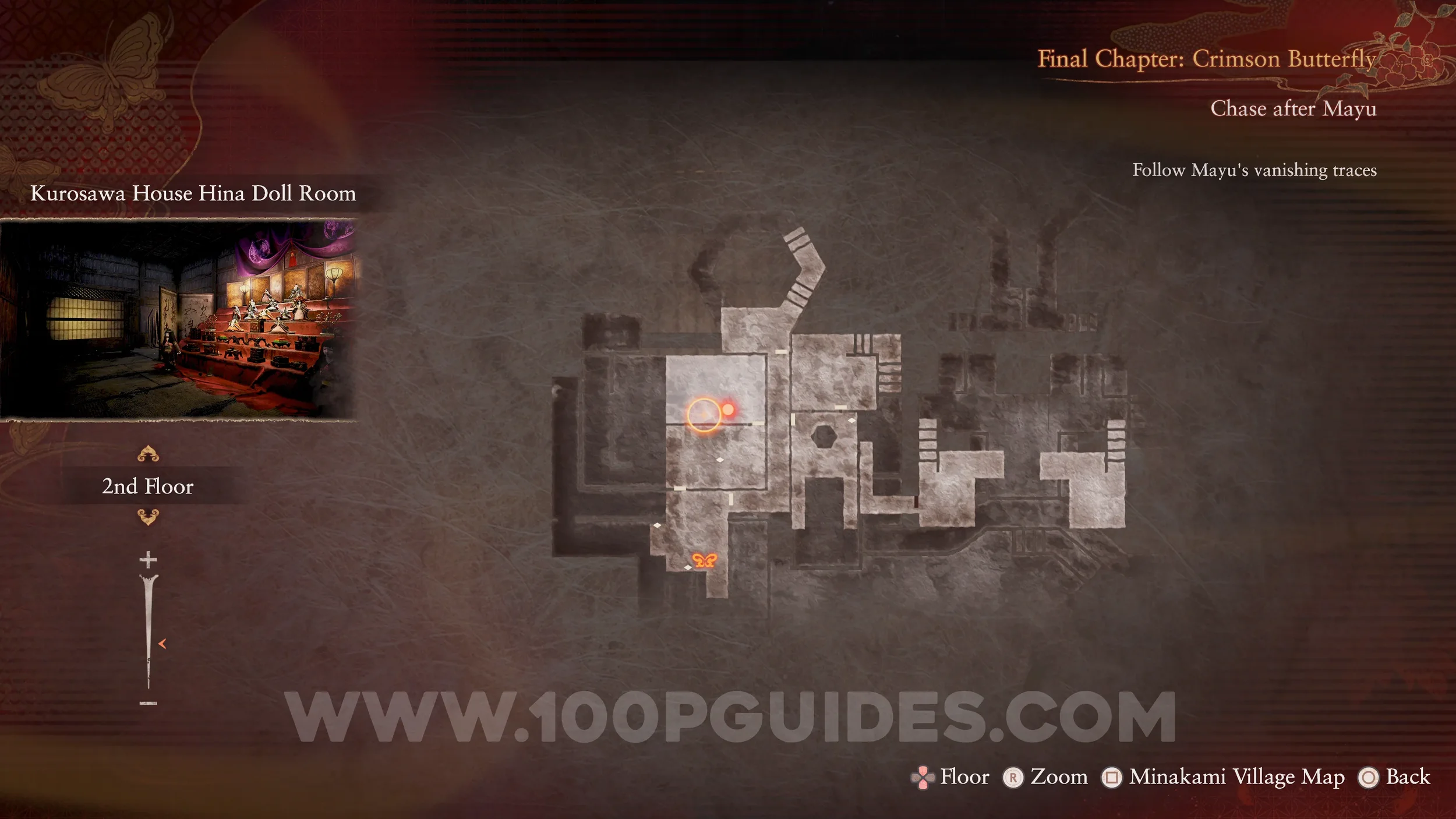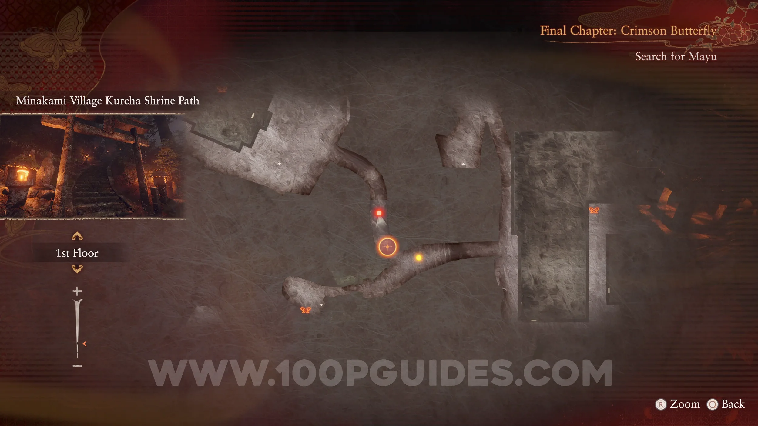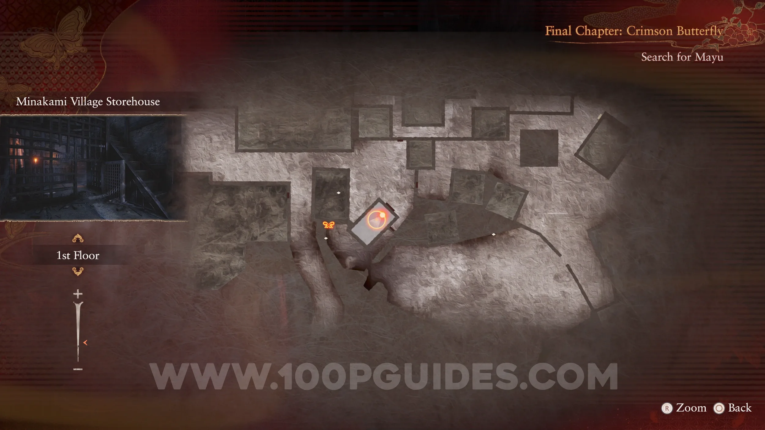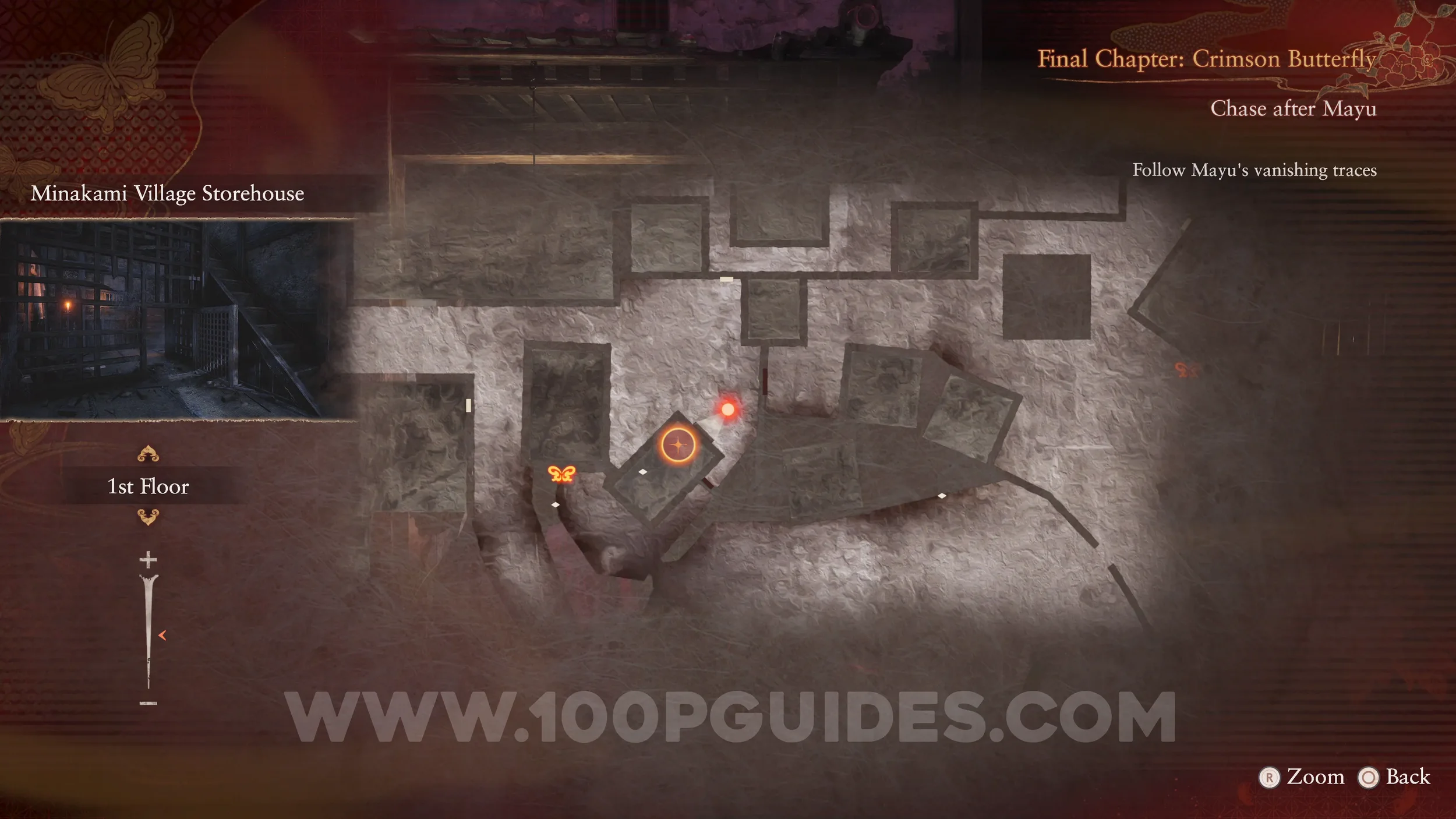 Specter #246 - 253 Dream-Fulfilling Crimson Butterfly. Now head toward the Minakami Village Storehouse. Just outside, you will see the specter (butterfly).