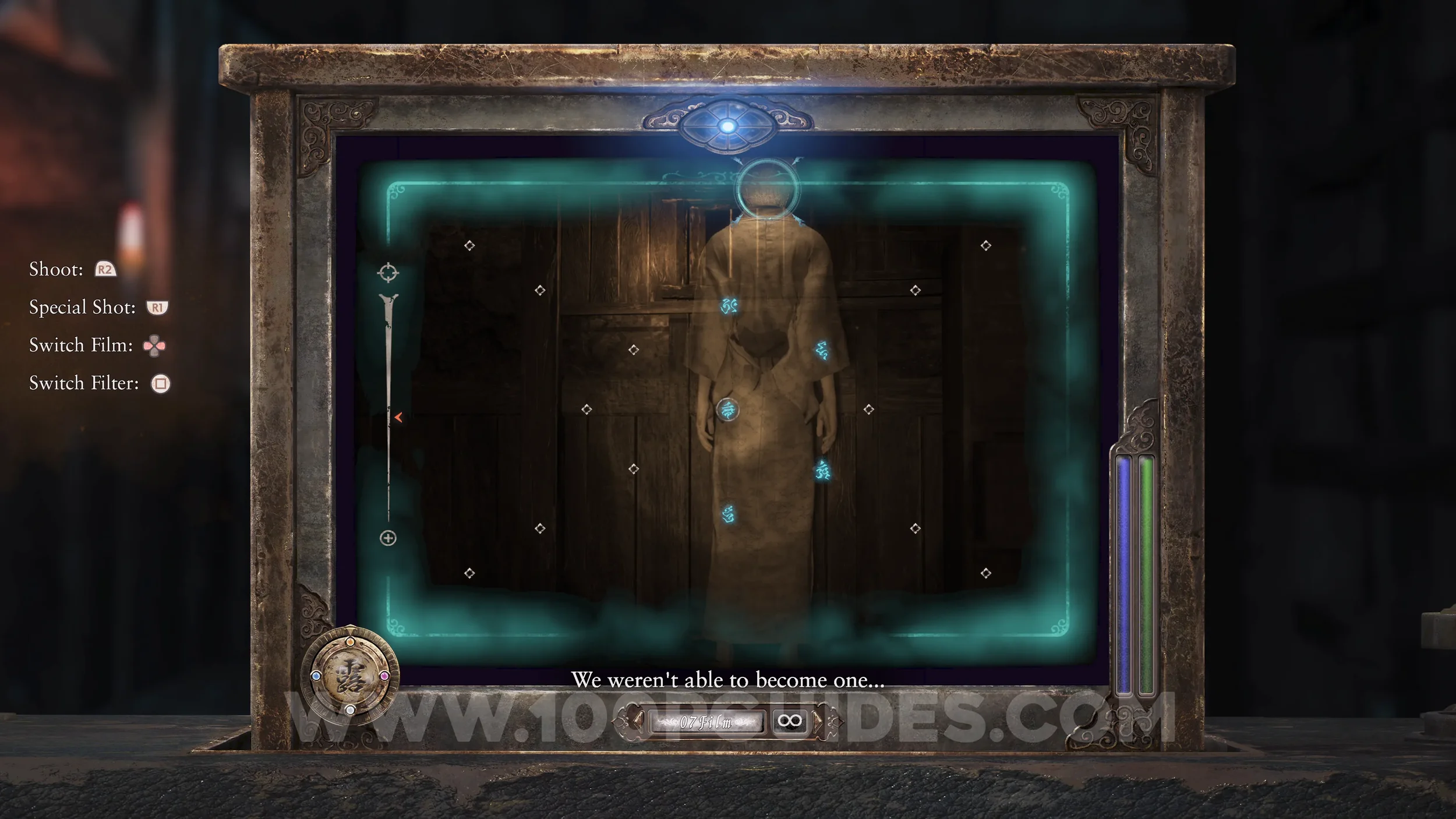 Specter #4-7 - 007 Seeker, 008 Man Chasing Fleeting Twins, 009 Man Fearing Calamity and 010 Villagers. Return to the save room in the Osaka House and look through the window. Make sure you get all 3 Specters in the shot to unlock the “Villagers” specter.