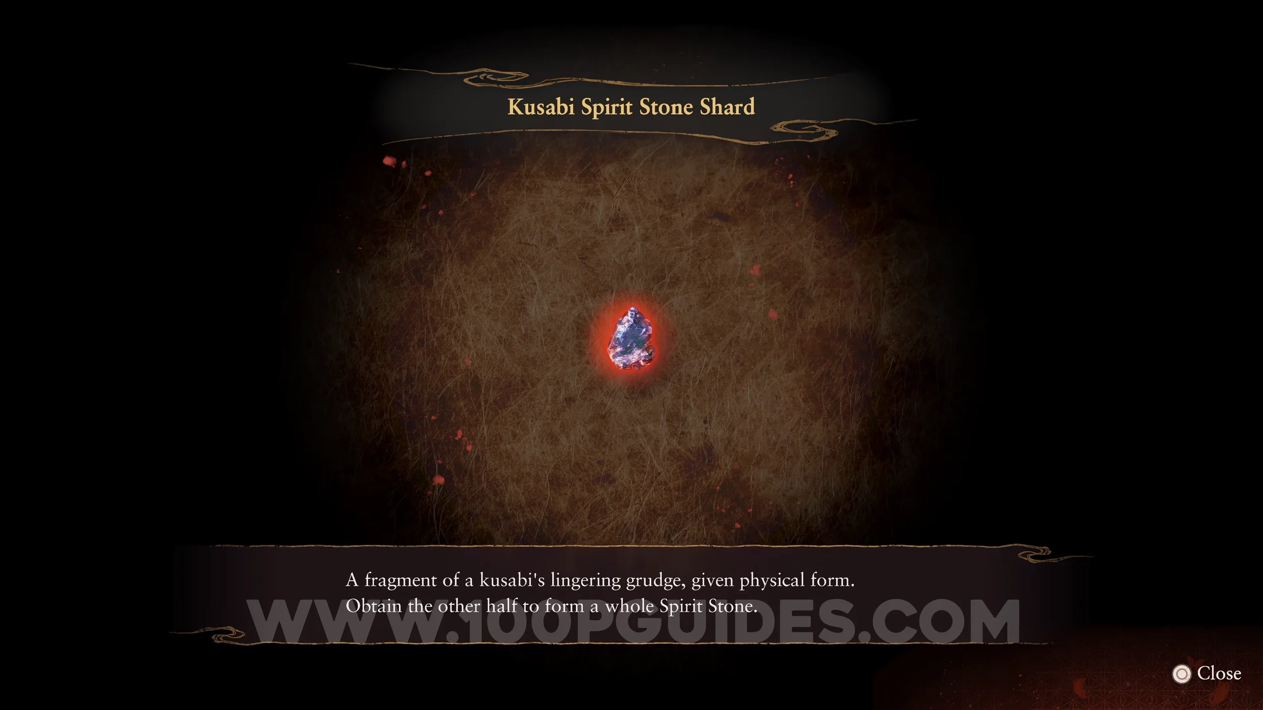Spirit Stone #42 - Yae’s Spirit Stone Shard (1/2) and Spirit Stone #43 - Kusabi Spirit Stone Shard (1/2). You will get these after finishing the game for the first time. They are required to unlock additional endings.