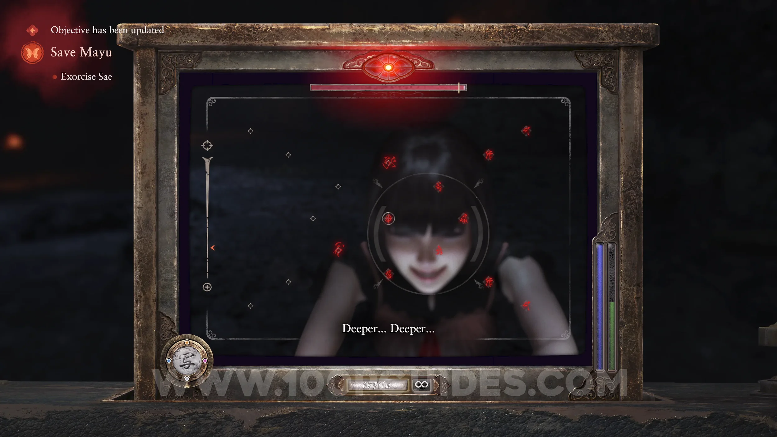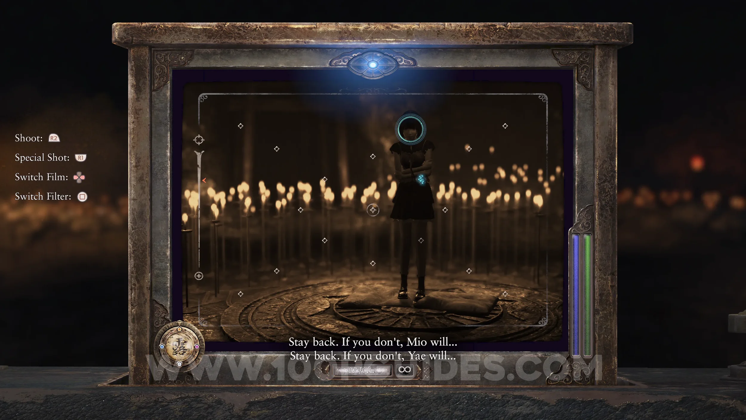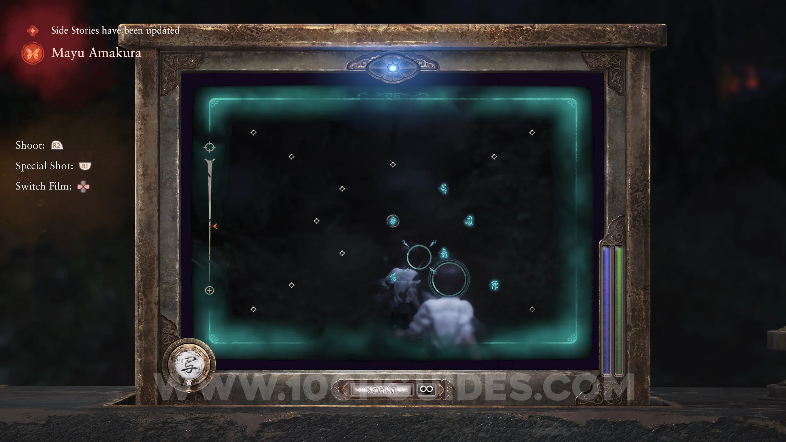 Specter #258 - 262 Young Mio Holding Hands, Specter #259 - 263 Young Mayu Holding Hands, Specter #260 - 264 Young Pair Retreating and Spirit Stone #46 - Mio’s Spirit Stone Shard (2/2) (Mio’s Sparkling Spirit Stone). After finishing all other 15 side quests, head to Misono Hill. Here you will see the two specters under the southern Torii gate. Make sure they are both in the shot. They will drop the second half of Mio’s Spirit Stone. This will put an end to the Mio Amakura side quest and reward you with Mio’s Sparkling Spirit Stone needed for the sixth and final ending. However, since this must be done on Nightmare difficulty, you will have to first convert this save to a “clear save” by getting to the end of the game again (any ending is ok).