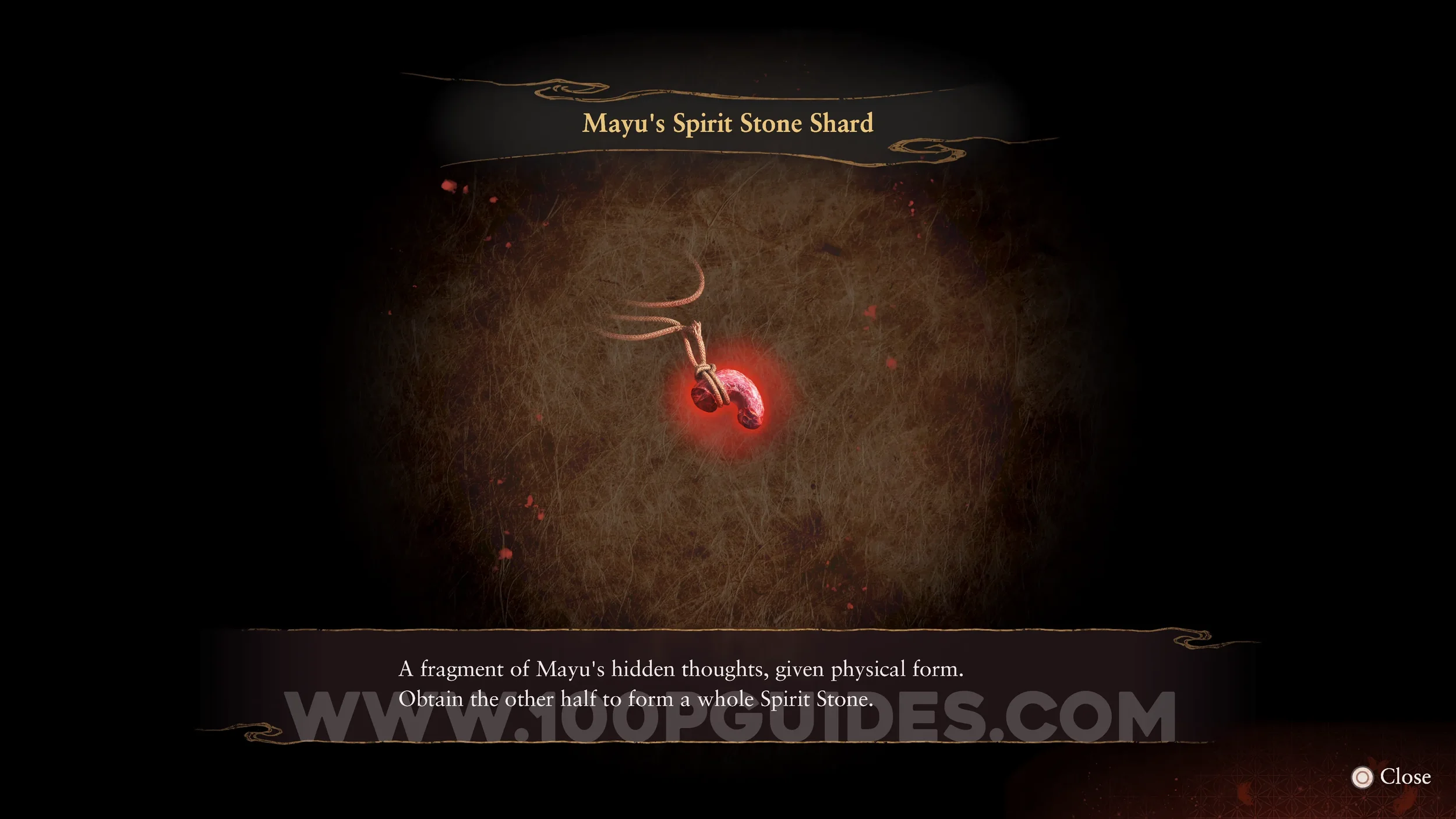 Spirit Stone #44 - Mayu’s Spirit Stone Shard (1/2). Obtained for getting ”The Abyss” ending.