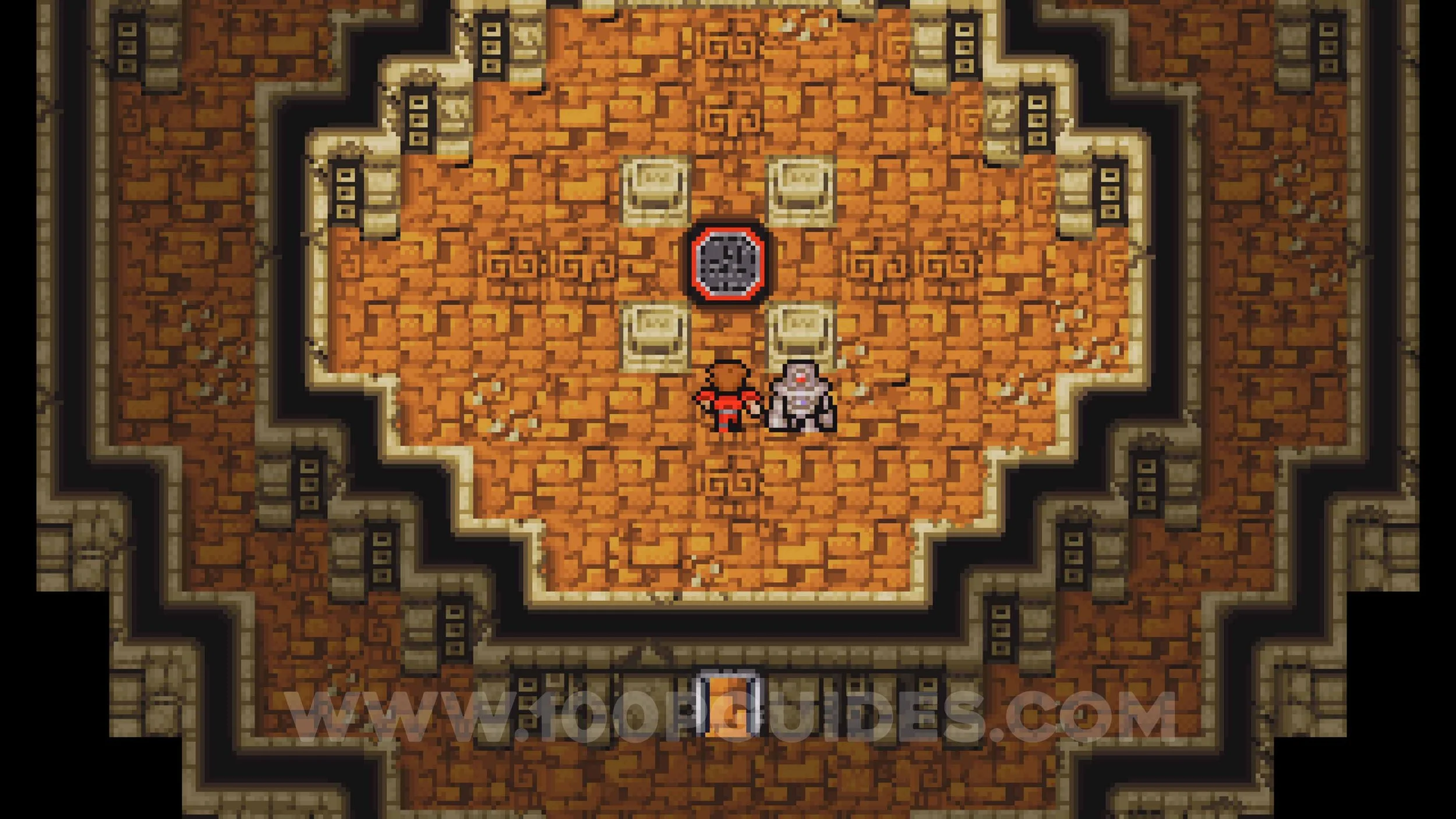 Inside the cave, make your way to the room in the lower left corner, where you will have to battle a few enemies. Then open the 6 CHESTS (154-159/249) and talk to the NPC to get to the Warp Stone.