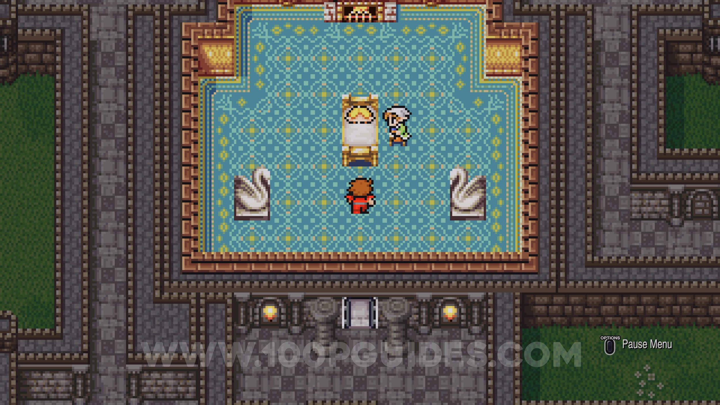After deciding on the 4 characters that will make up your team, you will start just outside Castle Cornelia. For now, let’s head inside, go north and up the stairs. Here, talk to the guard. He will take you to the king to get your first task. He wants you to go to the Chaos Shrine and save Princess Sarah.