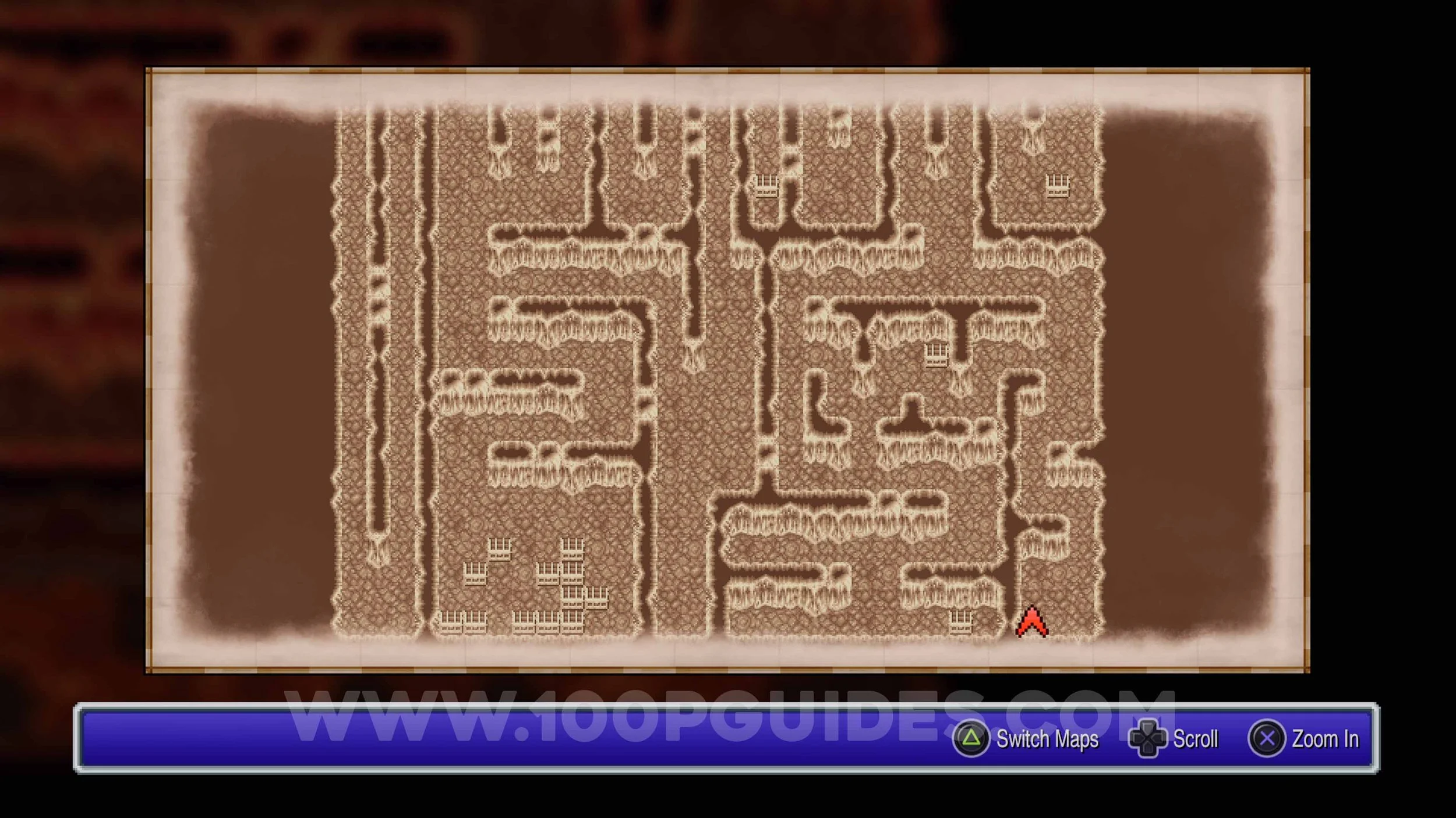 After collecting the chests from this floor, use the stairs in the bottom right corner to get to the next floor. This floor contains 13 CHESTS (167-179/249). One of them contains the Rosetta Stone key item. To get the 3 chests in the top right room, go to the top left corner of the floor and exit through the left.