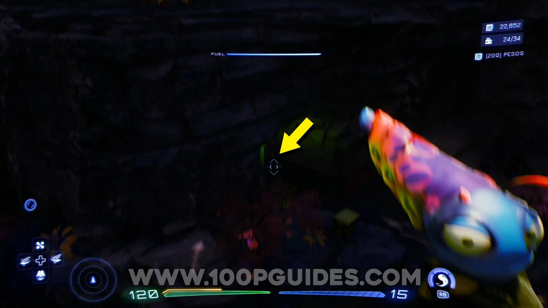 Luglox #8. Look for a hole above you in the cave. Fly out to find the Luglox on your left in the next area.